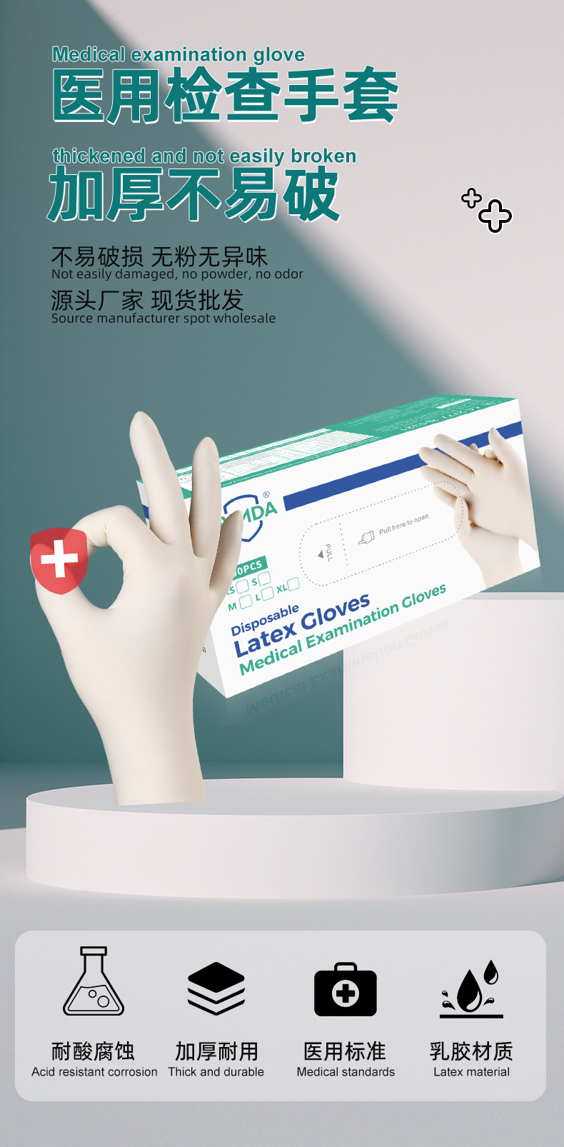 의료용 라텍스 검사 장갑 두꺼운 미끄럼 방지 내구성 침투 장갑 의료 건강 보호 안전 장갑스토어 가기