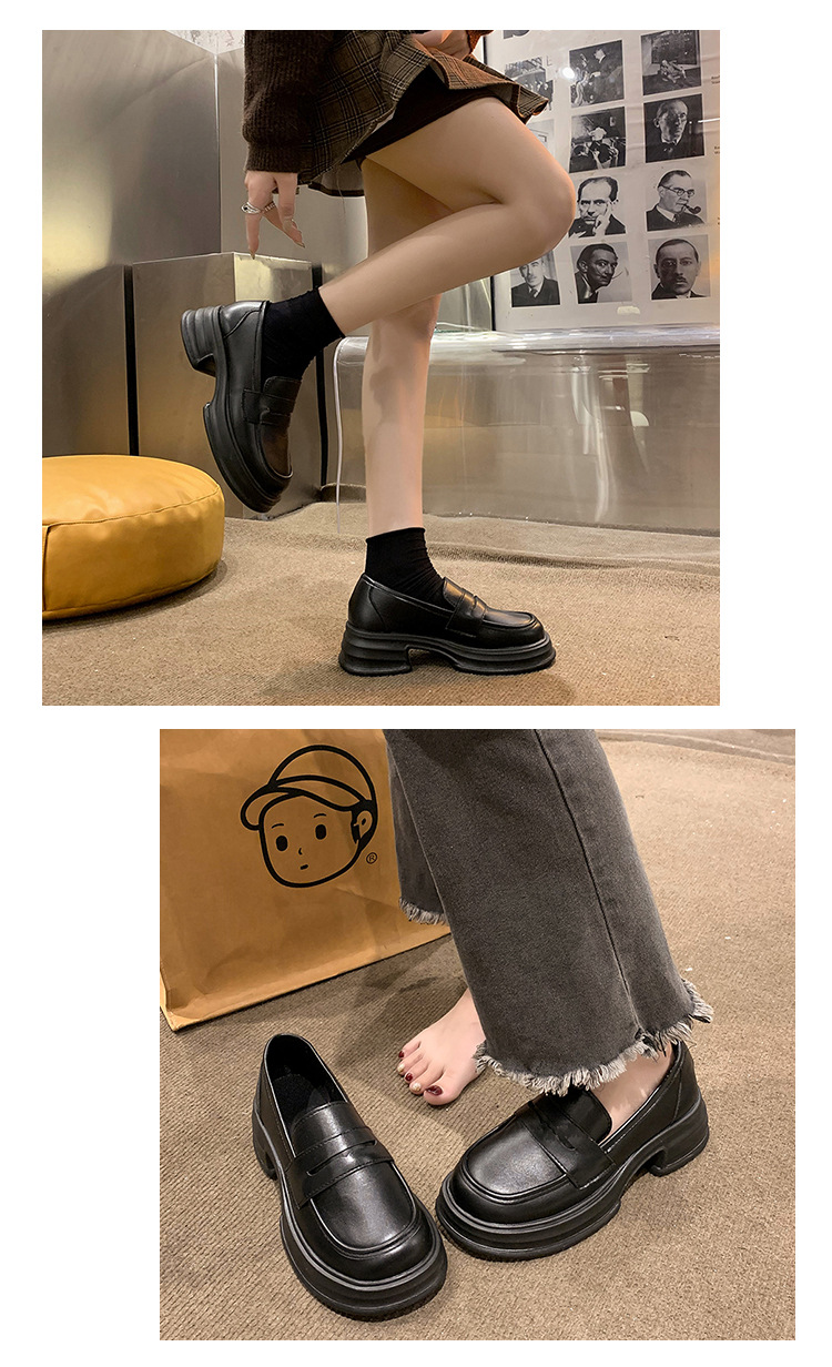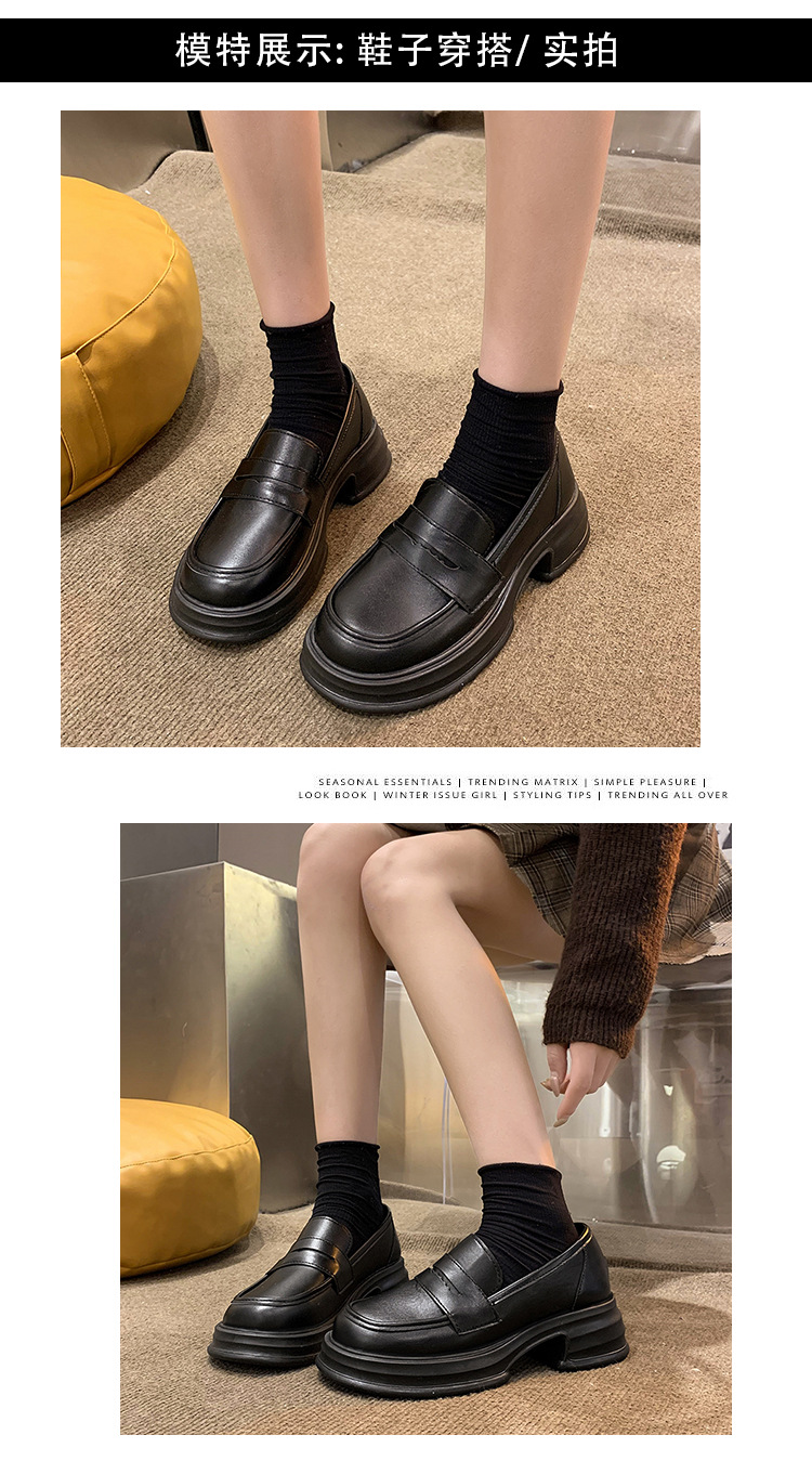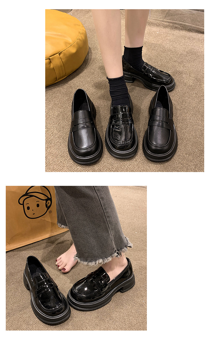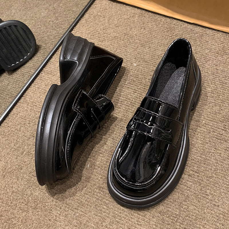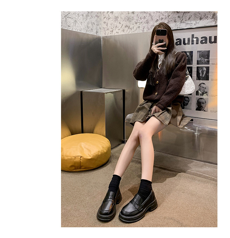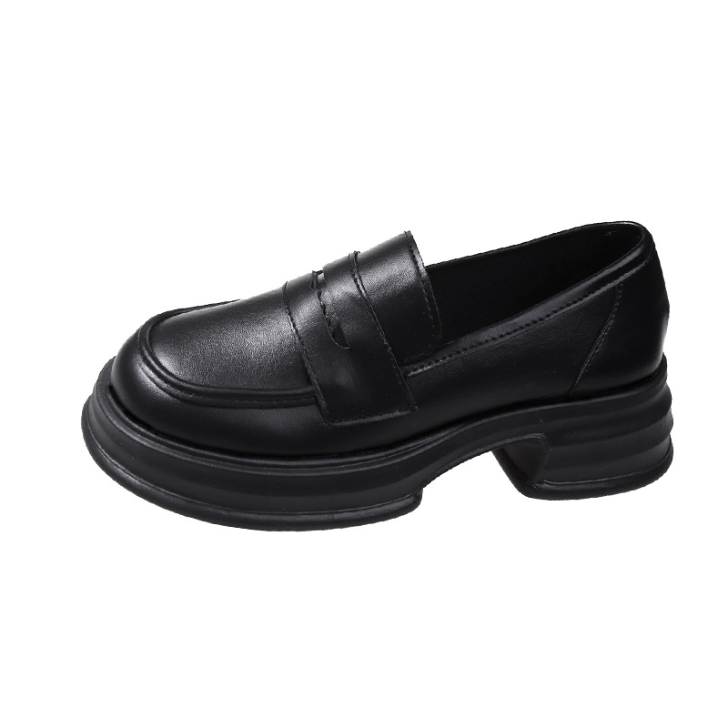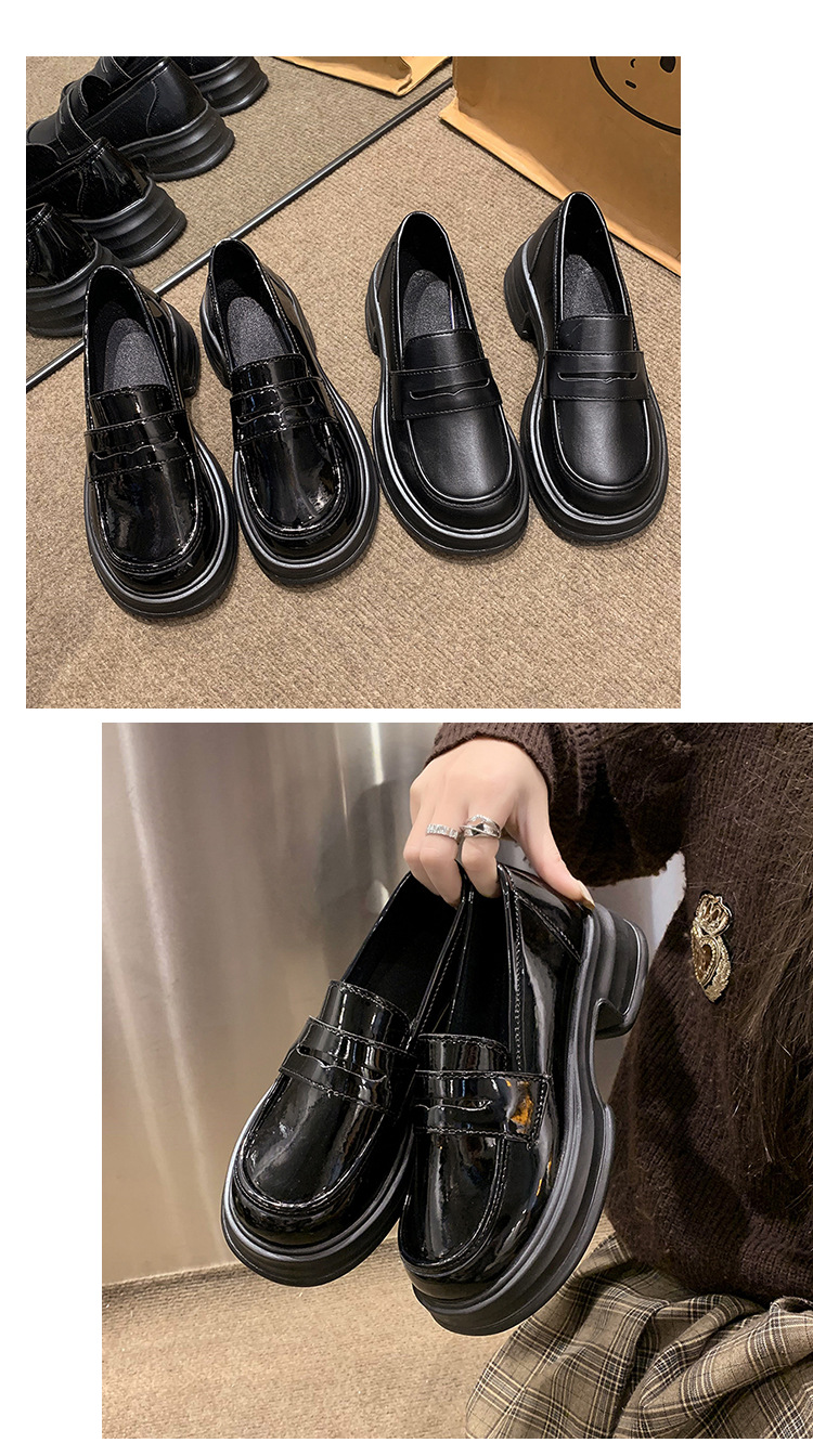 라운드 토 플랫폼 신발 여성 블랙 대학 스타일의 작은 가죽 신발 올 매치 영국 로퍼 2024 공식 신발 jk 신발스토어 가기