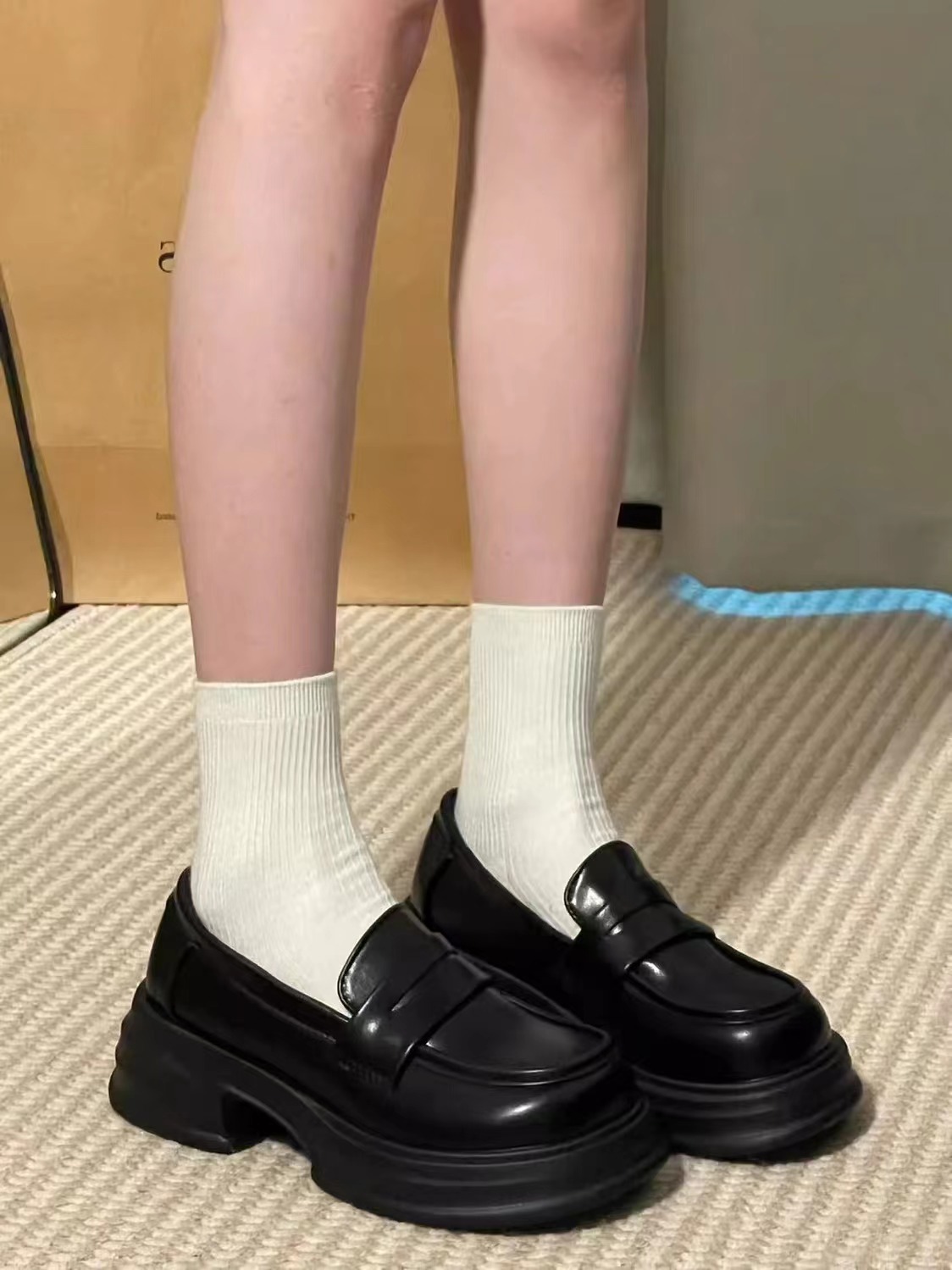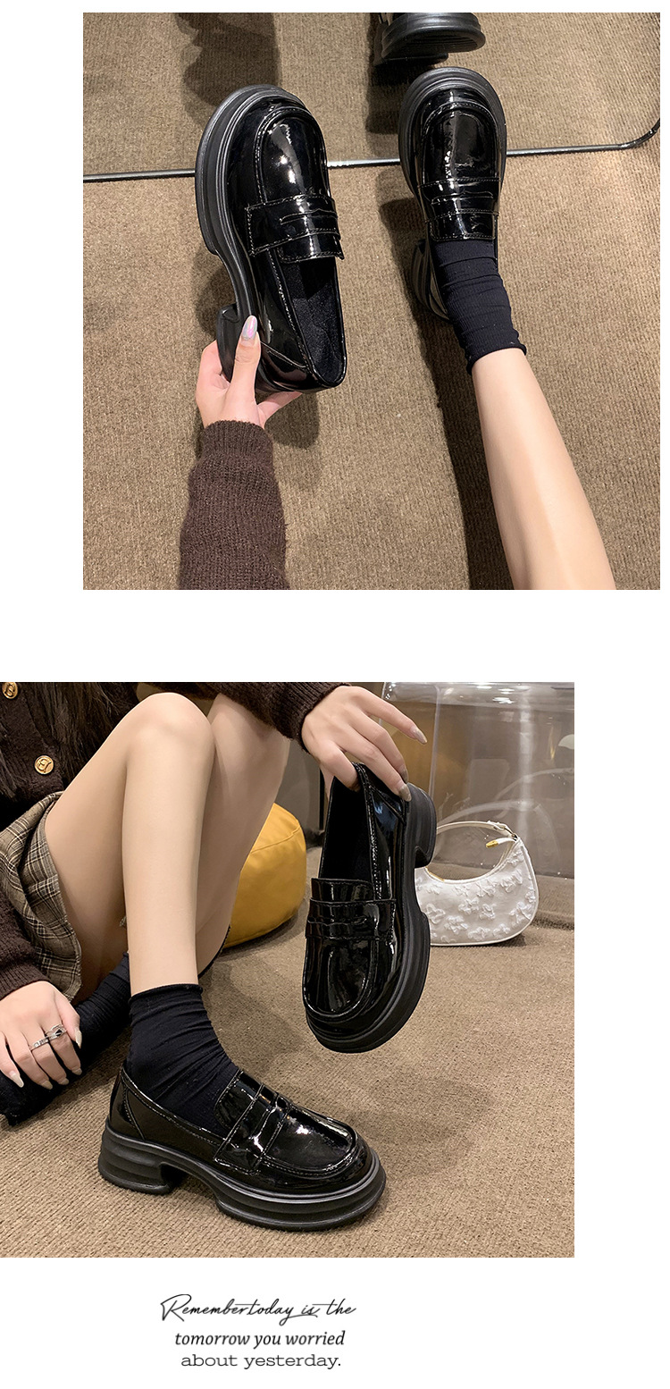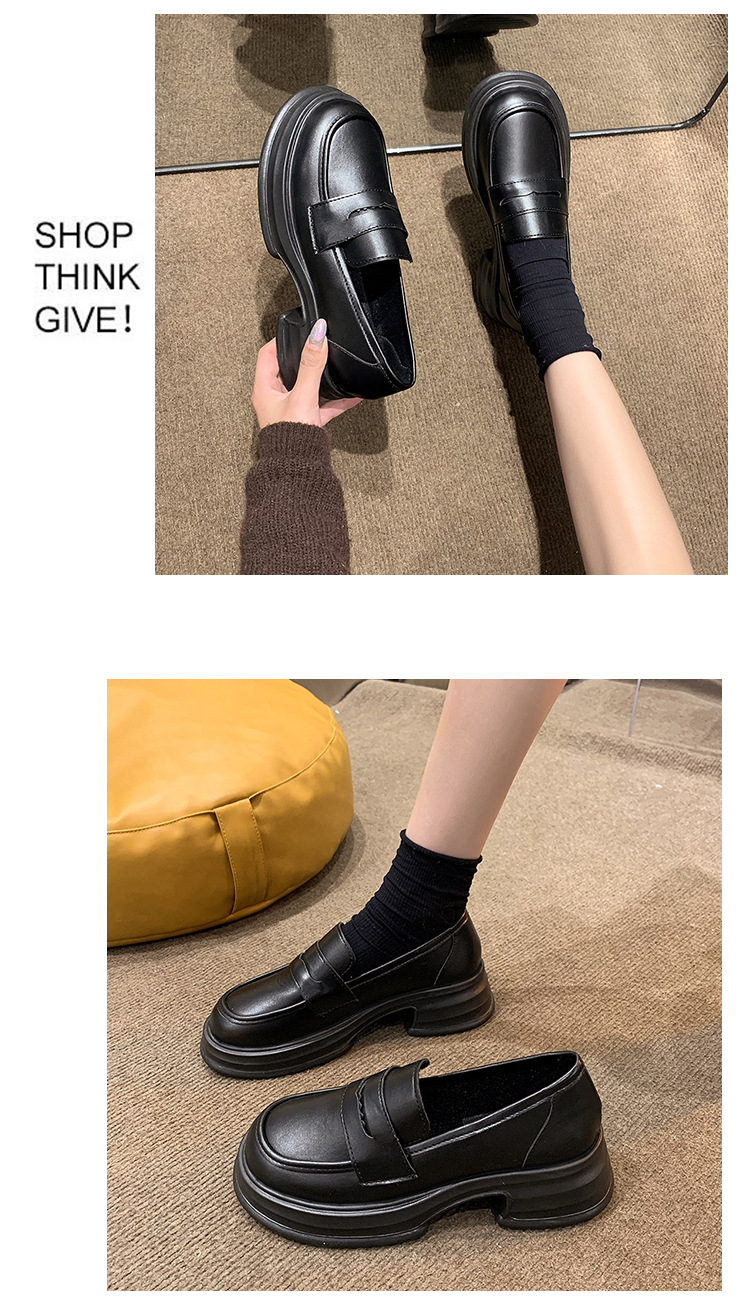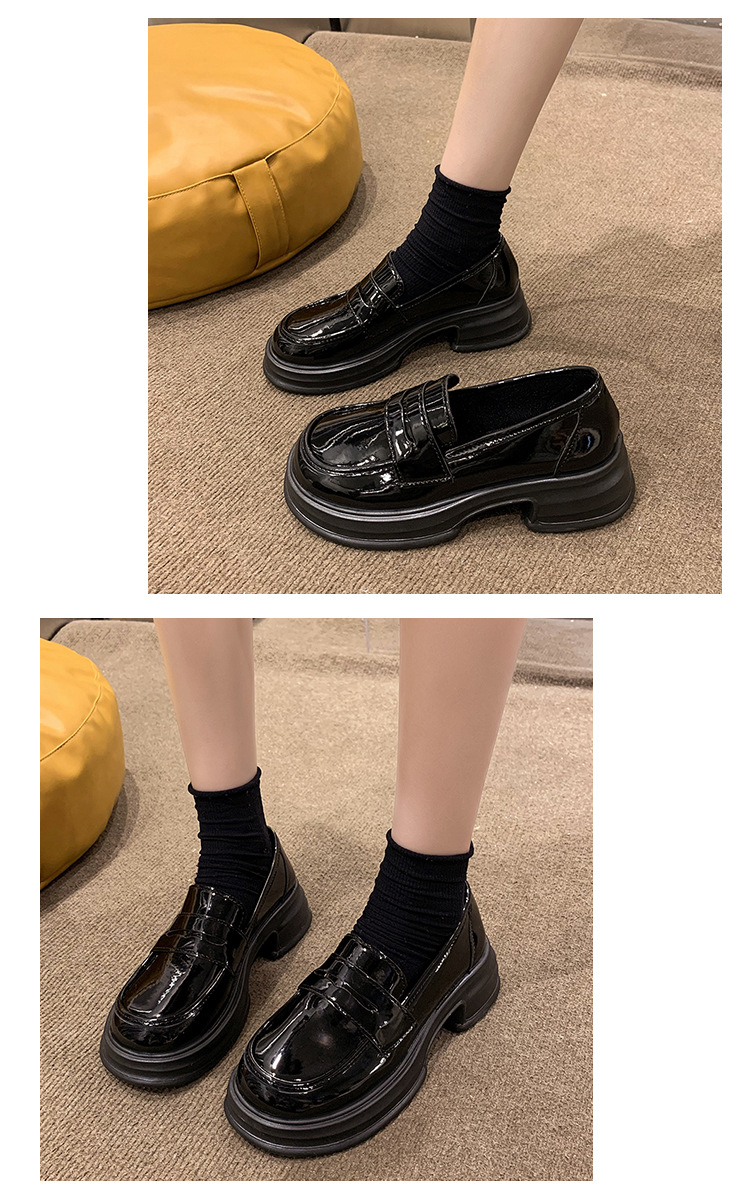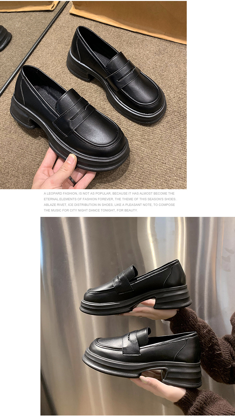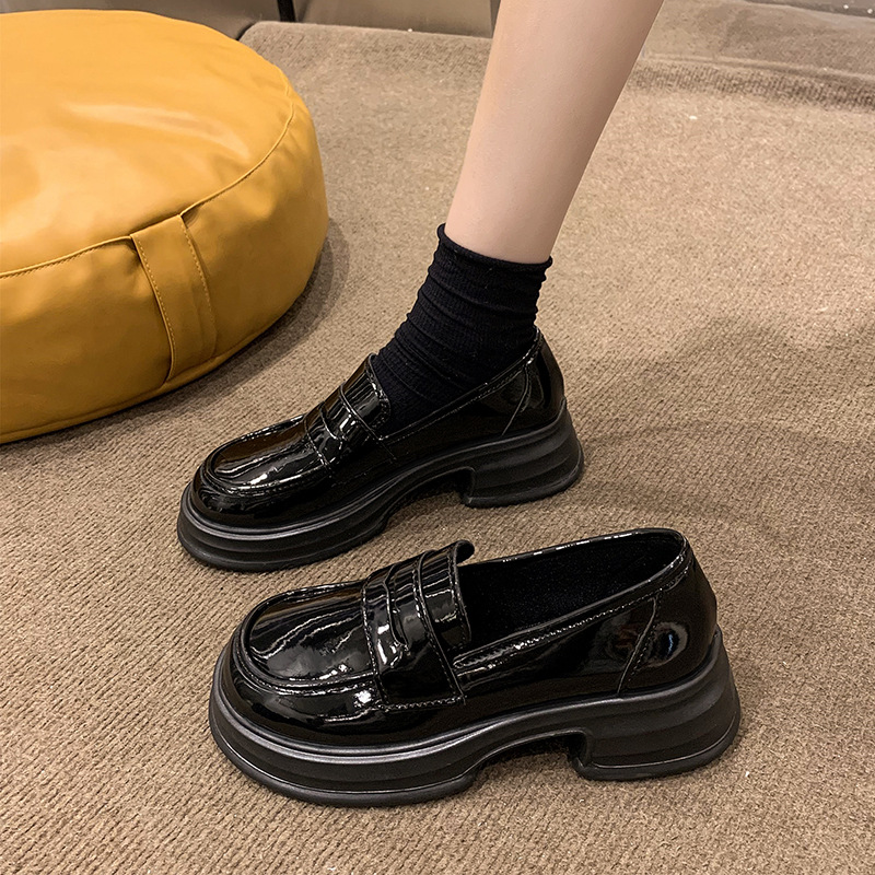 라운드 토 플랫폼 신발 여성 블랙 대학 스타일의 작은 가죽 신발 올 매치 영국 로퍼 2024 공식 신발 jk 신발스토어 가기
