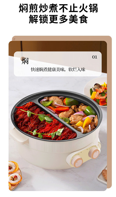 국경 간 대외 무역 Yuanyang 전기 뜨거운 냄비 가정용 전기 요리 냄비 다기능 통합 대용량 기숙사 학생 전기 워크 소형스토어 가기