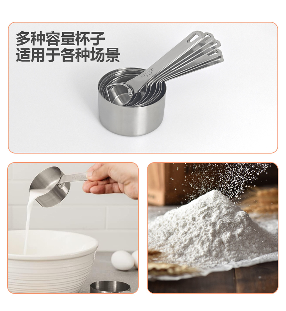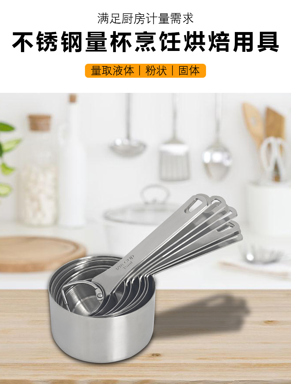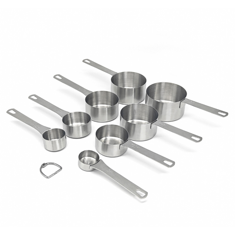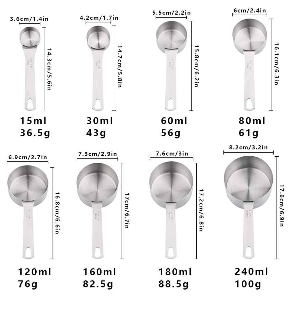 베이킹 도구 스테인레스 스틸 측정 컵 8 피스 세트 스케일 쉽게 조미료 커피 우유 측정 컵 측정 스푼 세트