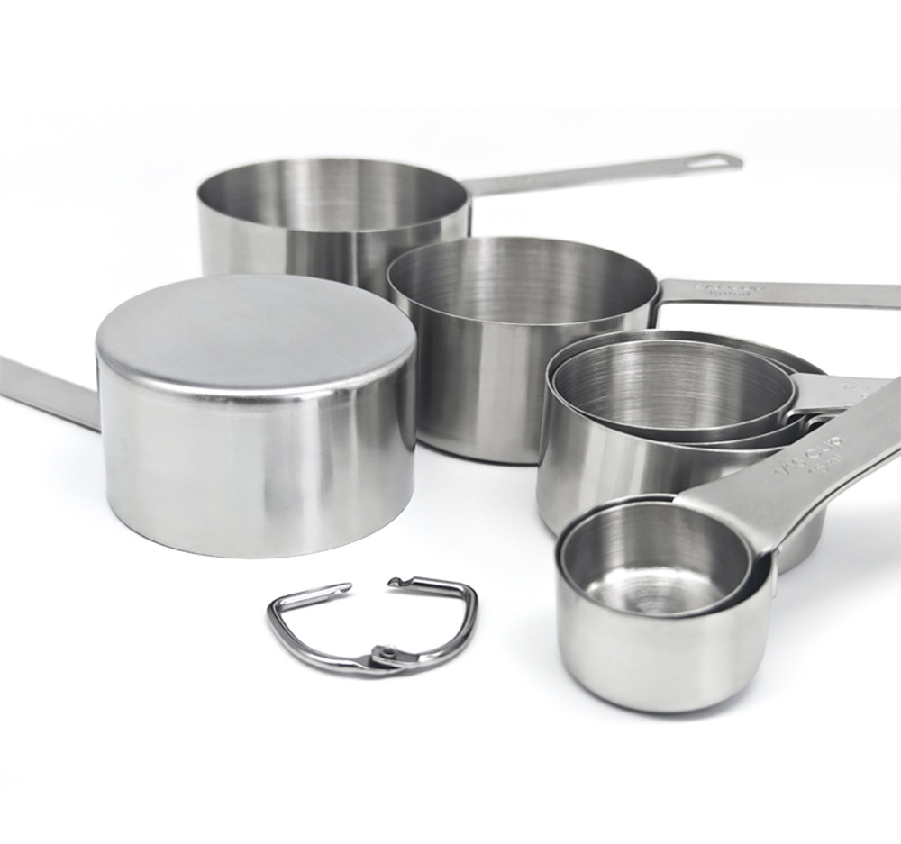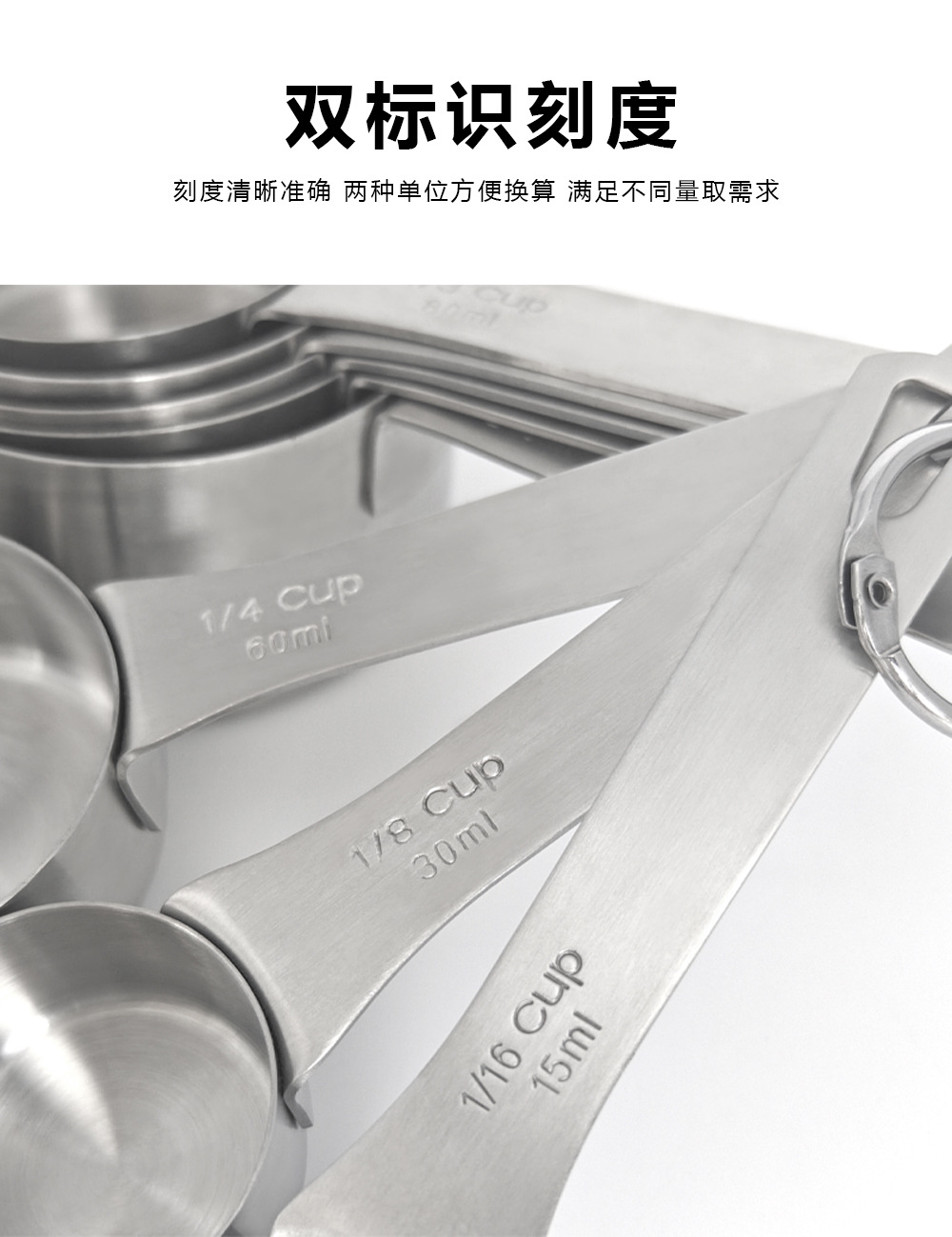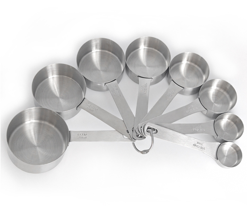베이킹 도구 스테인레스 스틸 측정 컵 8 피스 세트 스케일 쉽게 조미료 커피 우유 측정 컵 측정 스푼 세트