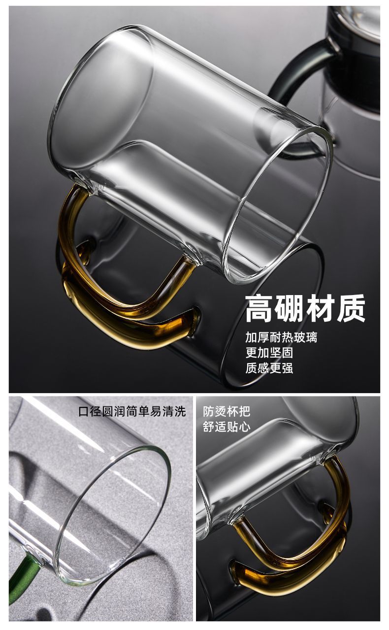 고온 및 냉방성 붕규산 유리 가정용 우유 물 컵 거실 식용 물 주스 차 컵 방열 컵
