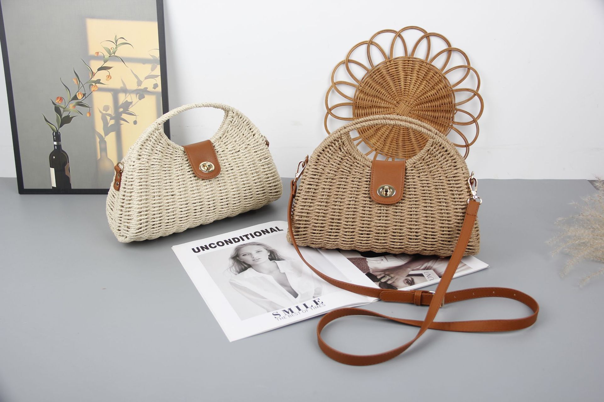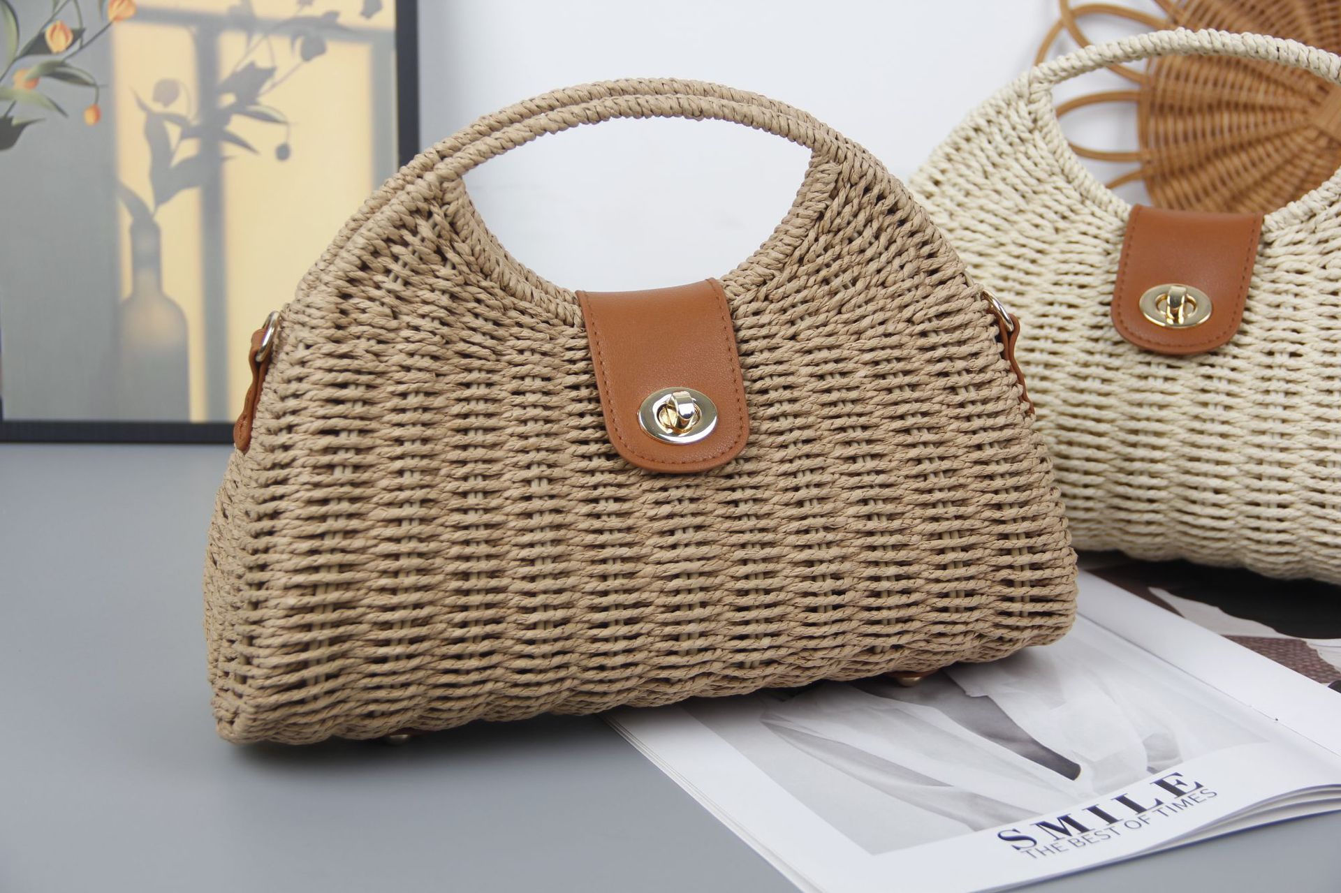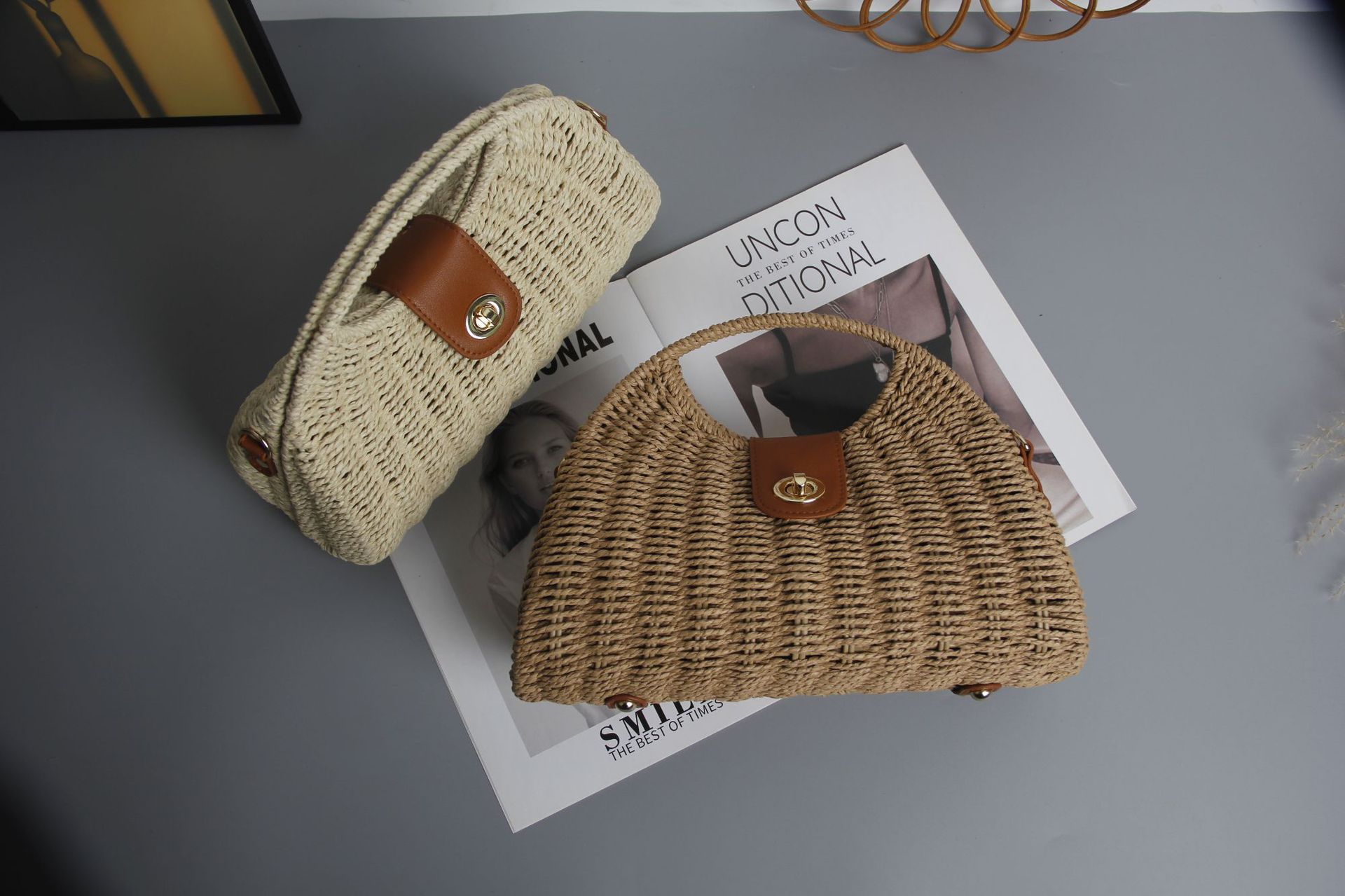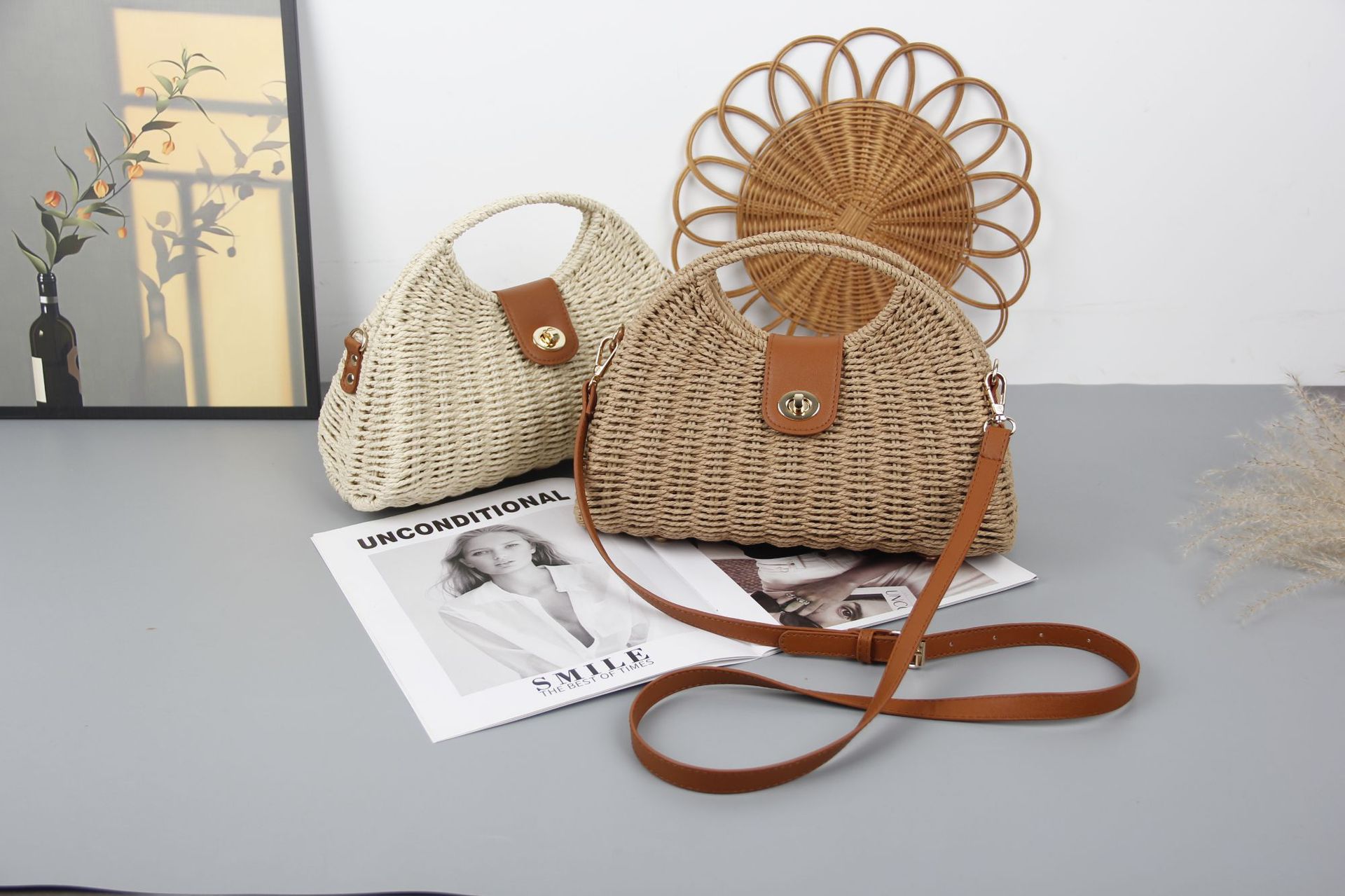 여성용 크로스 바디 백 새로운 패션 어깨 밀짚 짠 가방 틈새 핸드백 홀리데이 비치 백 한국식 밀짚 짠 가방스토어 가기