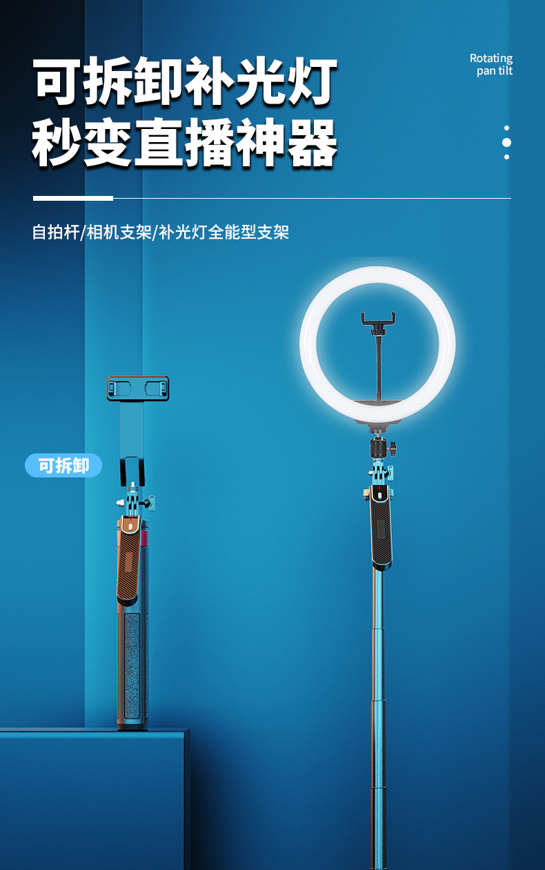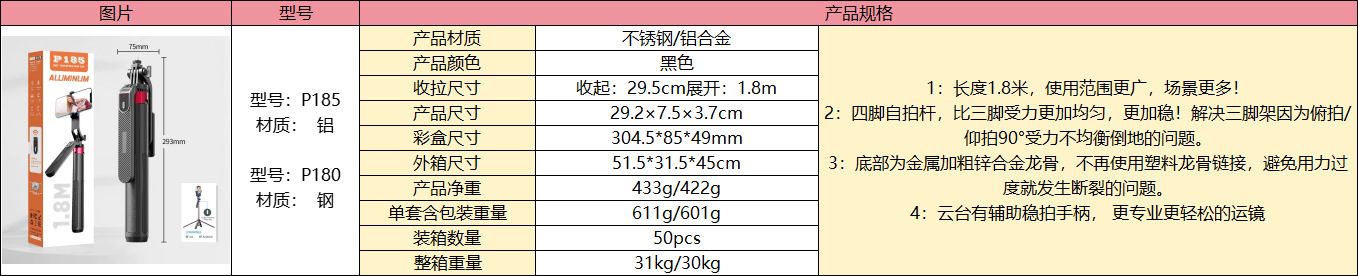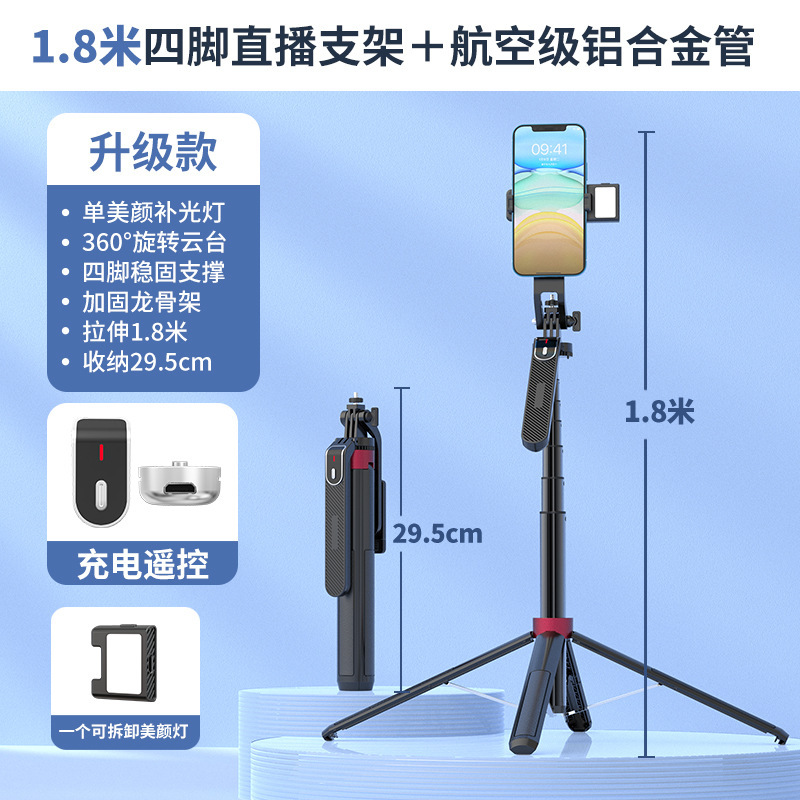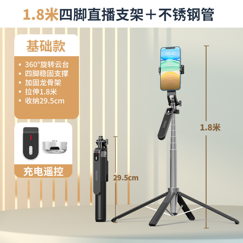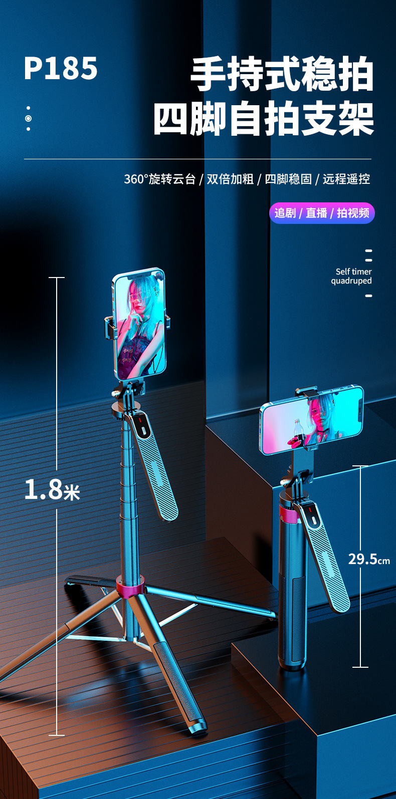 Jincheng P185 알루미늄 합금 사각대 블루투스 셀카 스틱 범용 휴대 전화 라이브 방송 바닥 스탠드 휴대용 안정기스토어 가기