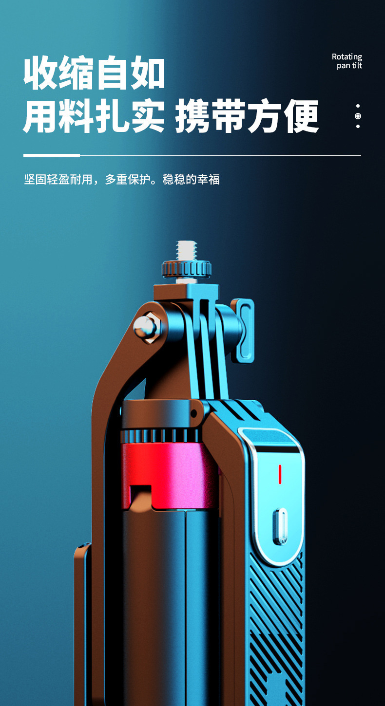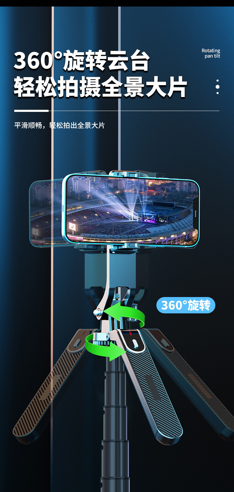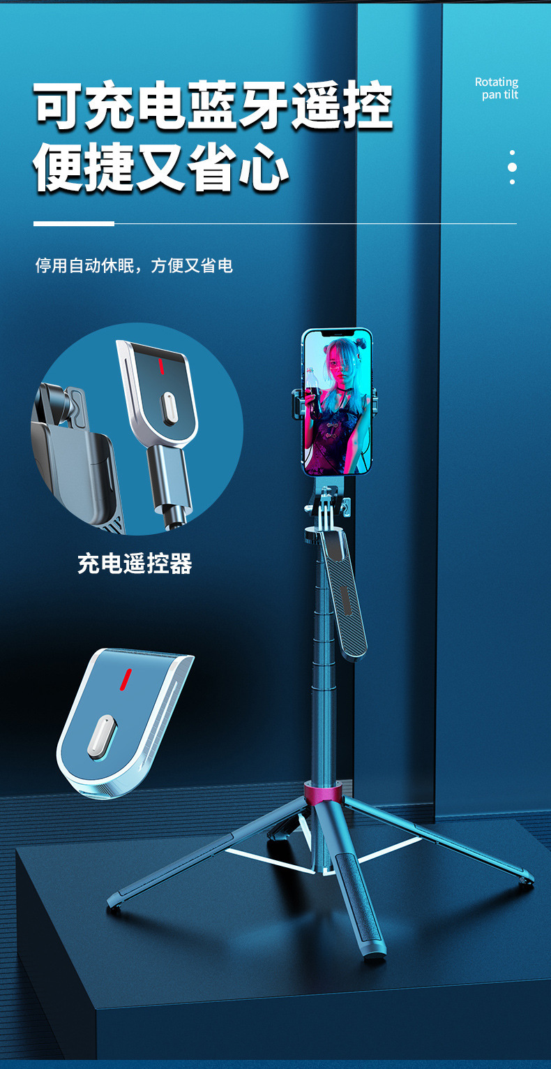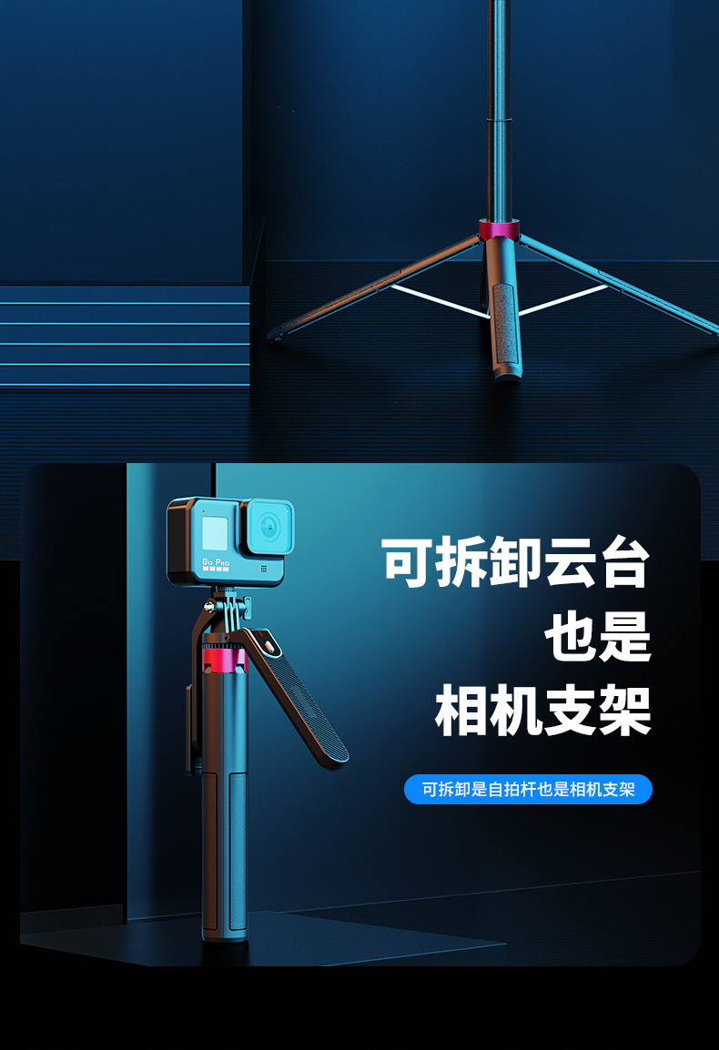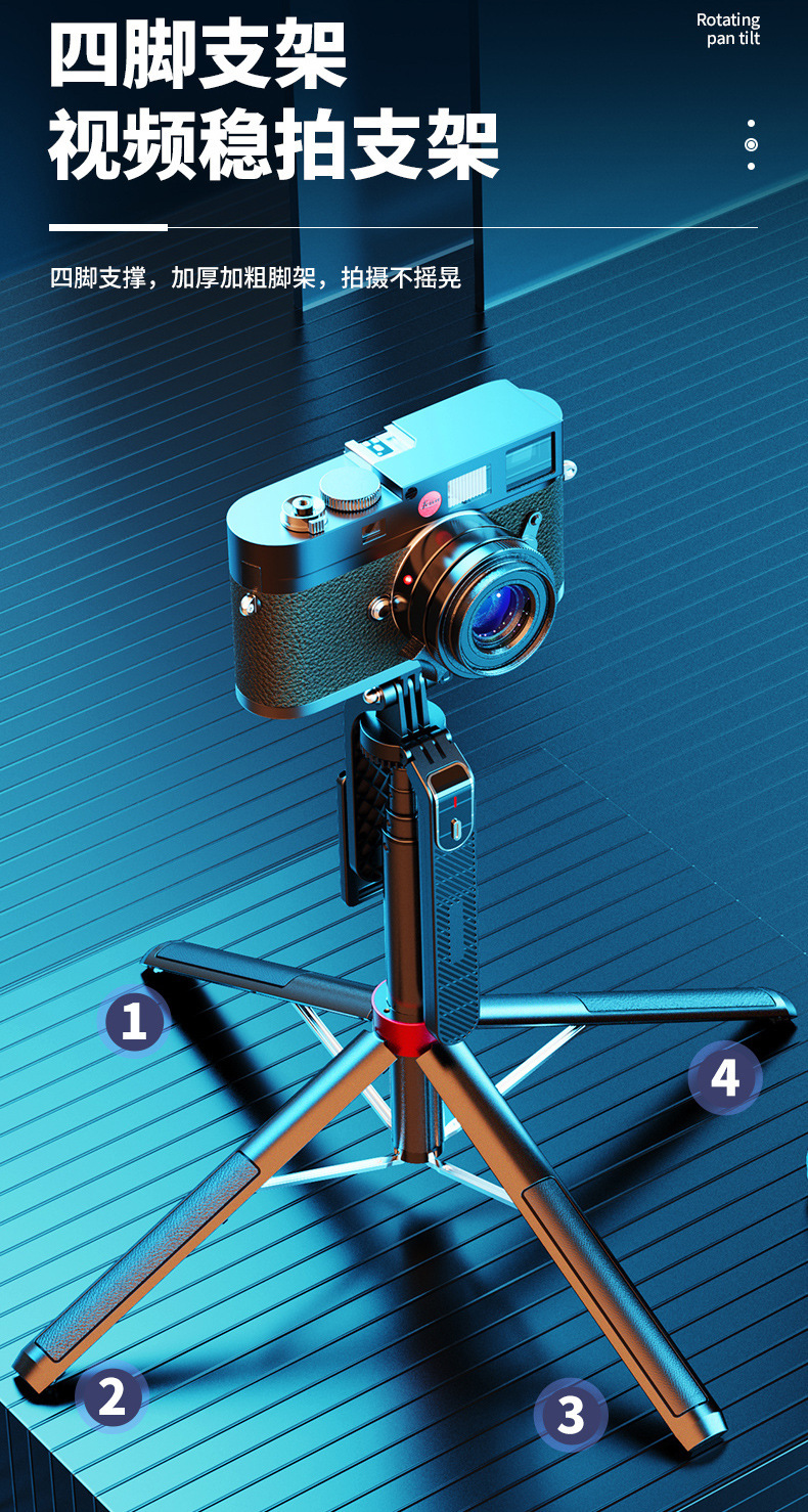 Jincheng P185 알루미늄 합금 사각대 블루투스 셀카 스틱 범용 휴대 전화 라이브 방송 바닥 스탠드 휴대용 안정기