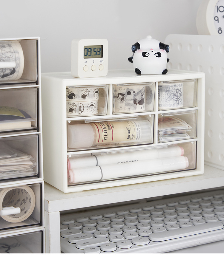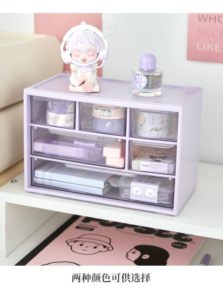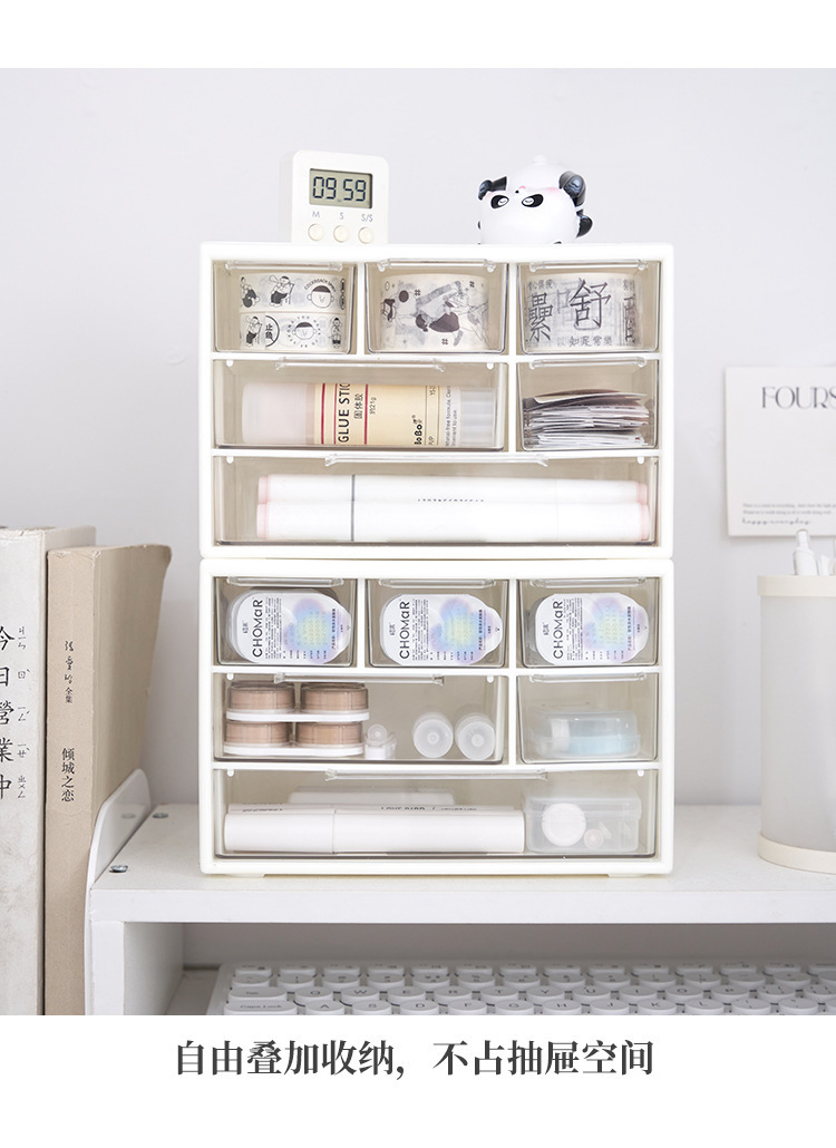 六宫格桌面抽屉式收纳盒透明首饰盒学生书桌文具收纳首饰收纳盒子