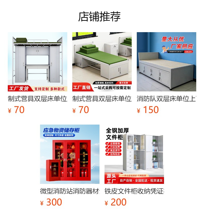군용 기숙사용품, 14인용 철제 2층 침대, 책상 및 의자, 기숙사용품 캐비닛, 높낮이 조절 침대, 1인용 이층 철제 침대스토어 가기