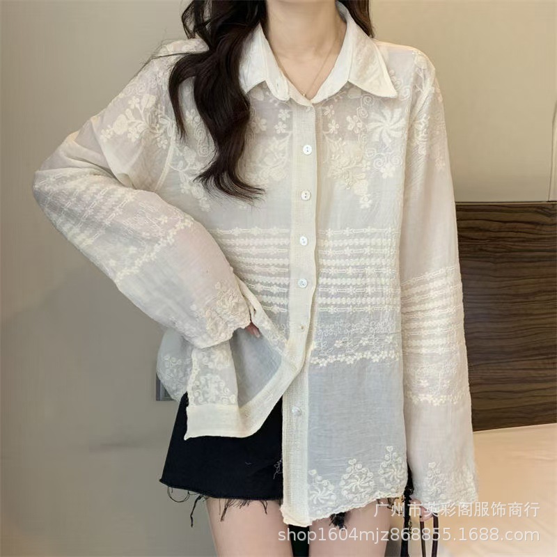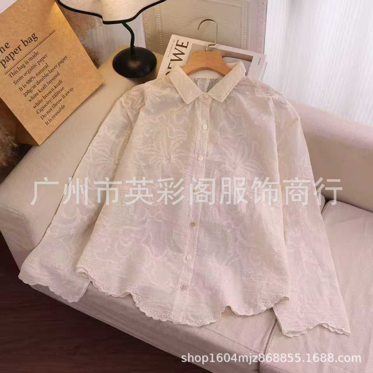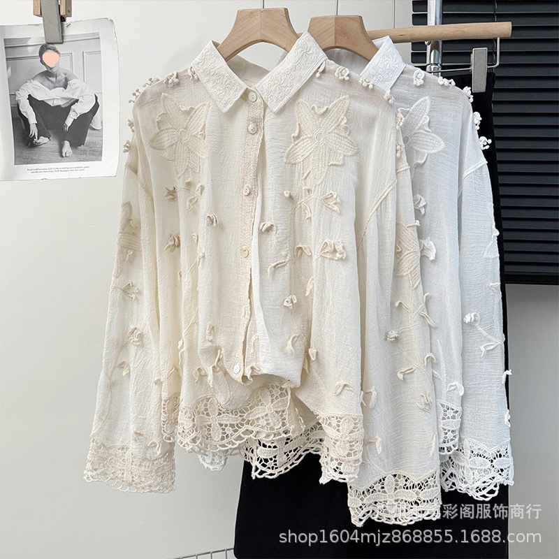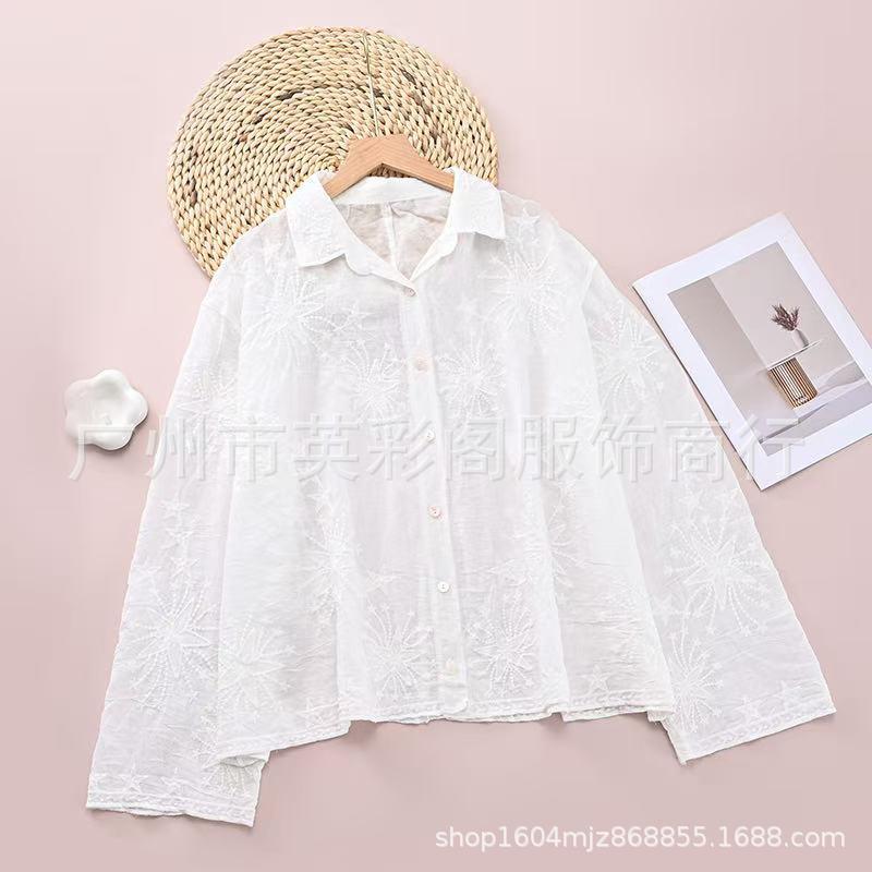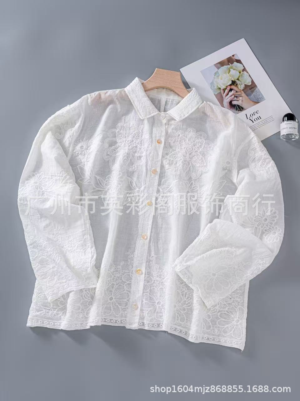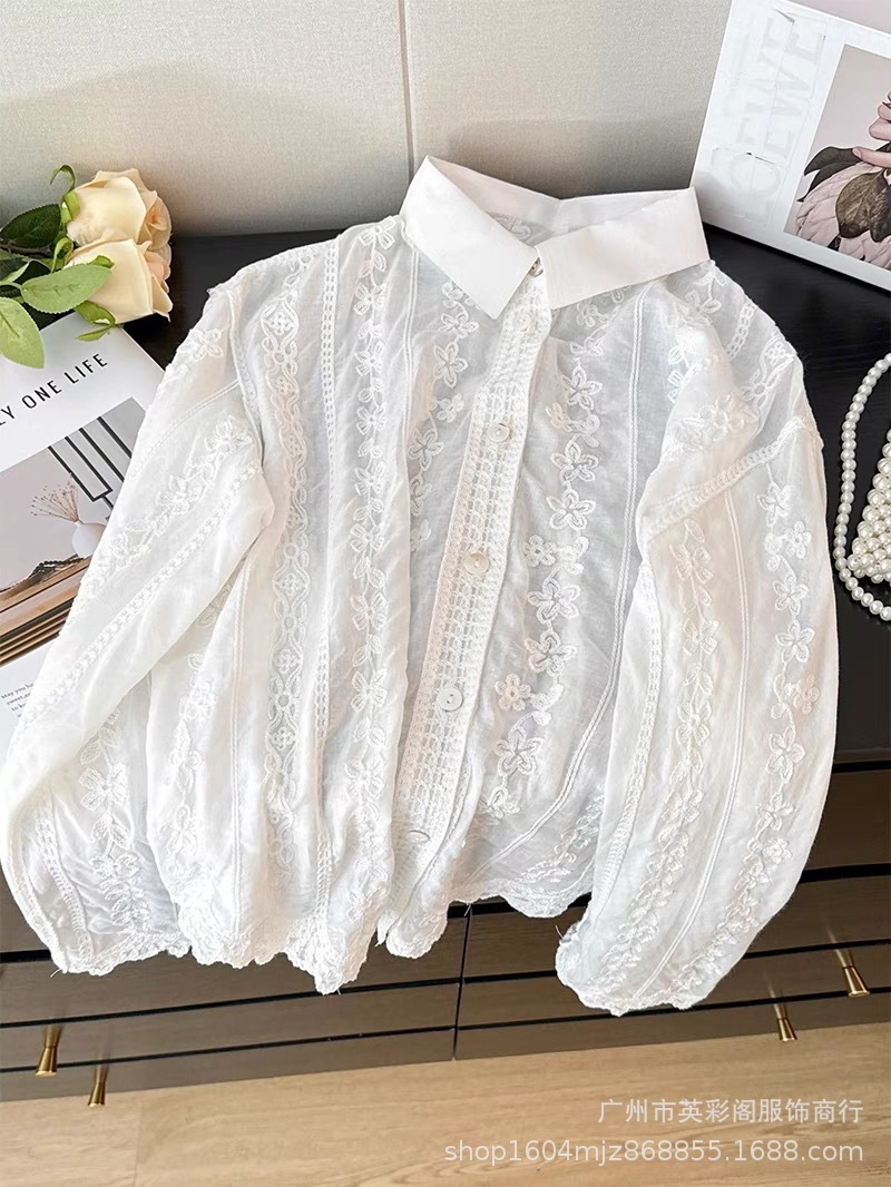 한국식 여성 의류 틈새 자수 셔츠 여성용 느슨한 슬림룩 우아한 올매치 문학 스타일 셔츠 여성용 봄 옷 트렌디 탑스토어 가기