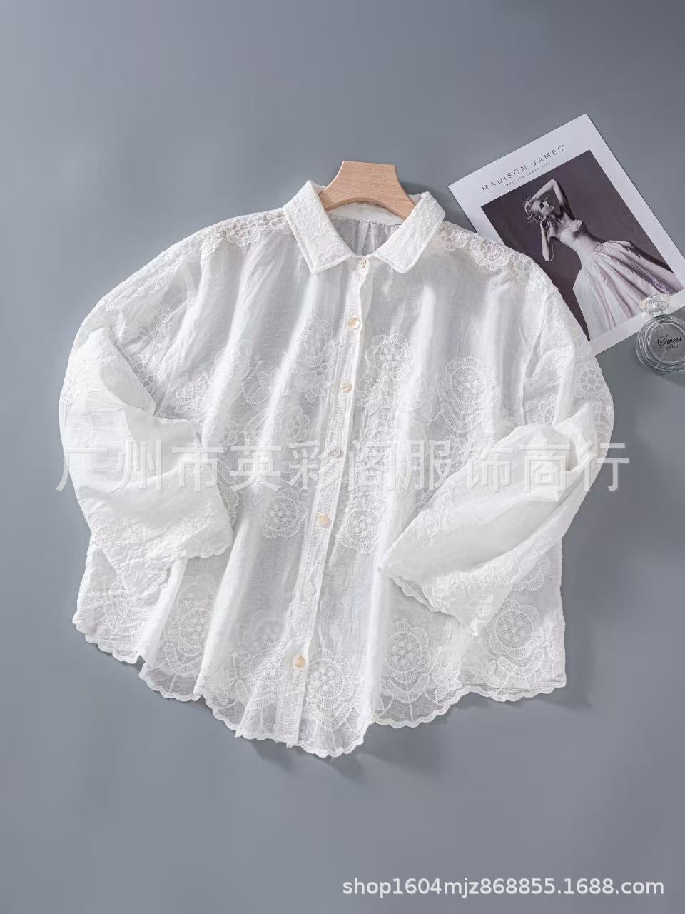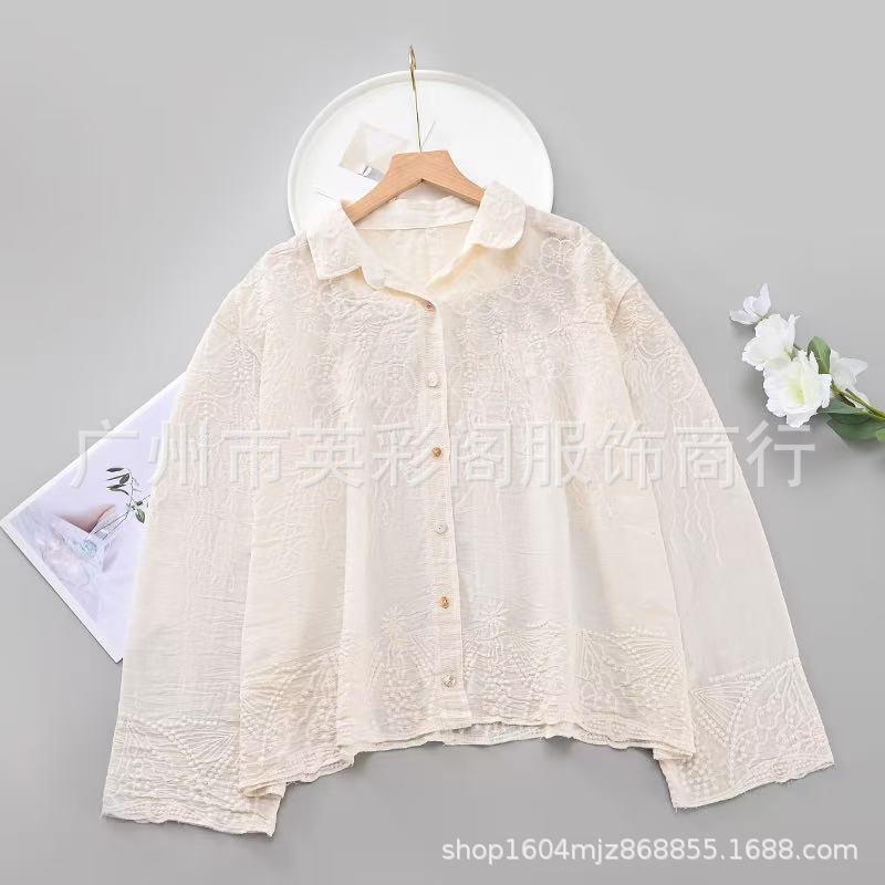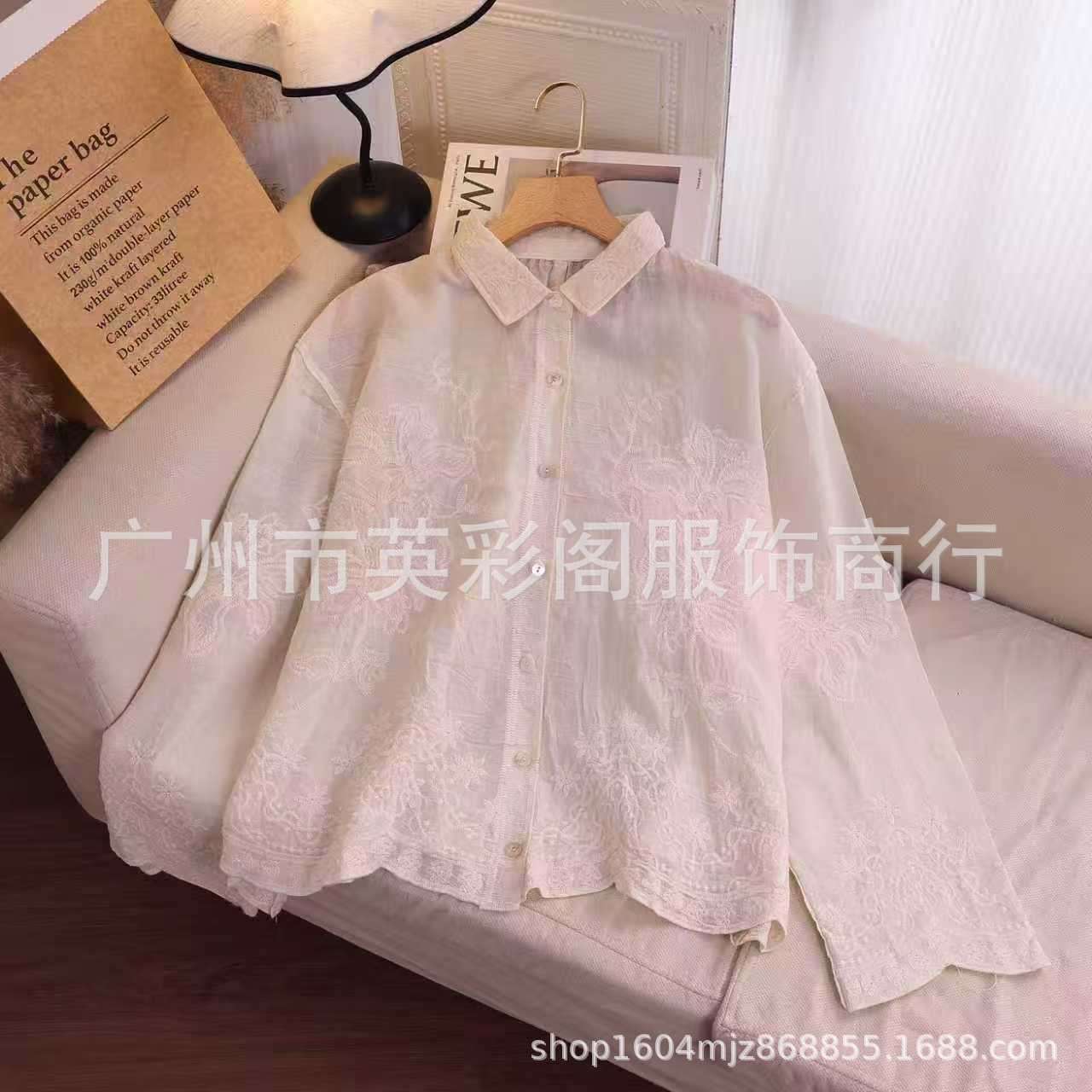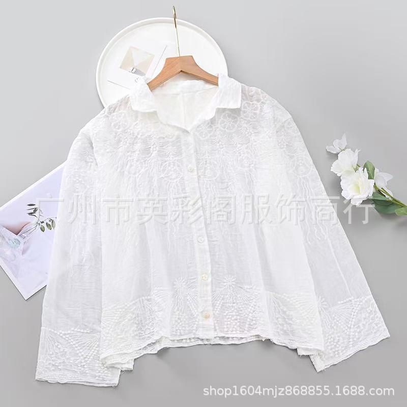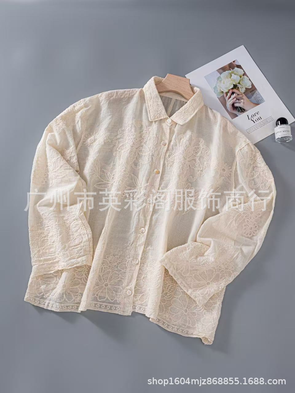 한국식 여성 의류 틈새 자수 셔츠 여성용 느슨한 슬림룩 우아한 올매치 문학 스타일 셔츠 여성용 봄 옷 트렌디 탑스토어 가기