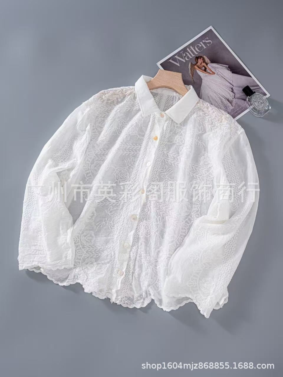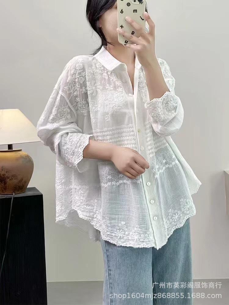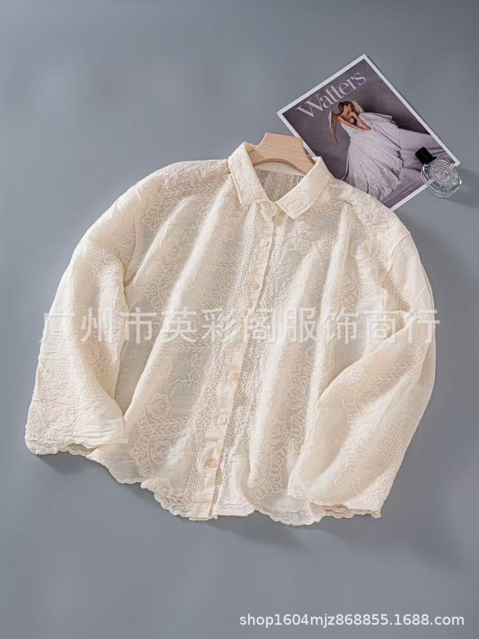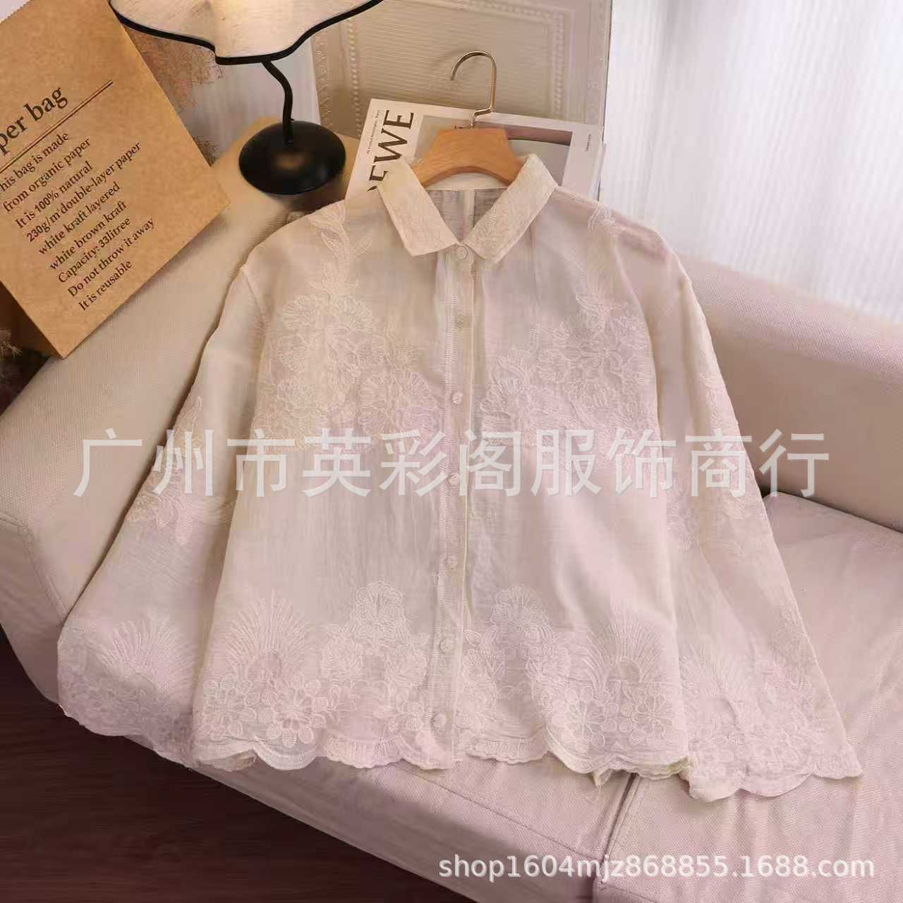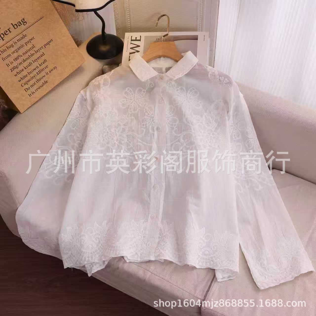 한국식 여성 의류 틈새 자수 셔츠 여성용 느슨한 슬림룩 우아한 올매치 문학 스타일 셔츠 여성용 봄 옷 트렌디 탑스토어 가기