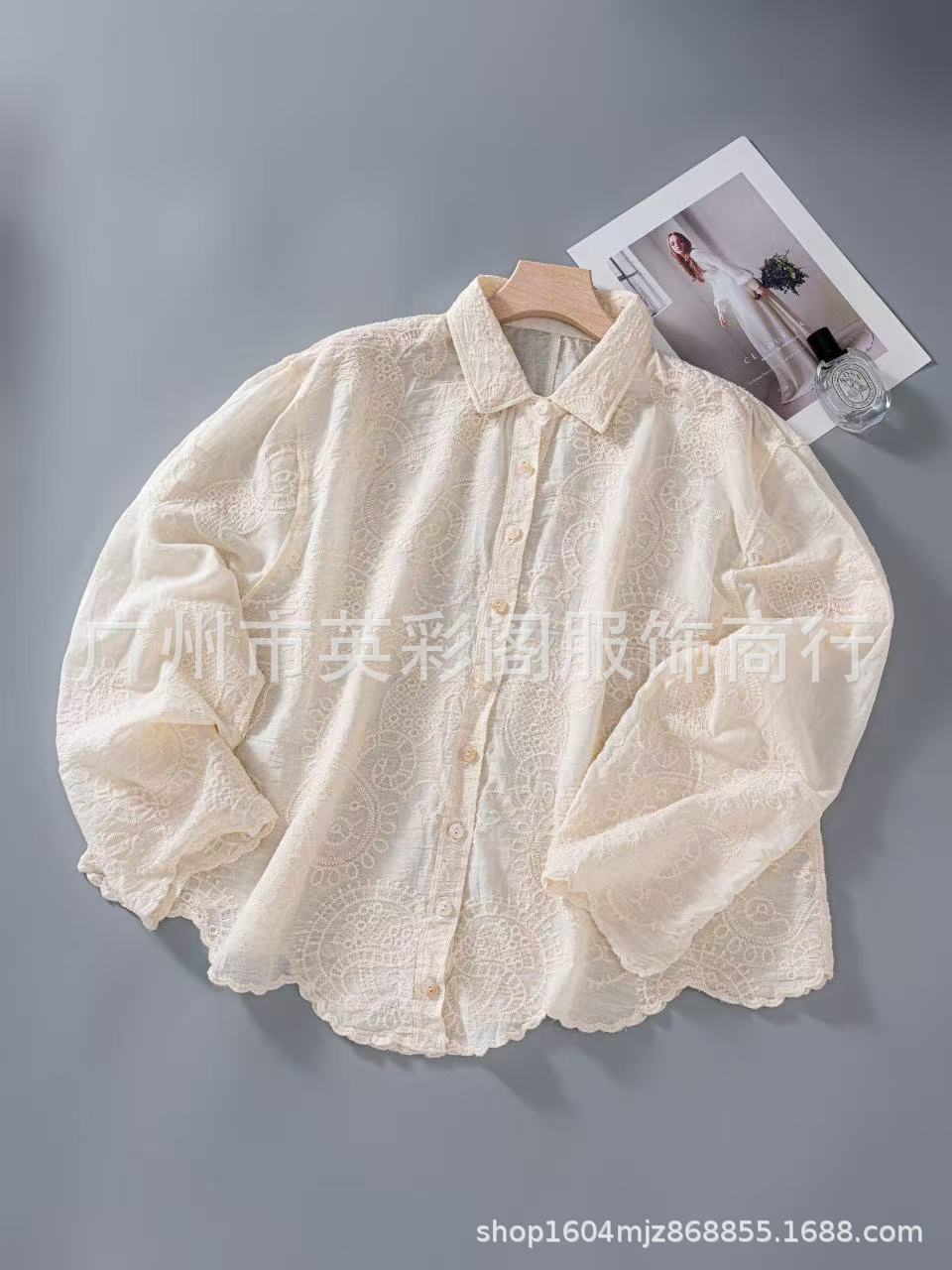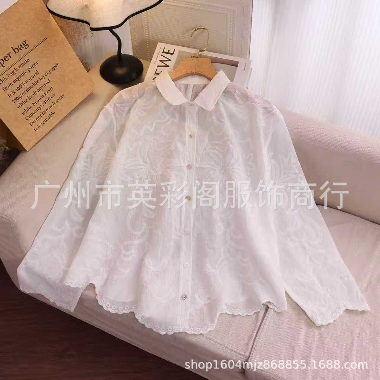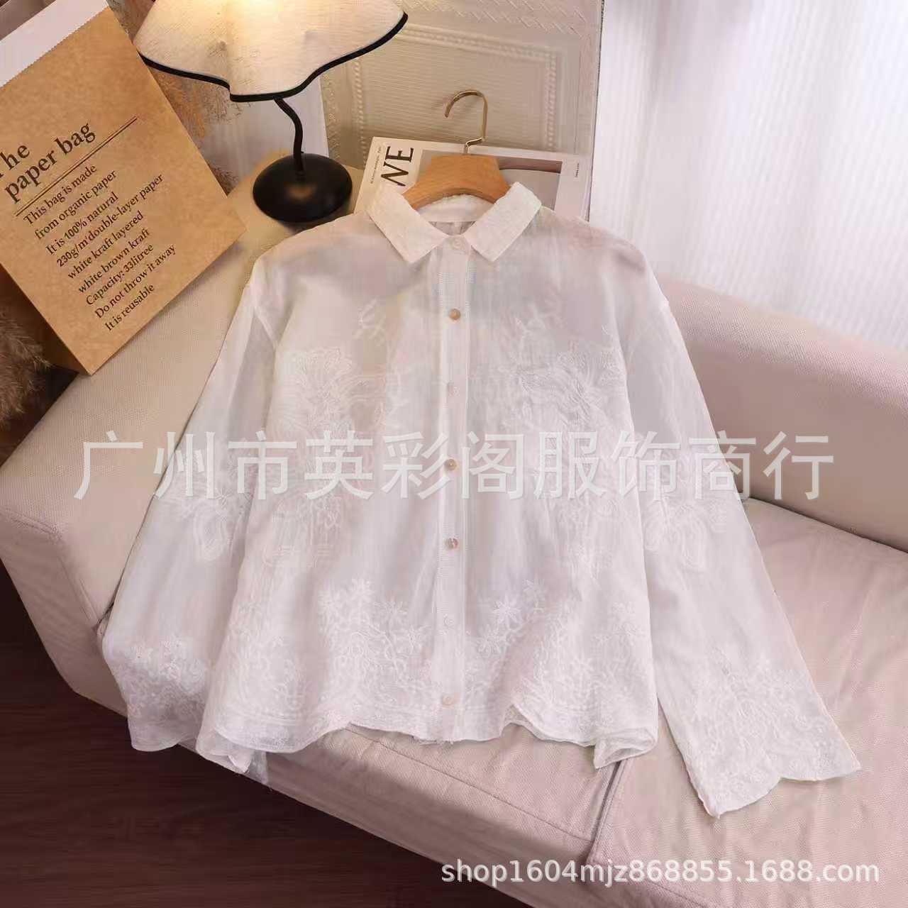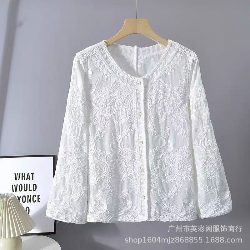 한국식 여성 의류 틈새 자수 셔츠 여성용 느슨한 슬림룩 우아한 올매치 문학 스타일 셔츠 여성용 봄 옷 트렌디 탑스토어 가기