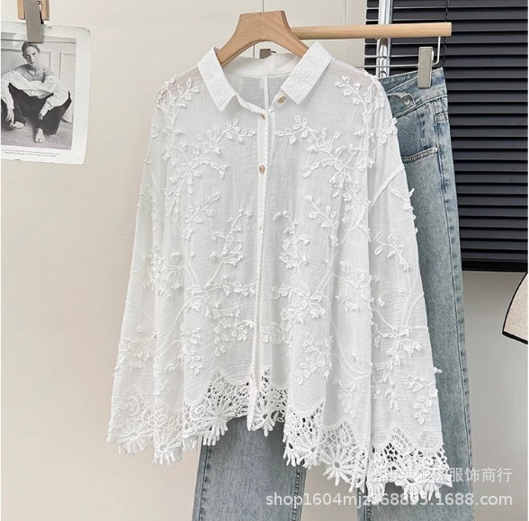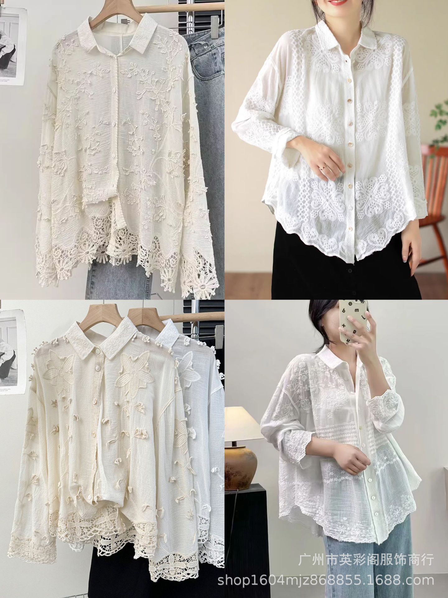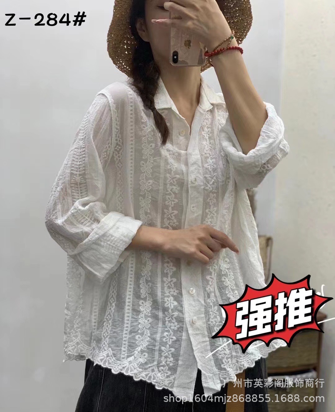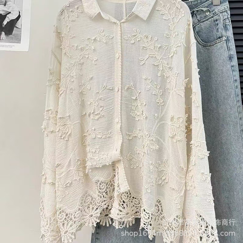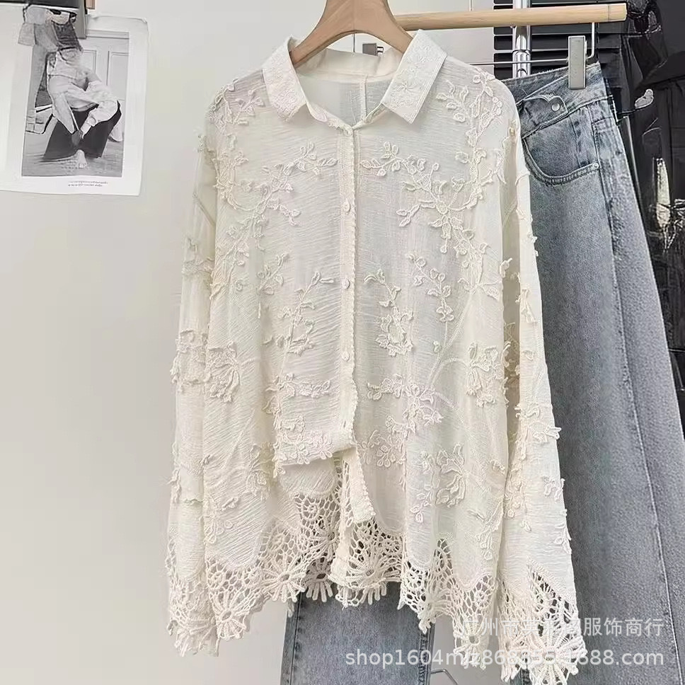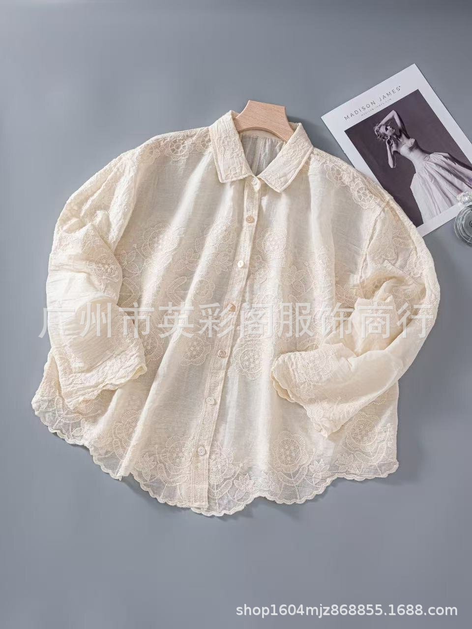한국식 여성 의류 틈새 자수 셔츠 여성용 느슨한 슬림룩 우아한 올매치 문학 스타일 셔츠 여성용 봄 옷 트렌디 탑스토어 가기