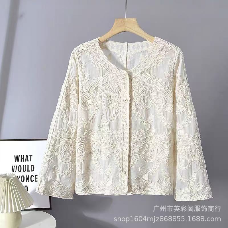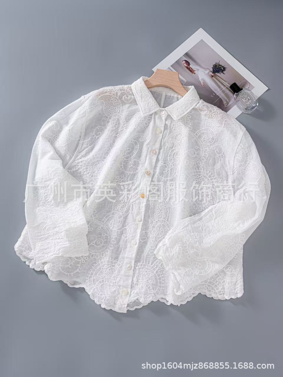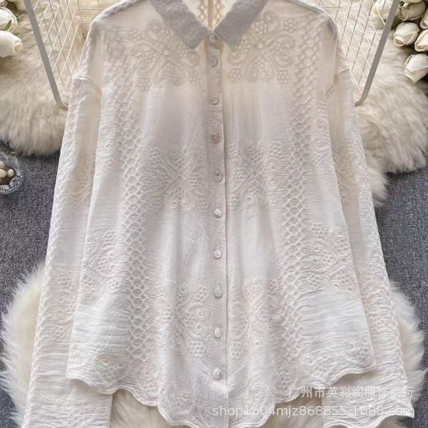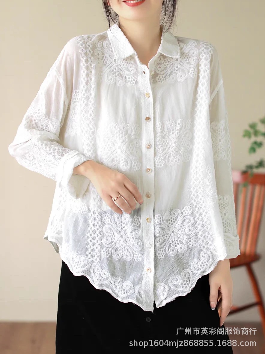 한국식 여성 의류 틈새 자수 셔츠 여성용 느슨한 슬림룩 우아한 올매치 문학 스타일 셔츠 여성용 봄 옷 트렌디 탑