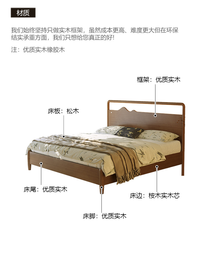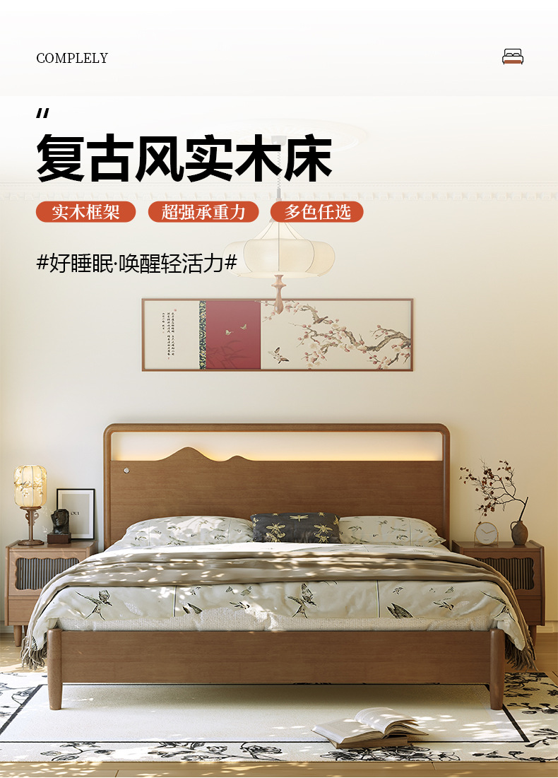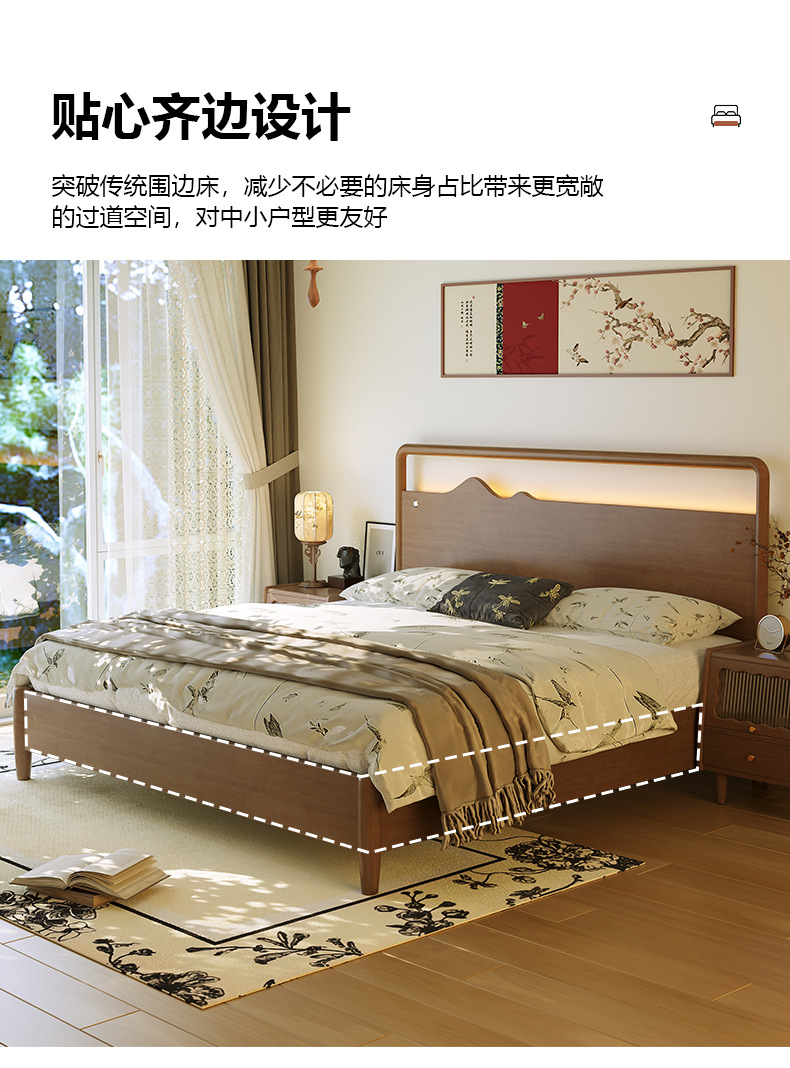 노래 스타일 미적 단단한 나무 침대 새로운 중국 더블 침대 홈스테이 마스터 침실 홈 작은 아파트 전체 단단한 나무 1.5 m 침대스토어 가기
