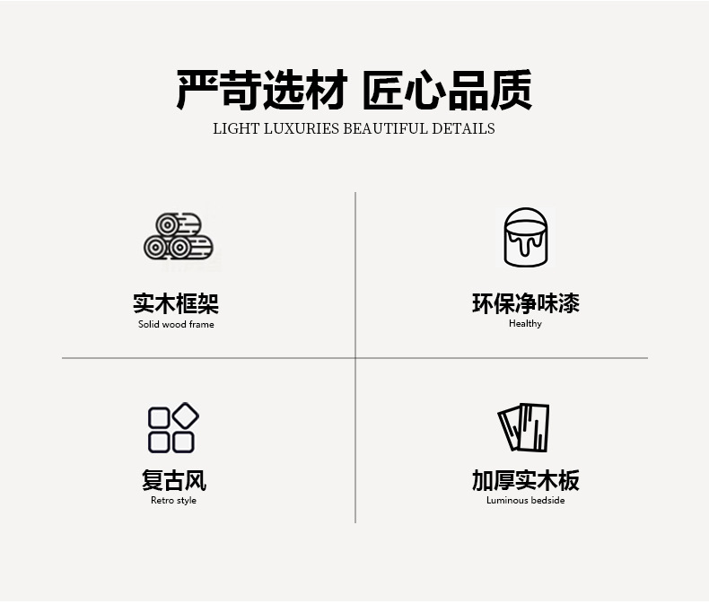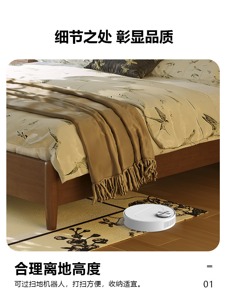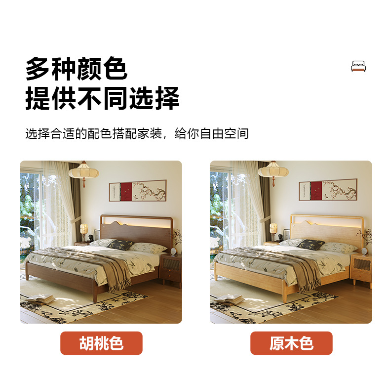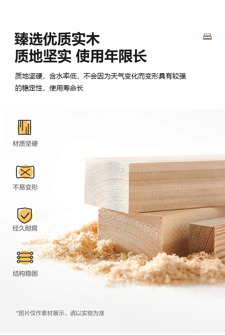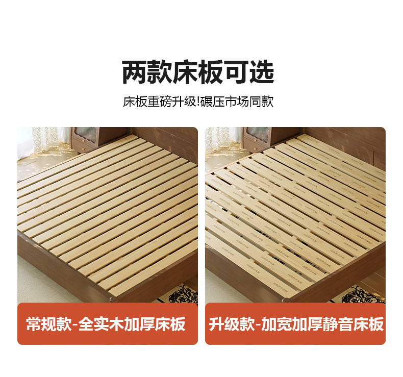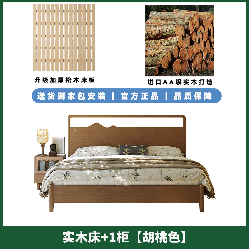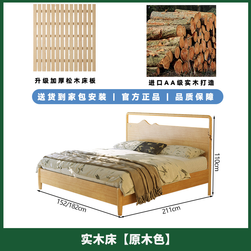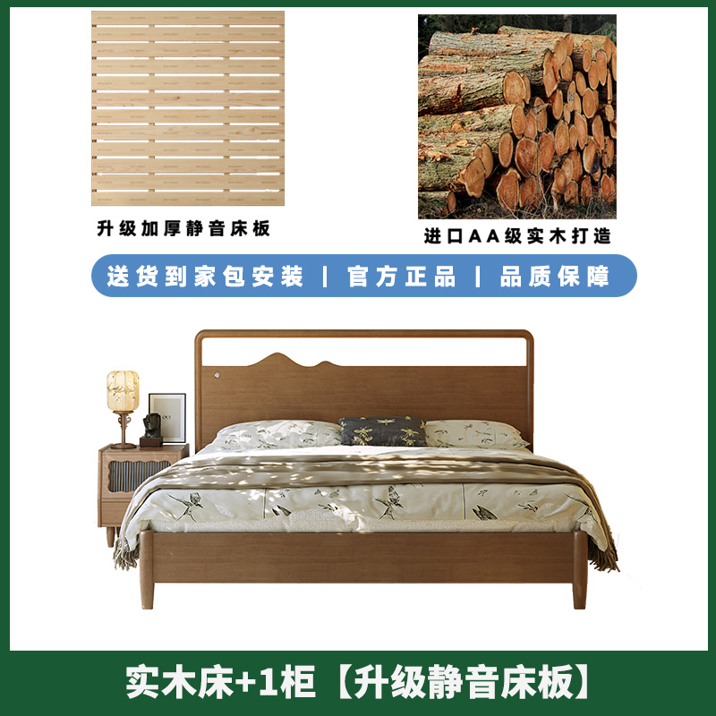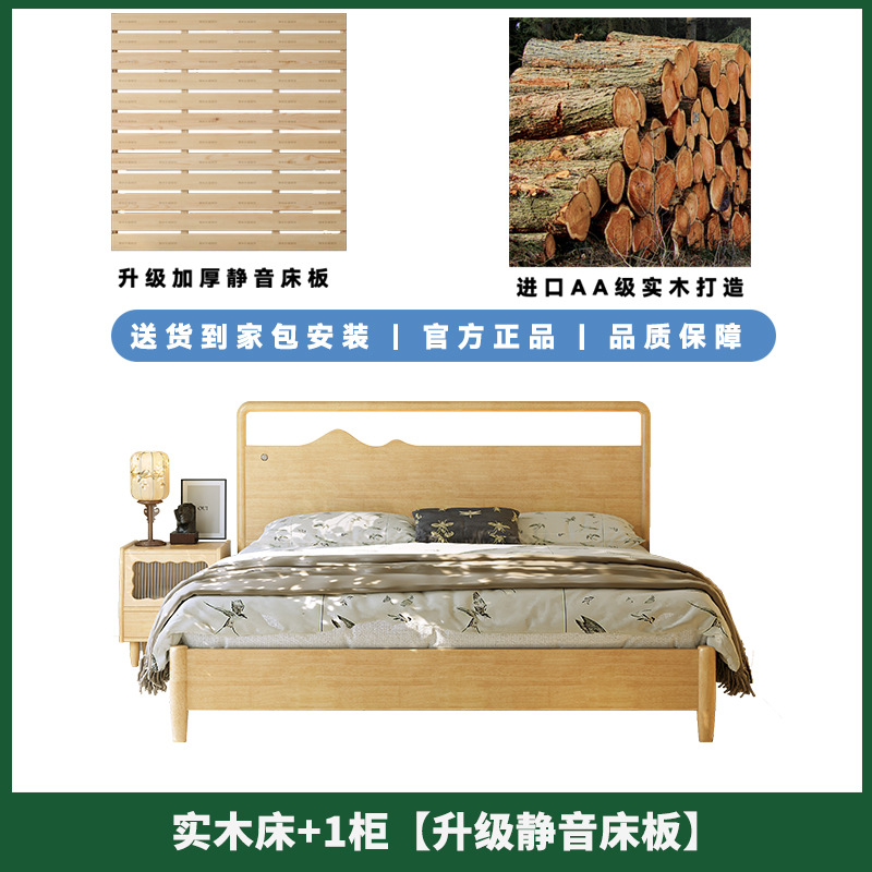 • 원목 침대 + 캐비닛 1개 [업그레이드된 사일런트 침대 보드] 원목 색상