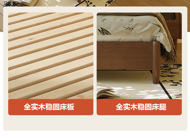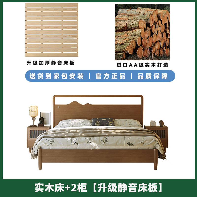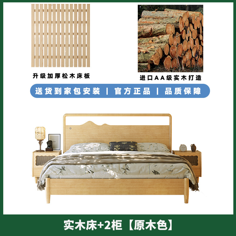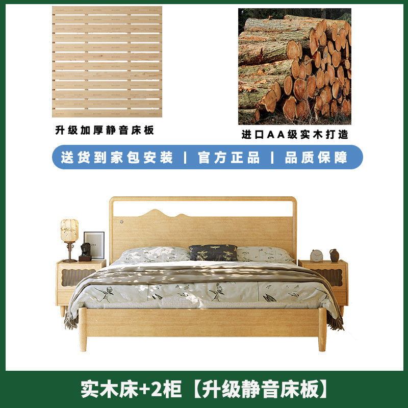 • 원목 침대 + 캐비닛 2개 [업그레이드된 사일런트 침대 보드] 원목 색상