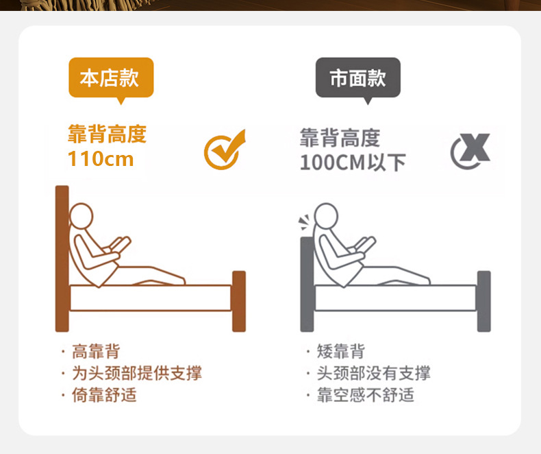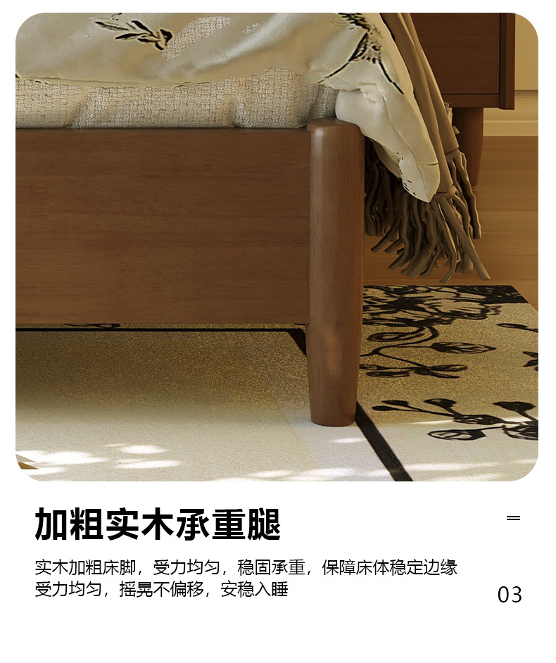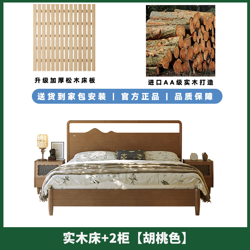 • 원목 침대 + 캐비닛 2개 [업그레이드된 사일런트 침대 보드] 월넛 컬러