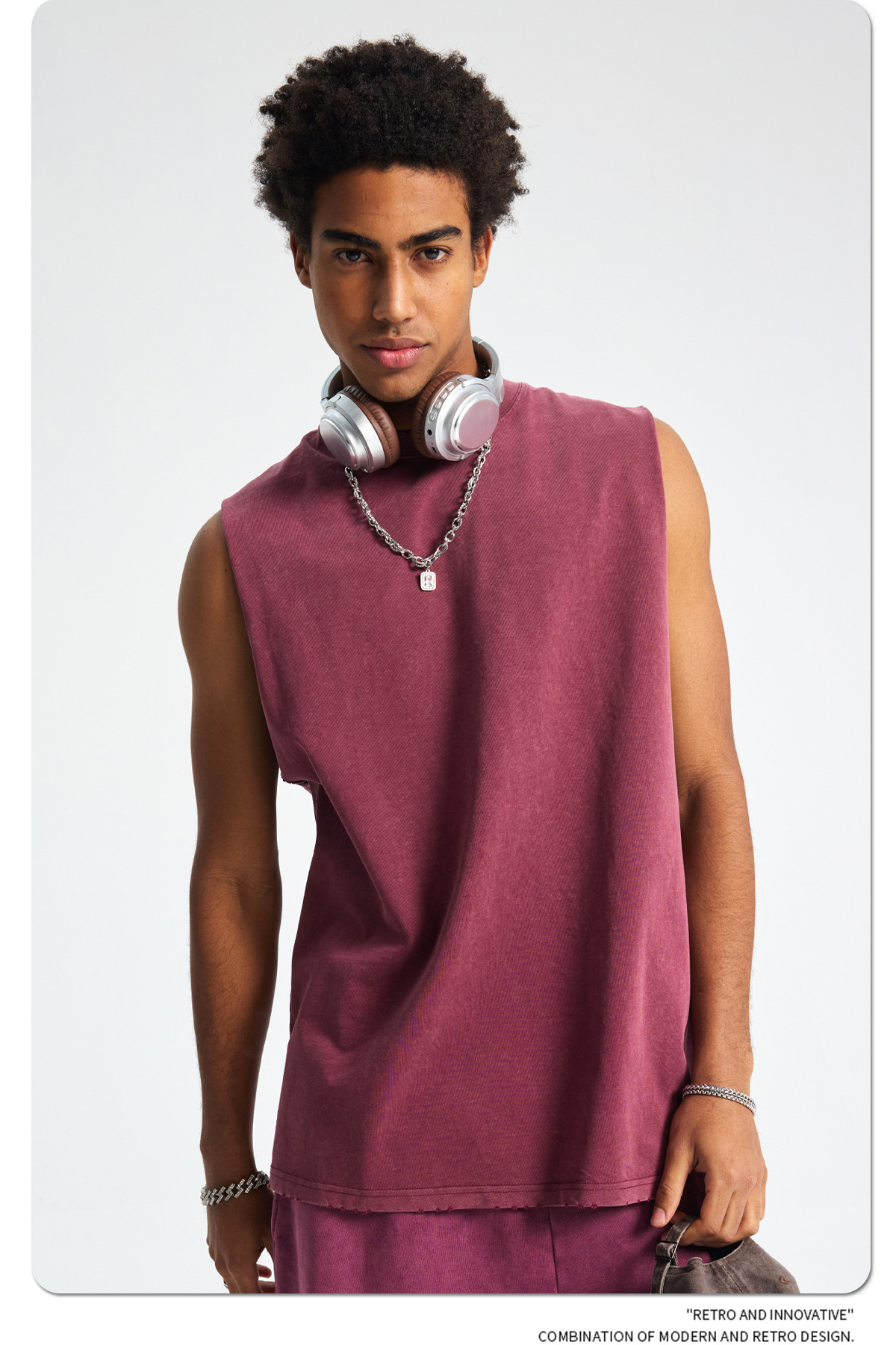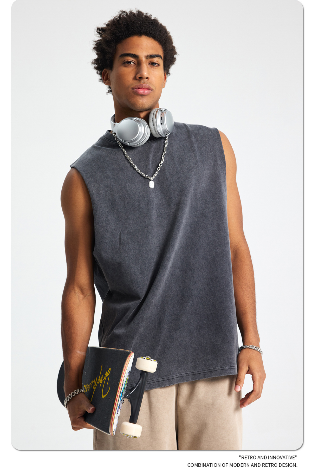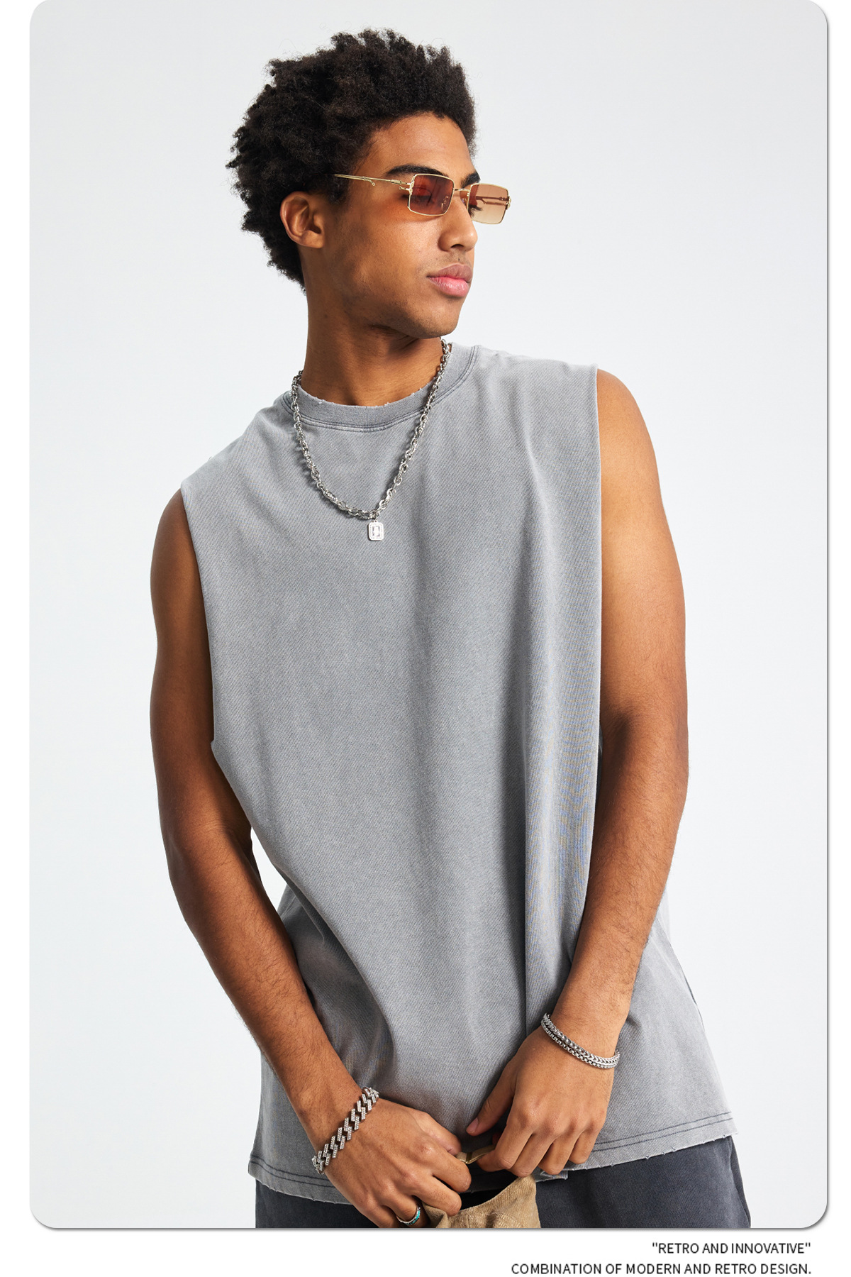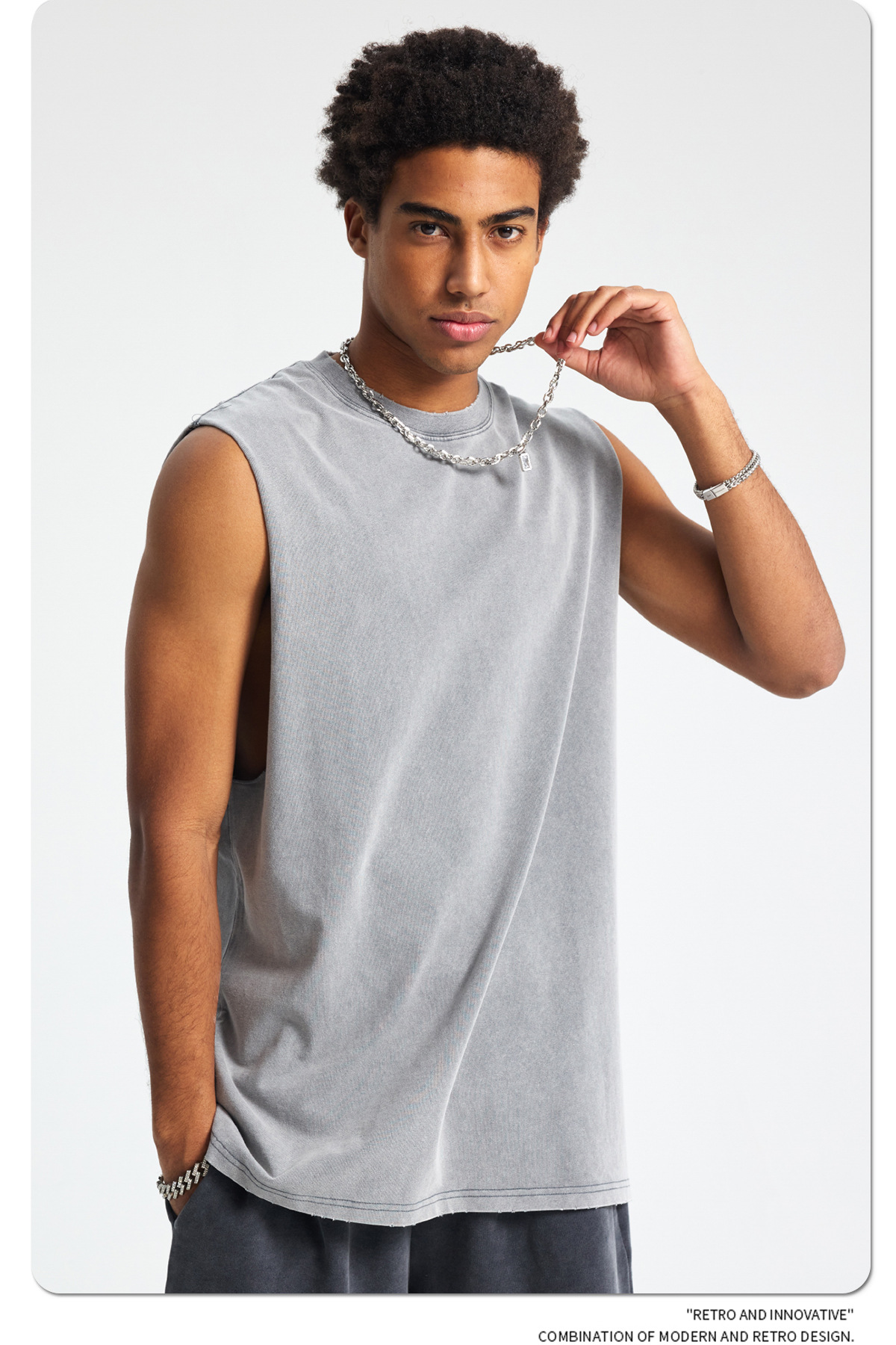 2026년 유럽 및 미국 수출용 여름 신상품 남성용 네로우 숄더 민소매 티셔츠, 단색 스포츠 캐주얼 루즈핏 피트니스 순면 민소매 티셔츠스토어 가기
