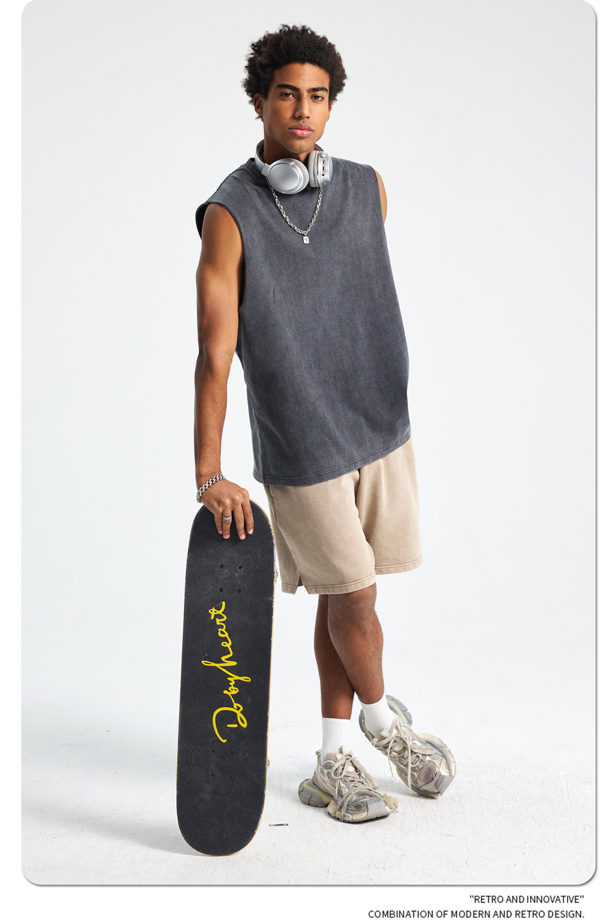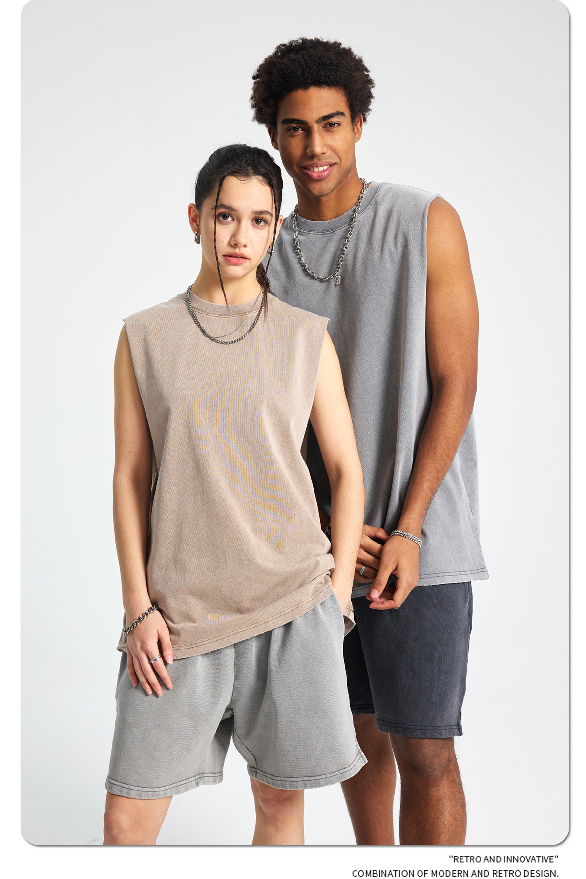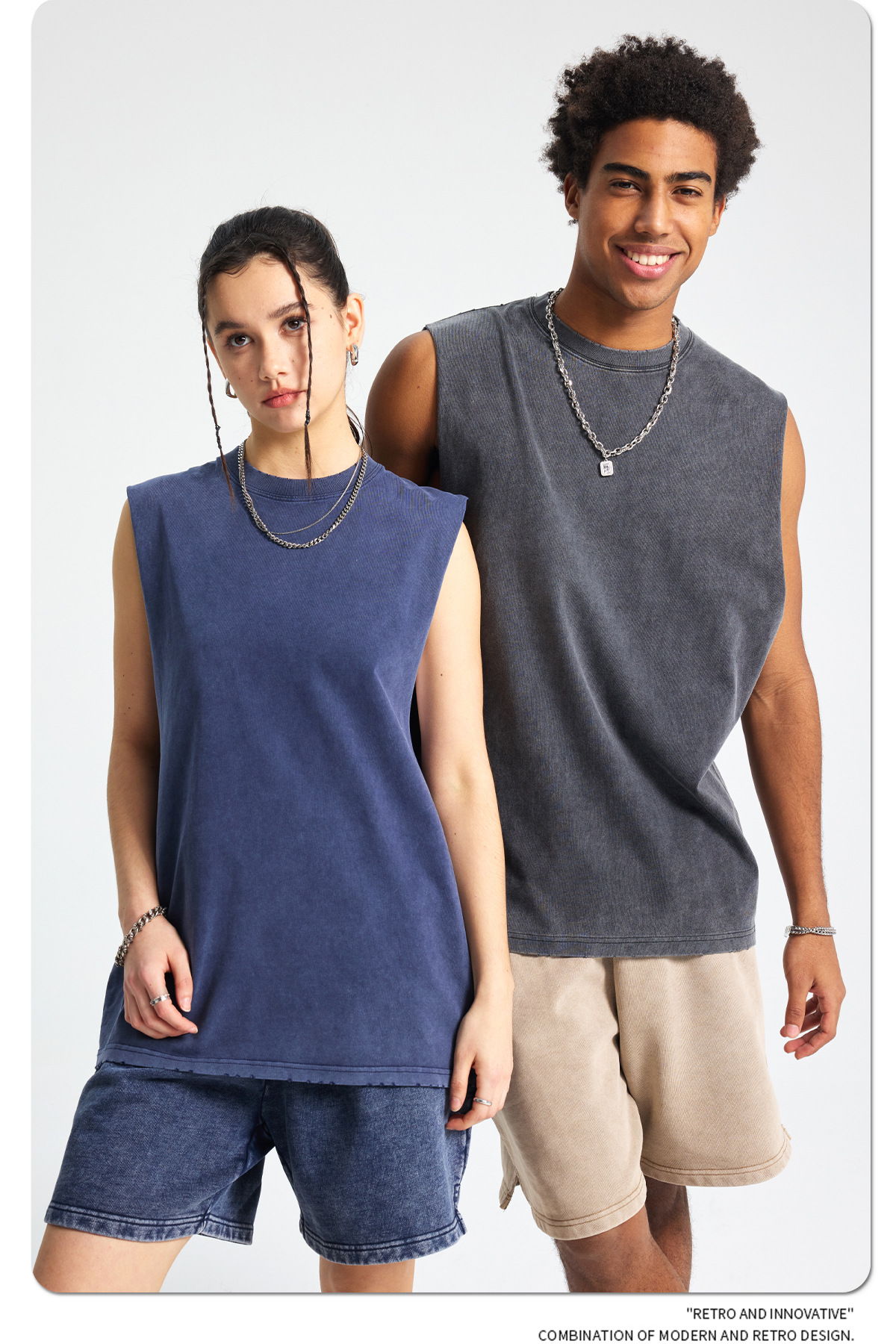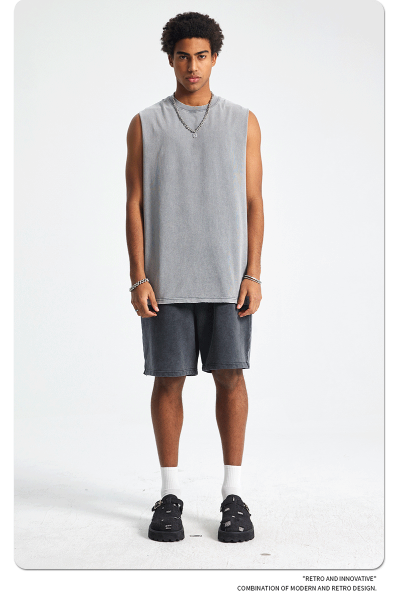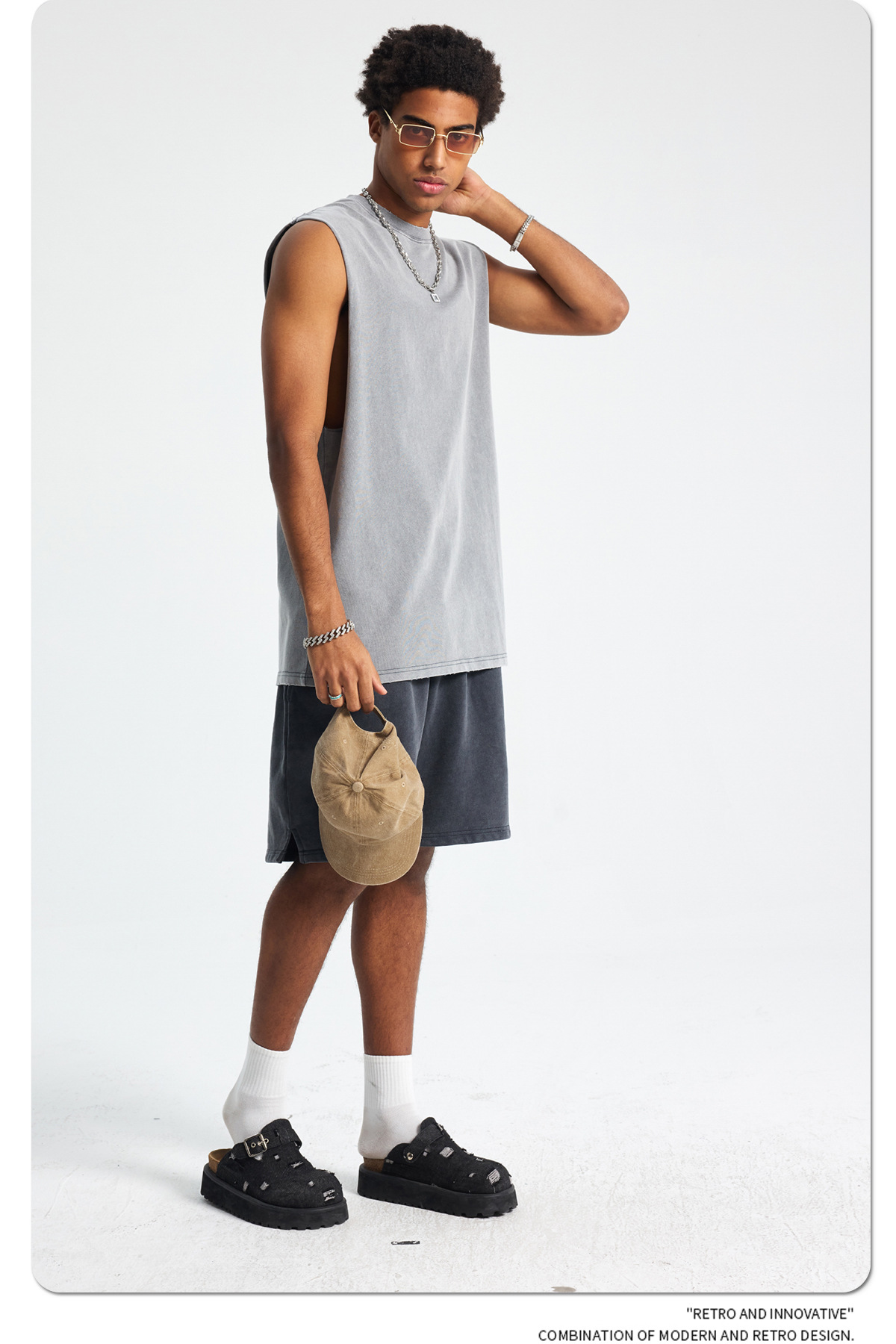2026년 유럽 및 미국 수출용 여름 신상품 남성용 네로우 숄더 민소매 티셔츠, 단색 스포츠 캐주얼 루즈핏 피트니스 순면 민소매 티셔츠스토어 가기