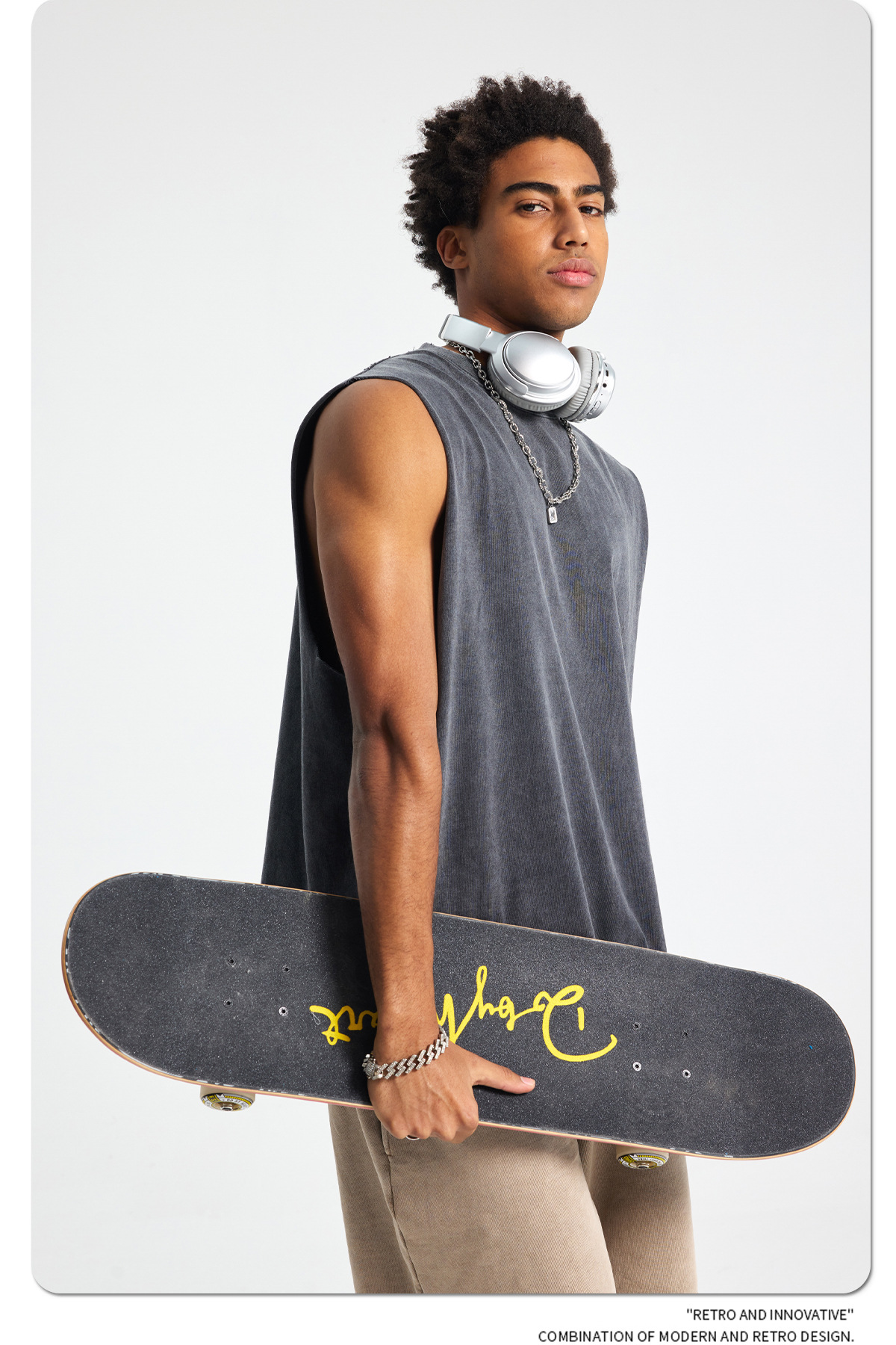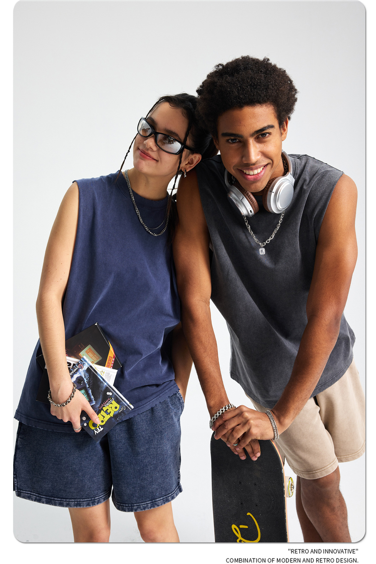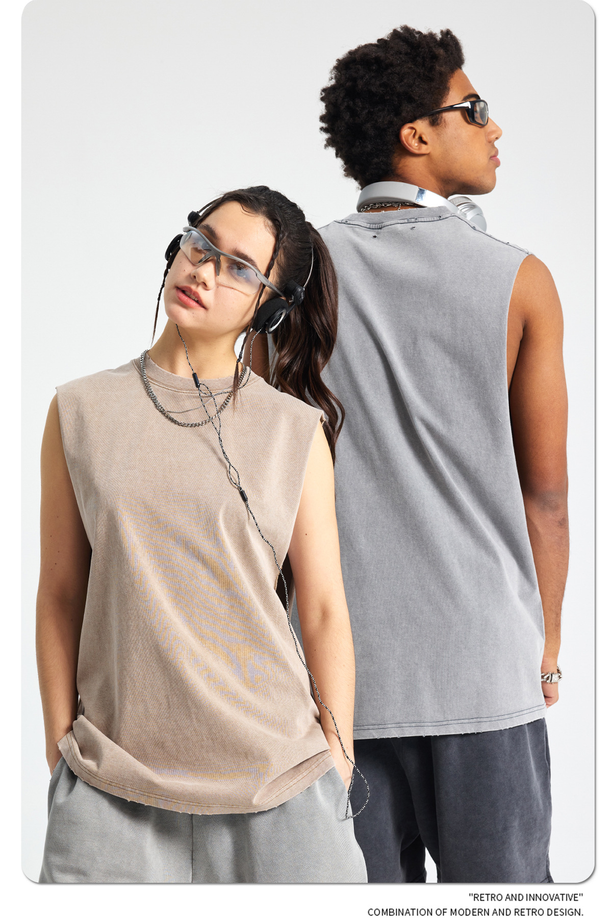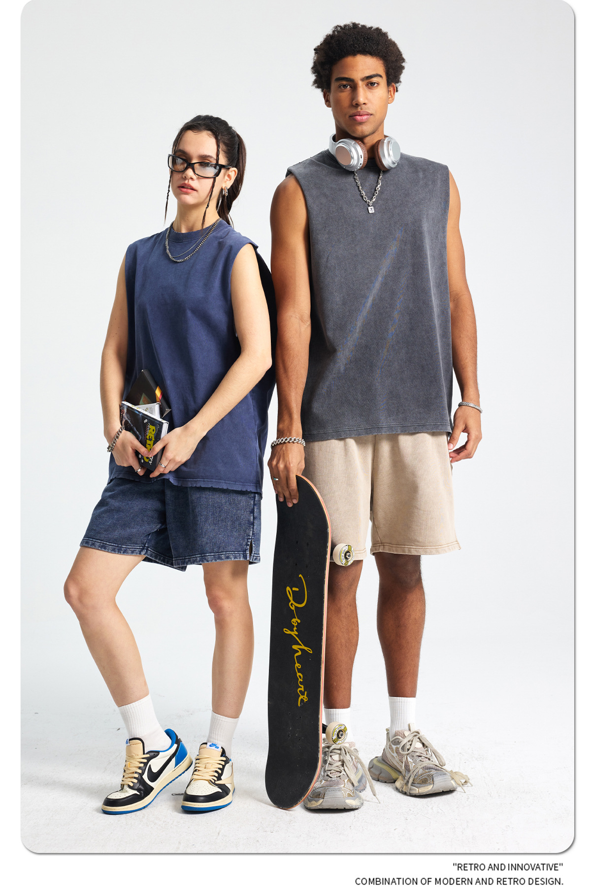 2026년 유럽 및 미국 수출용 여름 신상품 남성용 네로우 숄더 민소매 티셔츠, 단색 스포츠 캐주얼 루즈핏 피트니스 순면 민소매 티셔츠스토어 가기