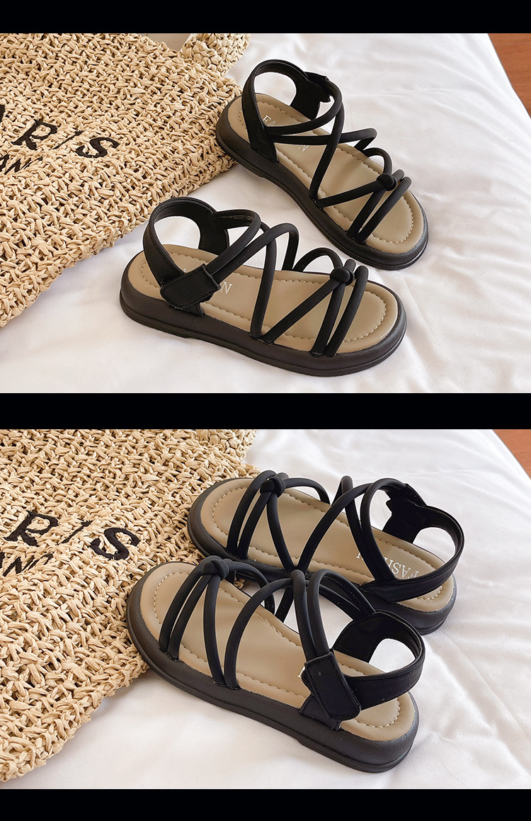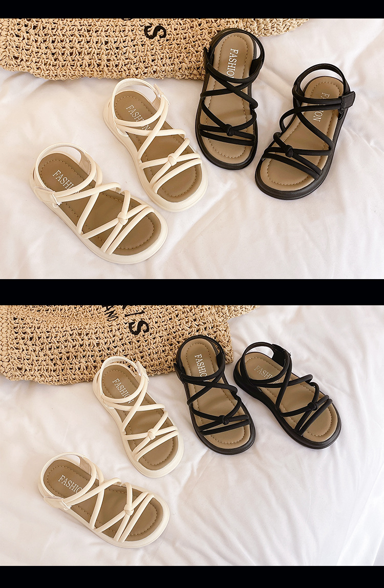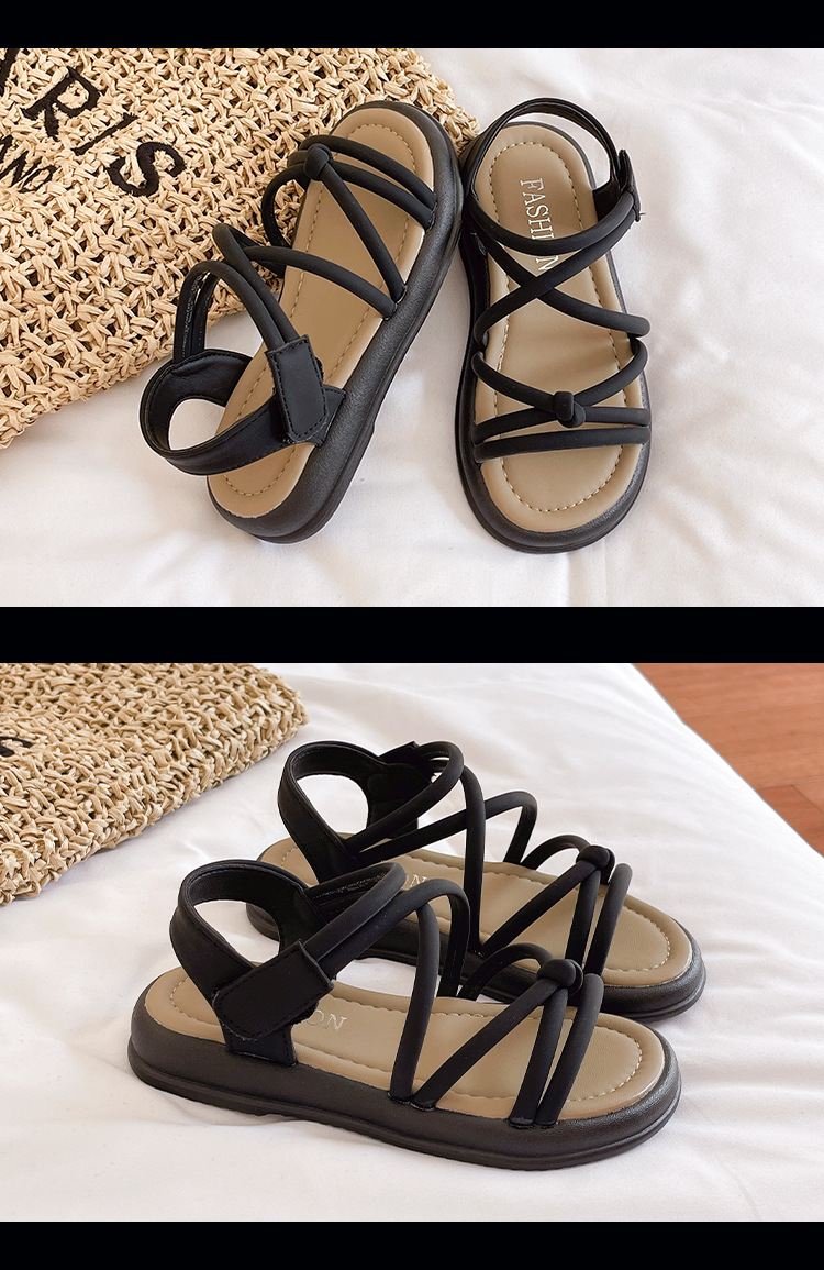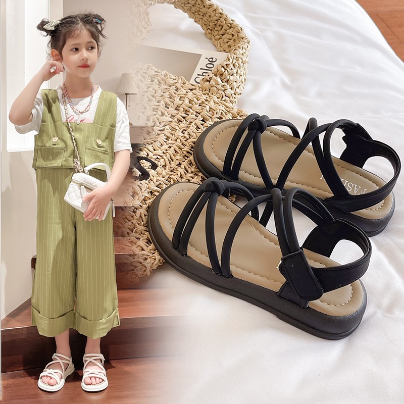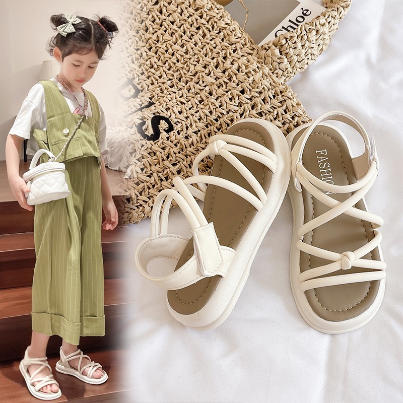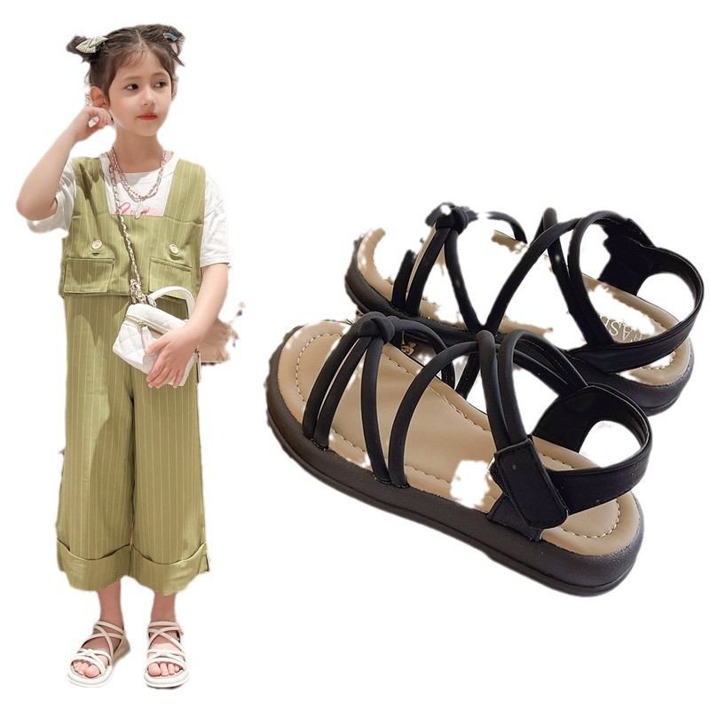 어린이 샌들 2025 여름 한국 스타일 소녀 크로스 스트랩 공주 한 단어 샌들 큰 어린이 패션 공연 신발스토어 가기
