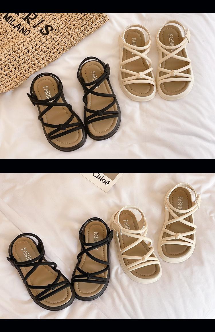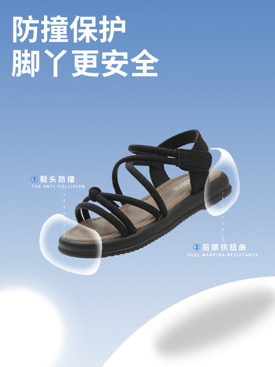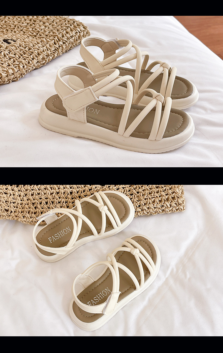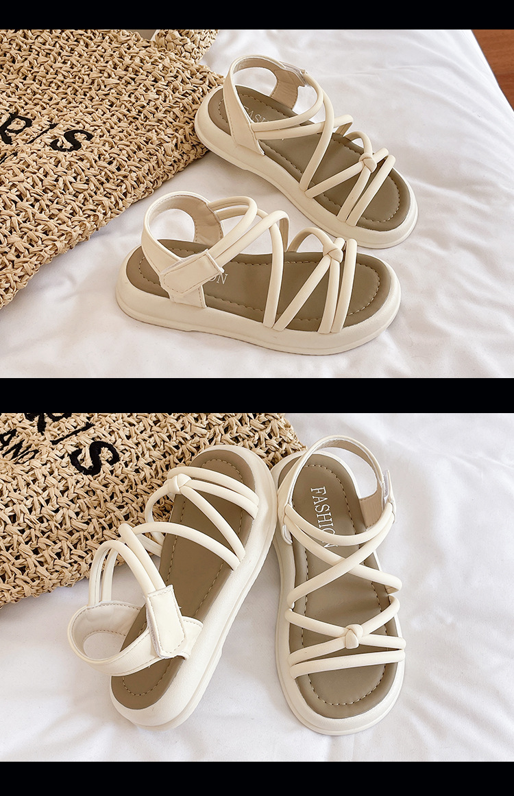 어린이 샌들 2025 여름 한국 스타일 소녀 크로스 스트랩 공주 한 단어 샌들 큰 어린이 패션 공연 신발스토어 가기
