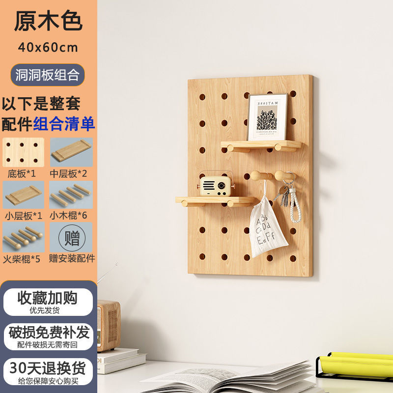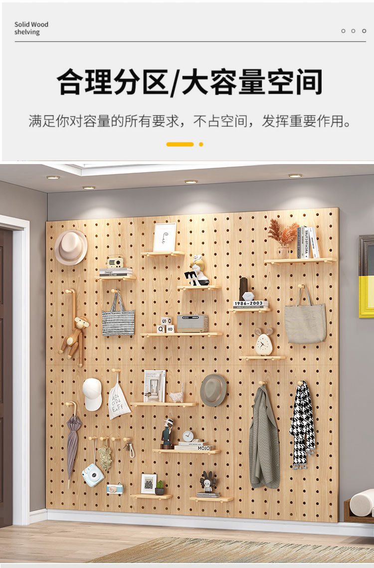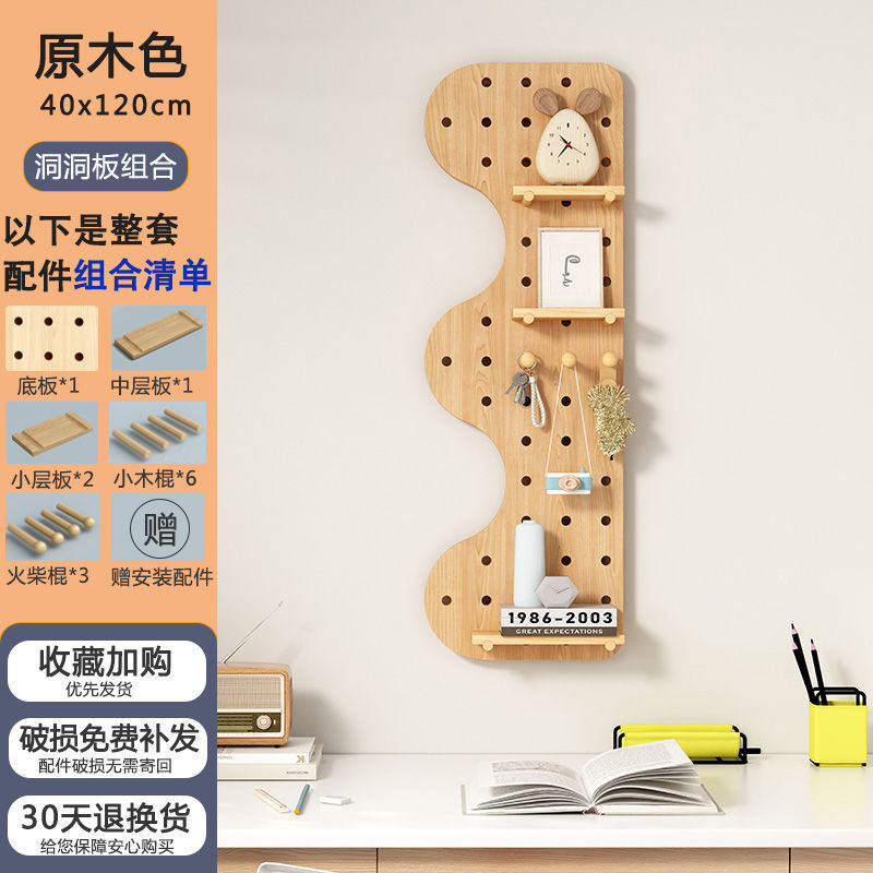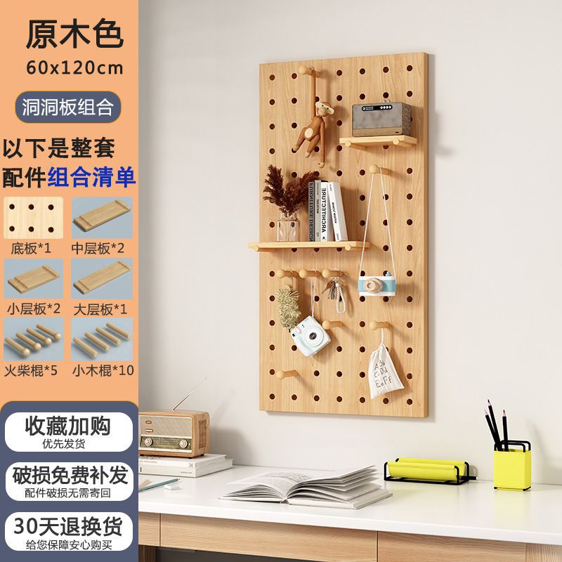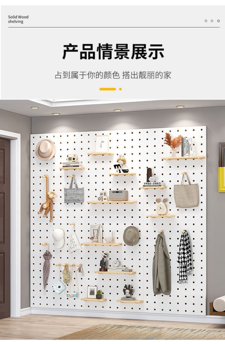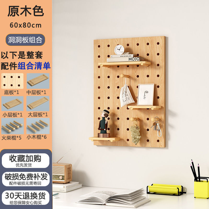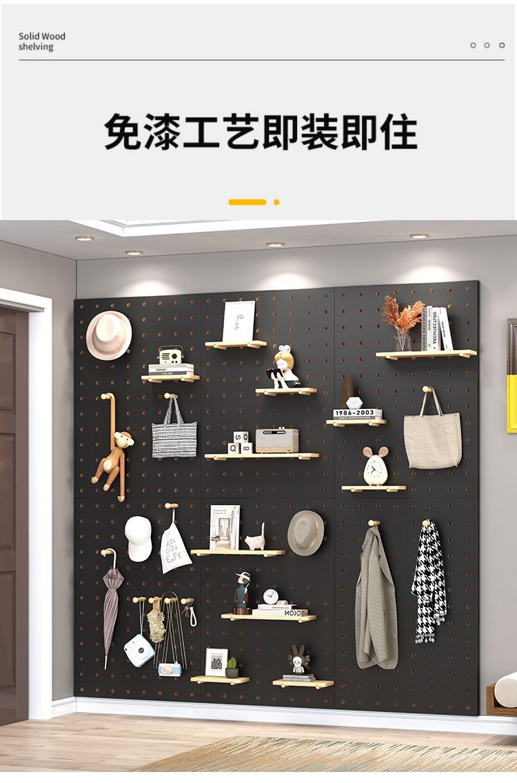 단단한 나무 구멍 보드 벽 저장 랙 교수형 보드 장식 파티션 랙 저장 랙 벽 나무 책장스토어 가기