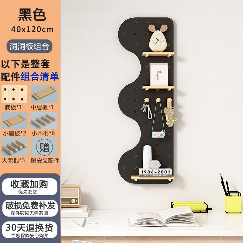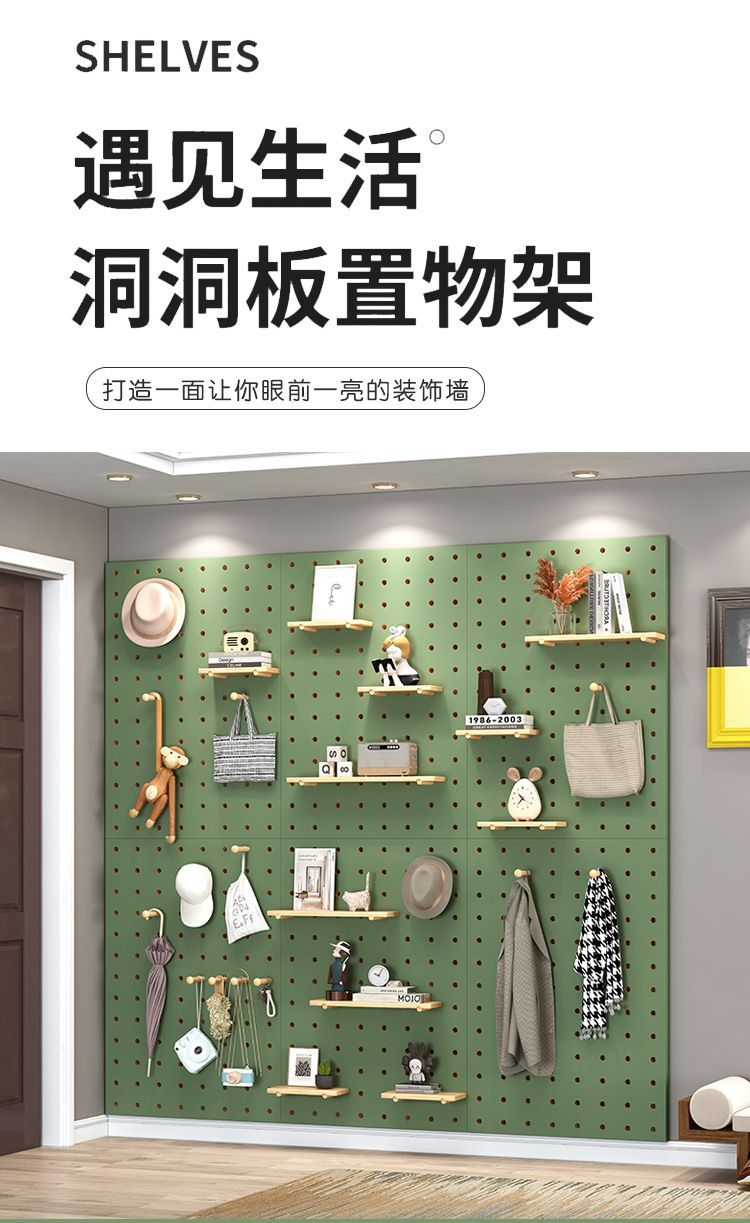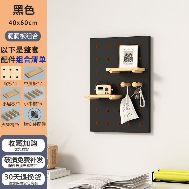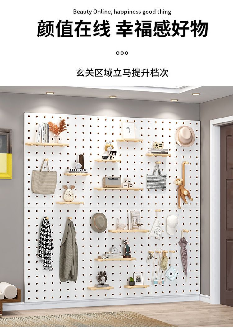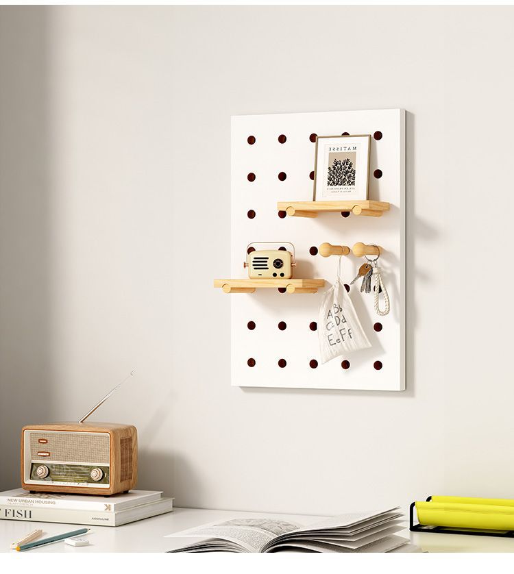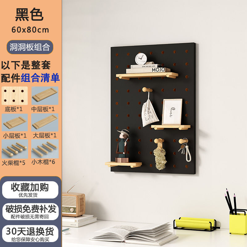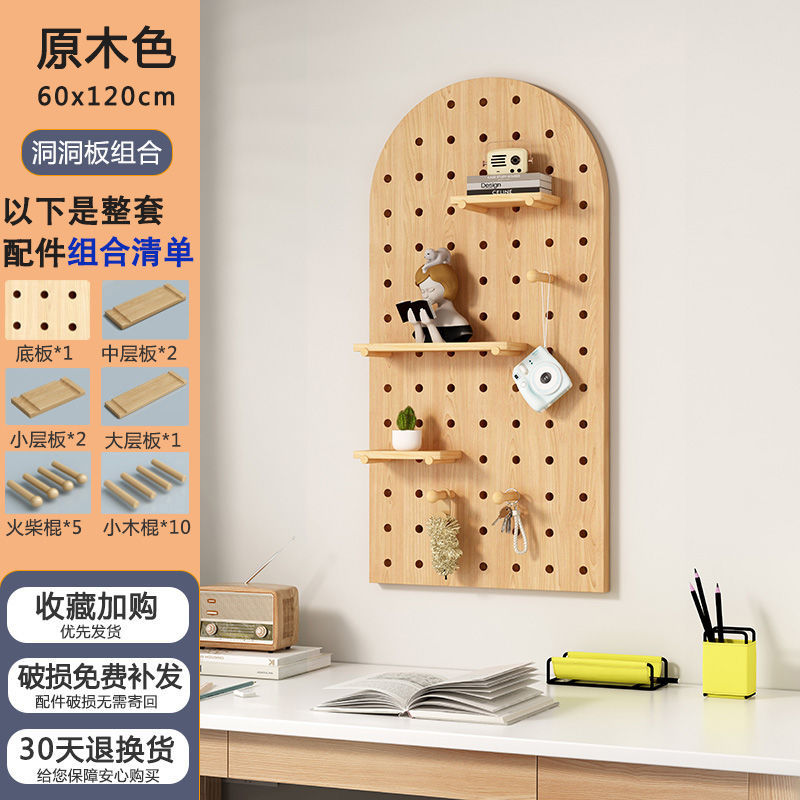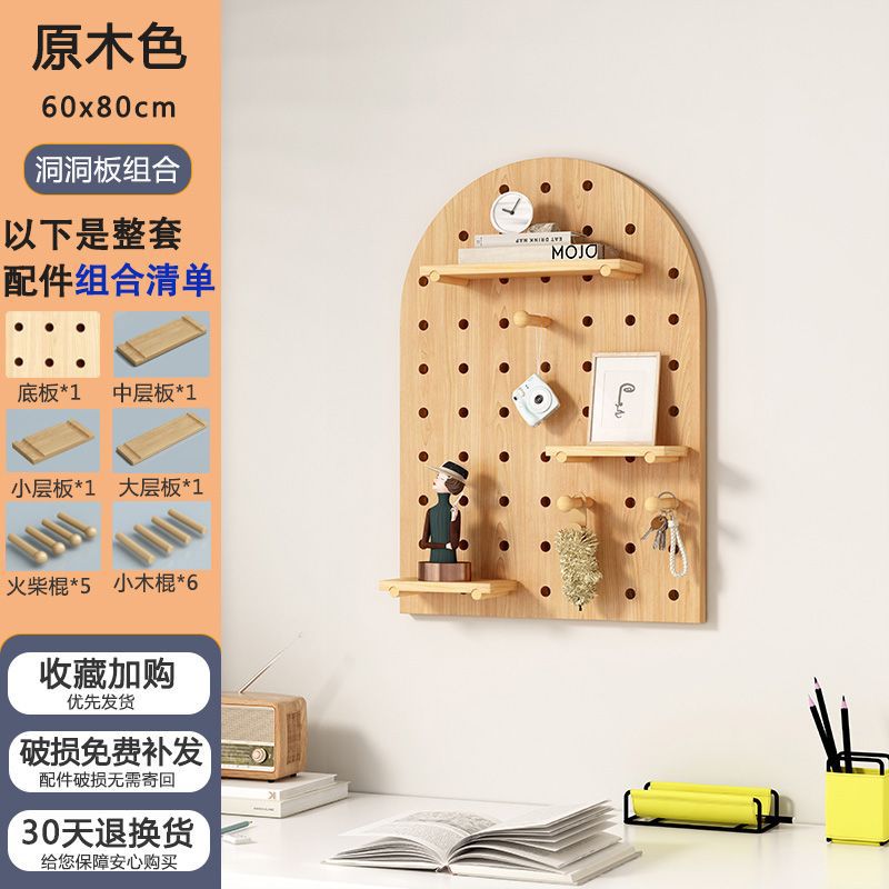 단단한 나무 구멍 보드 벽 저장 랙 교수형 보드 장식 파티션 랙 저장 랙 벽 나무 책장스토어 가기