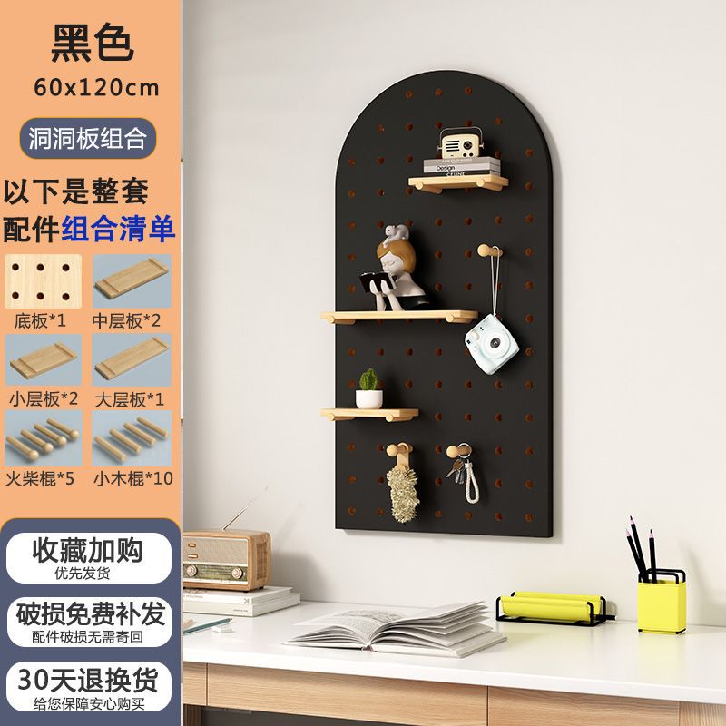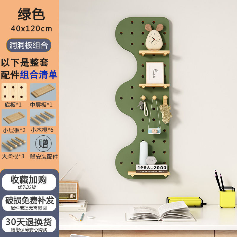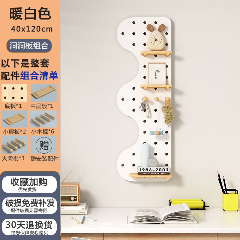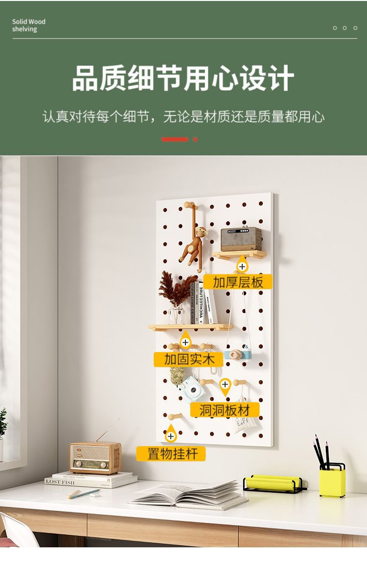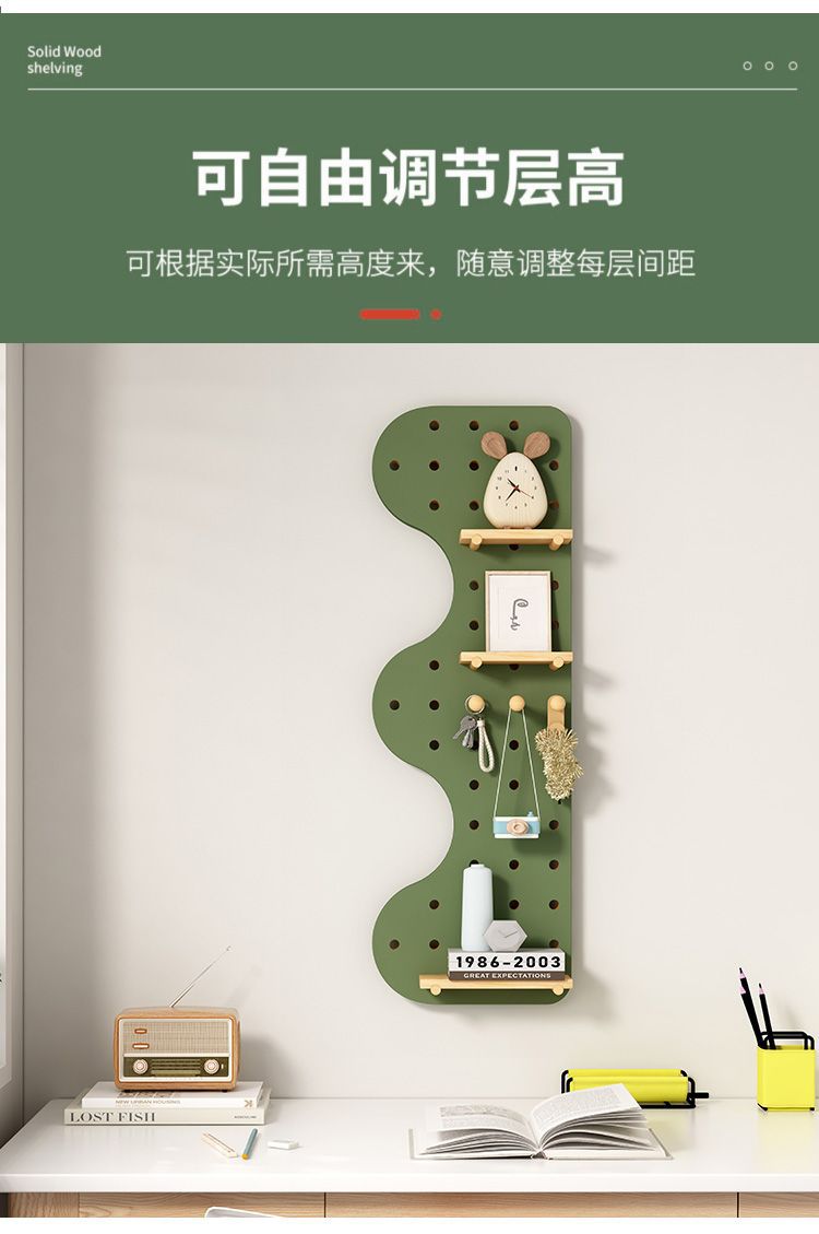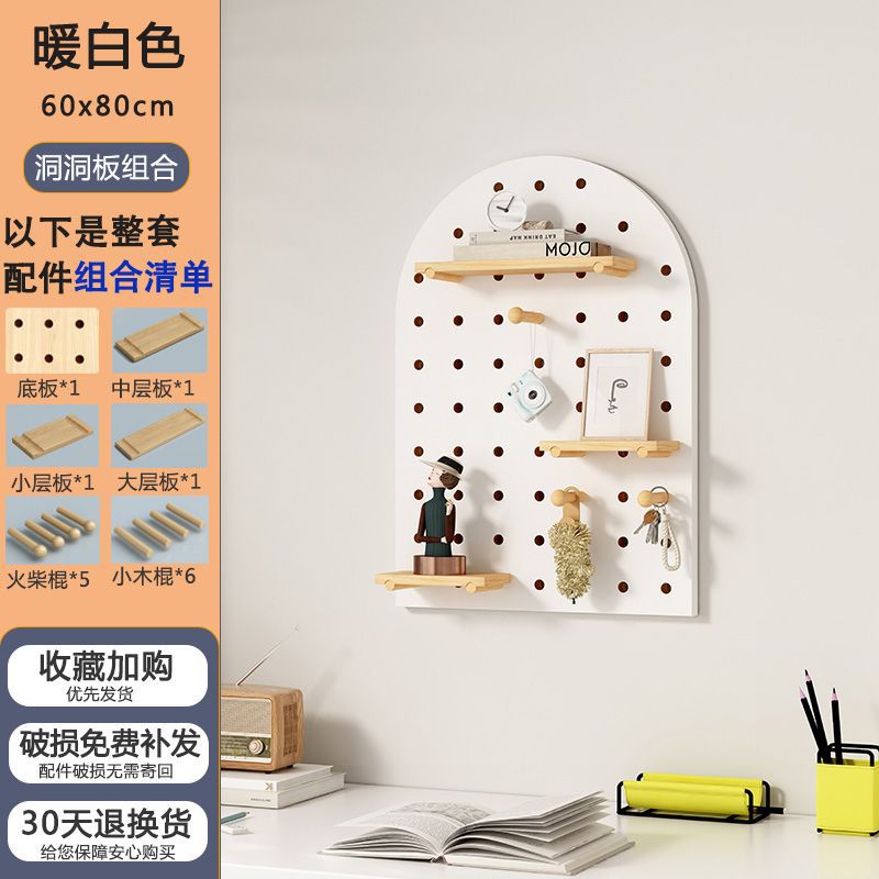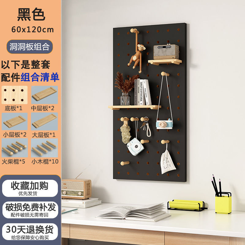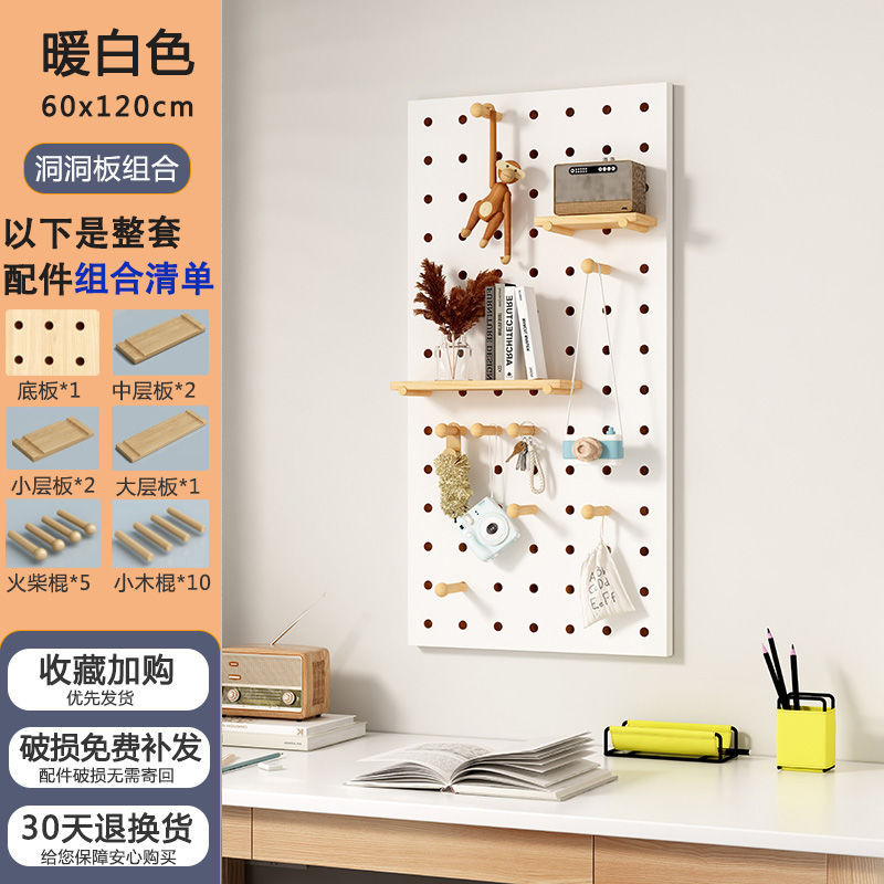 단단한 나무 구멍 보드 벽 저장 랙 교수형 보드 장식 파티션 랙 저장 랙 벽 나무 책장스토어 가기