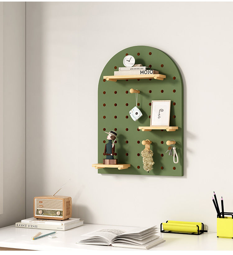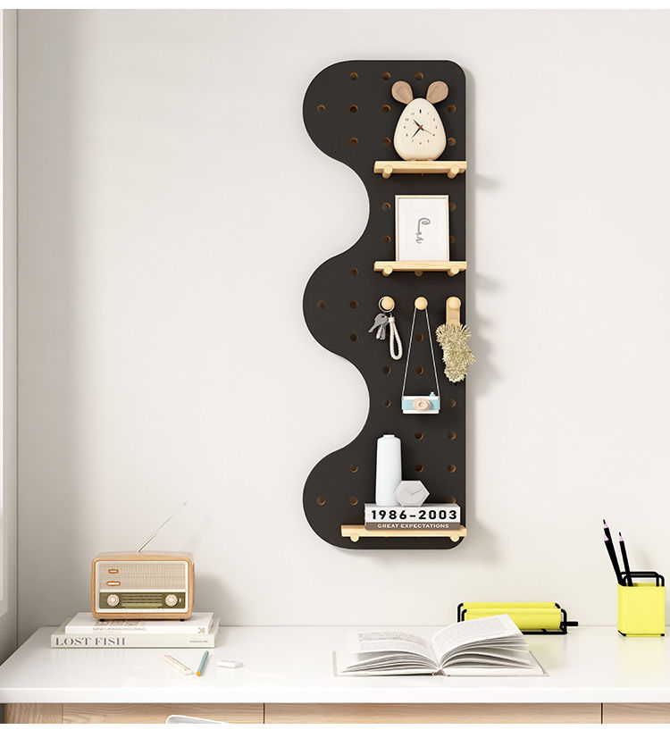 단단한 나무 구멍 보드 벽 저장 랙 교수형 보드 장식 파티션 랙 저장 랙 벽 나무 책장