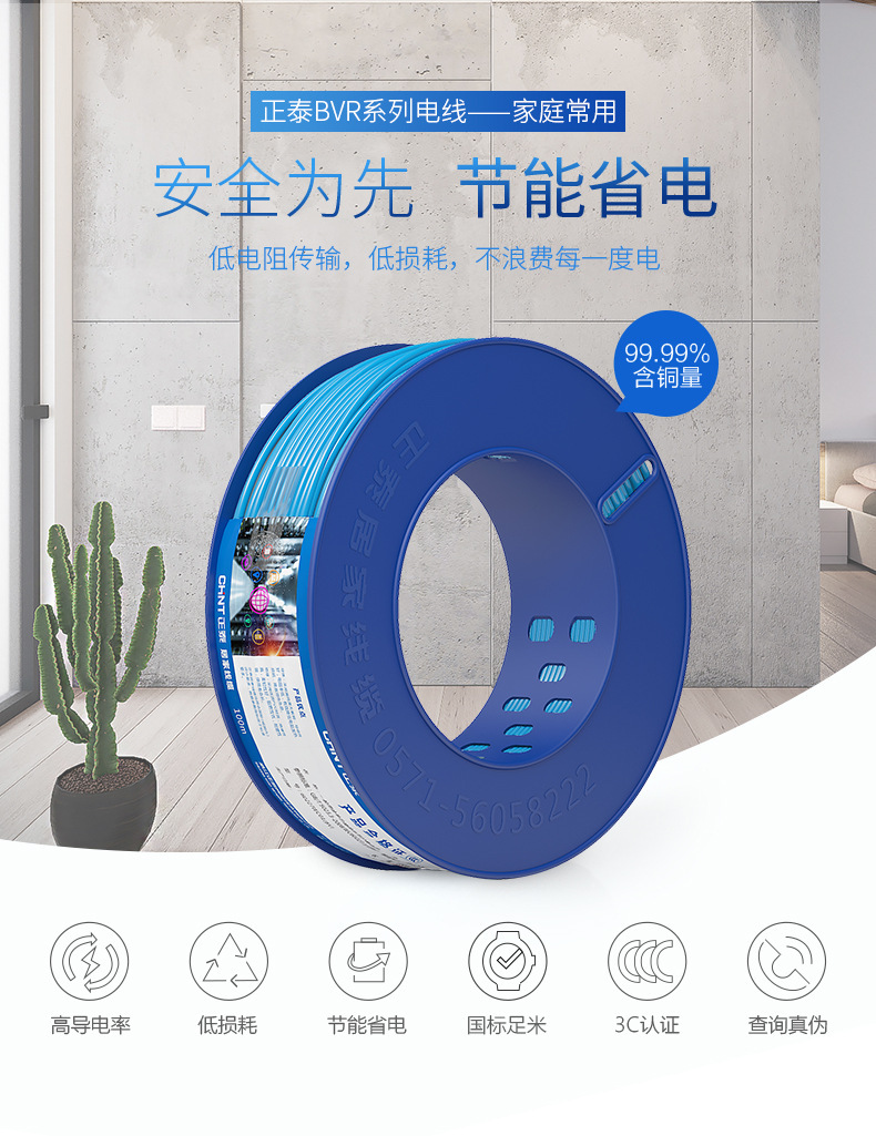 Chint 케이블 BVR 0.5/1.5/2.5/4/6 평방 국가 표준 단일 코어 멀티 스트랜드 유연한 와이어 가정용 구리 코어 와이어