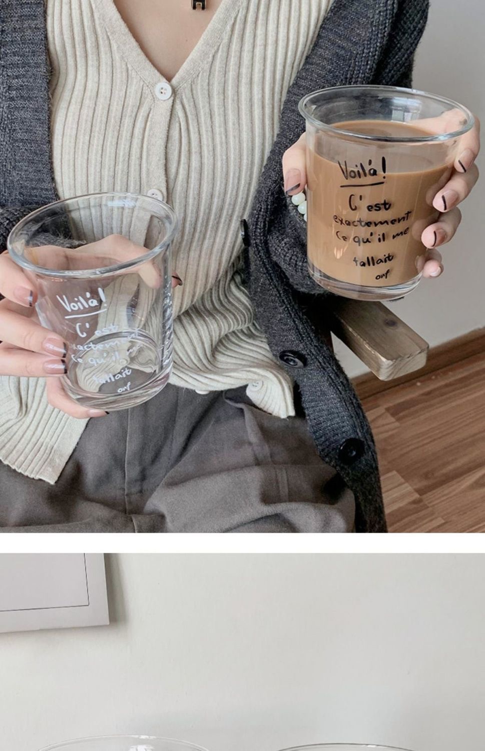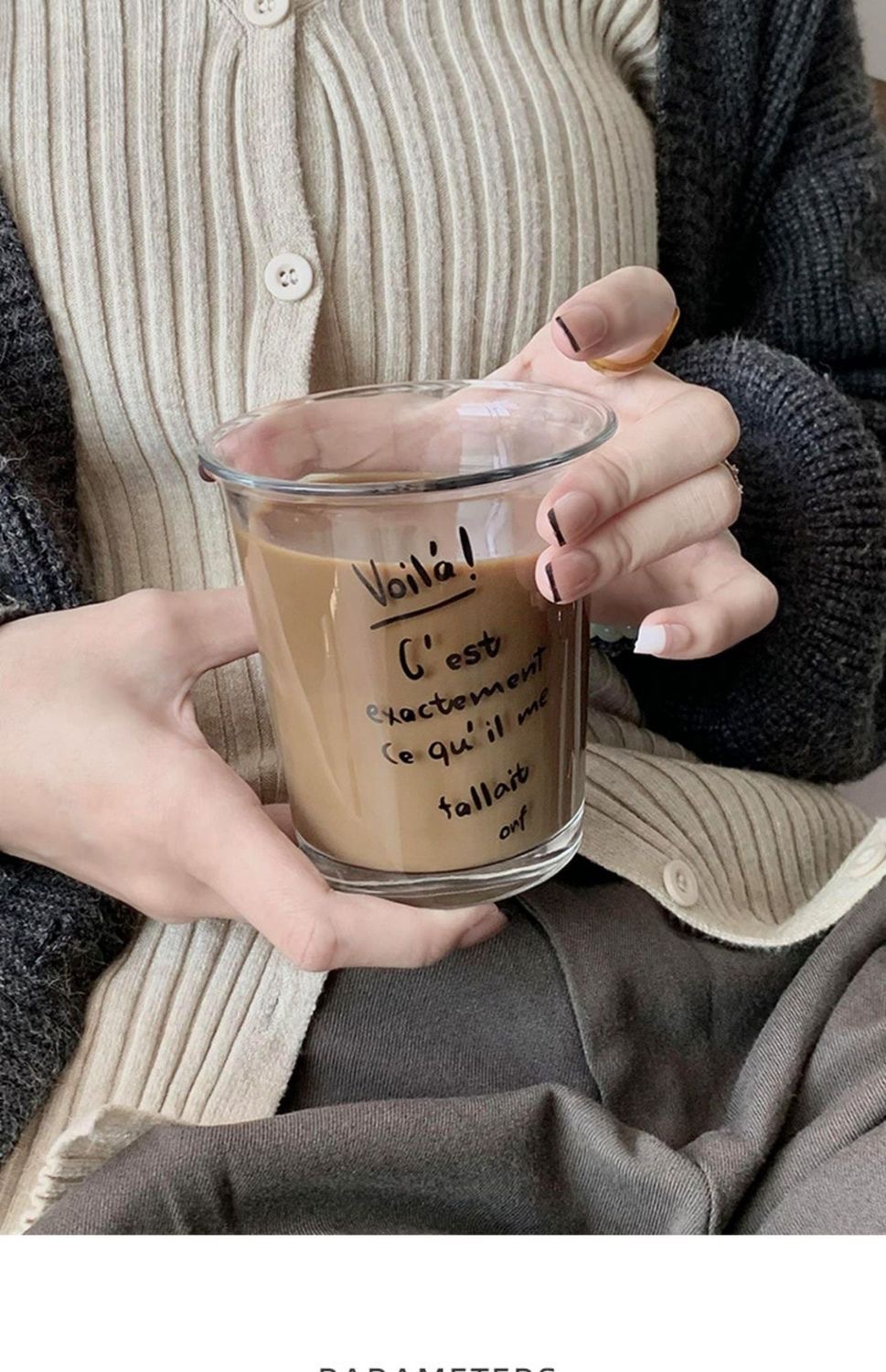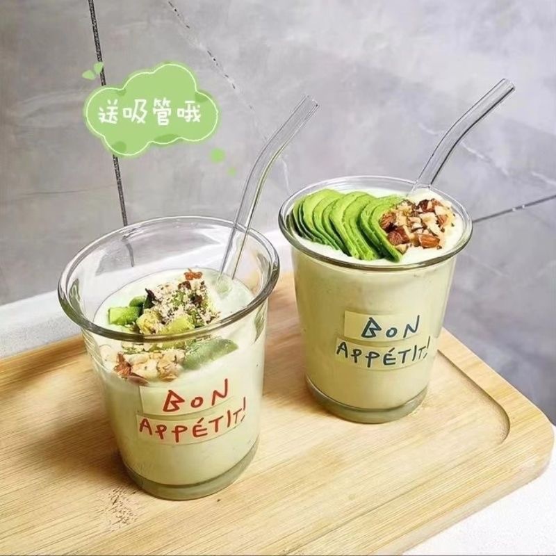 • 짧은 두꺼운 흰색 글자 + 유리 빨대