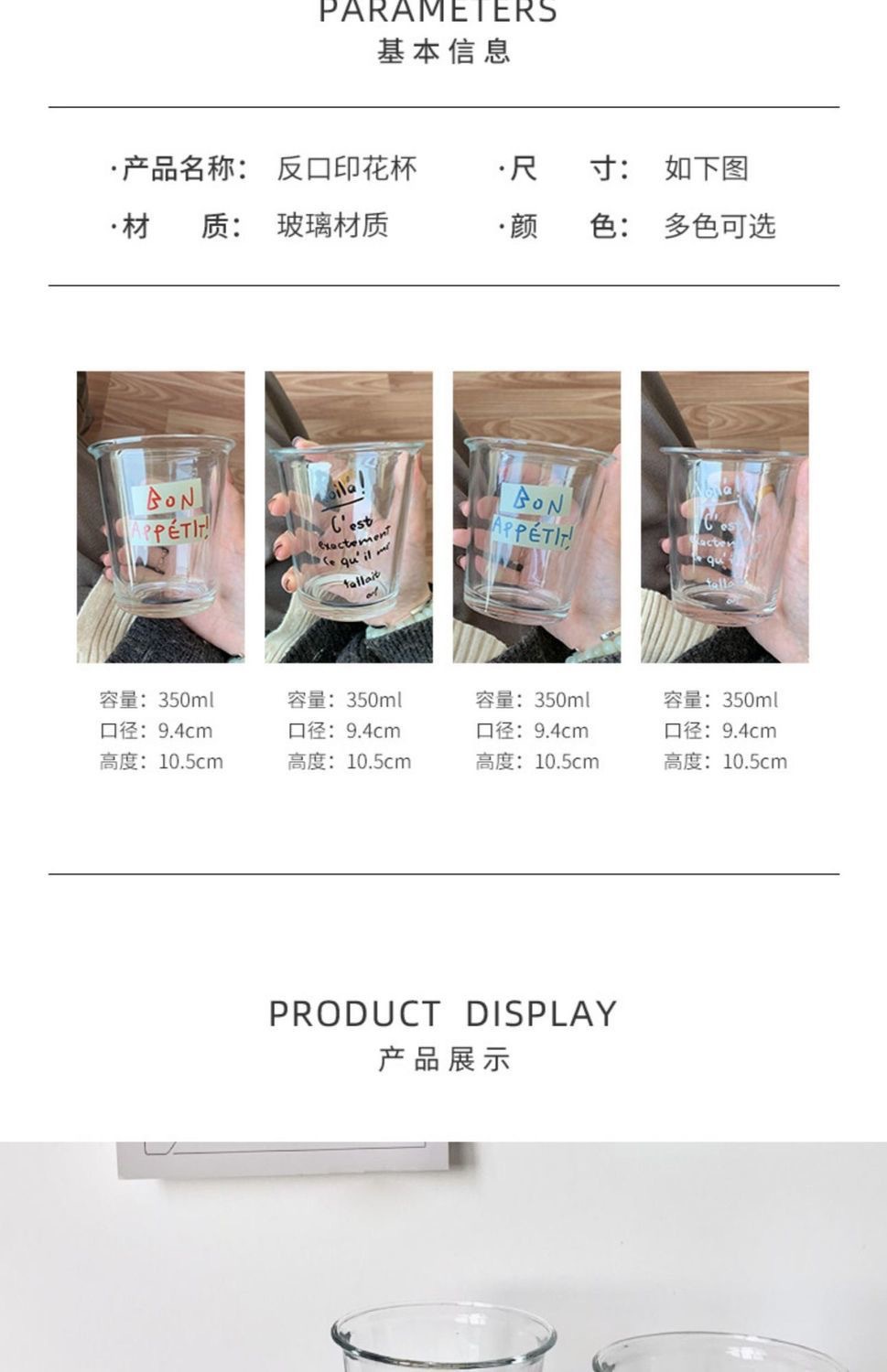 • 짧은 두꺼운 검정색 글자 + 유리 빨대
