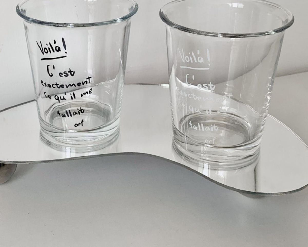 • 짧은 두꺼운 빨간색 글자 + 유리 빨대