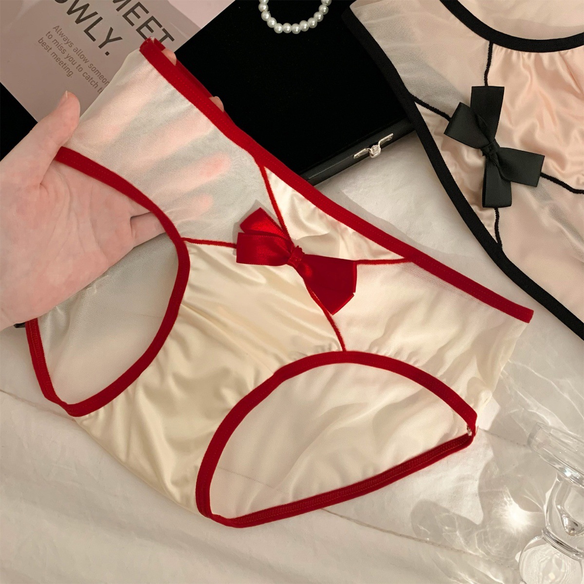 행운의 소원 ~ 순수한 욕망 바람의 해 붉은 소녀의 메쉬 새틴 소녀의 달콤한 팬티 여성의 2024 새로운