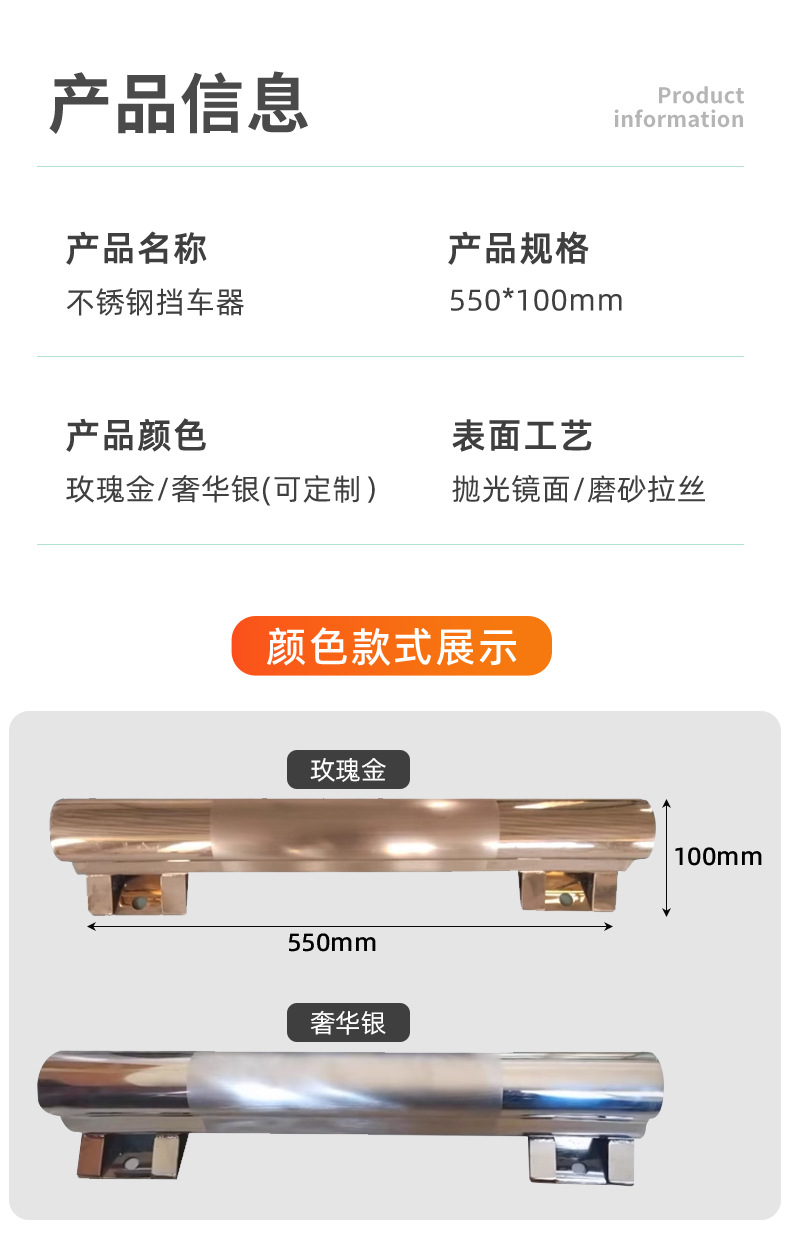 • 550*100mm 스테인레스 스틸 차량 정지 장치 [럭셔리 실버 + 반투명 브러시드]