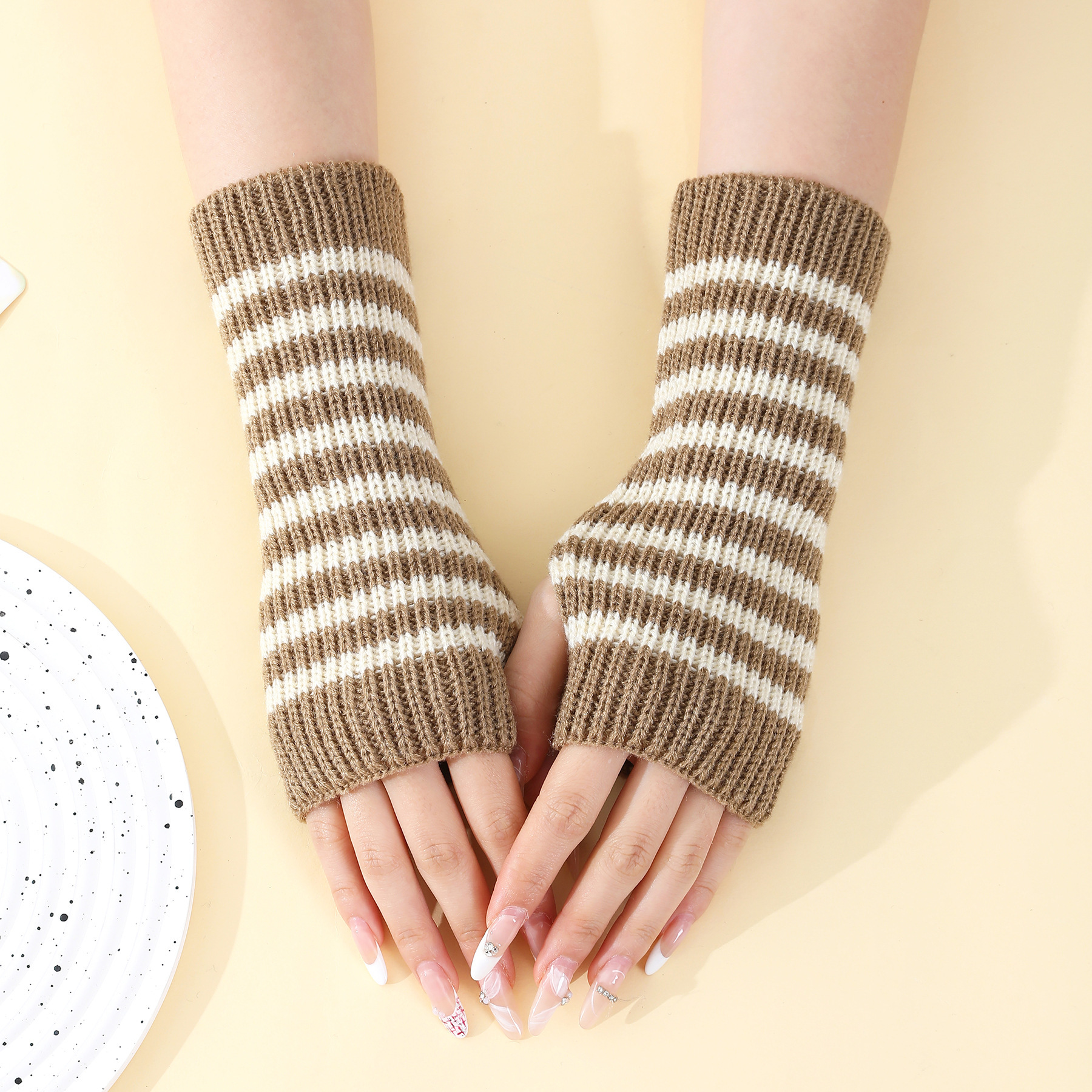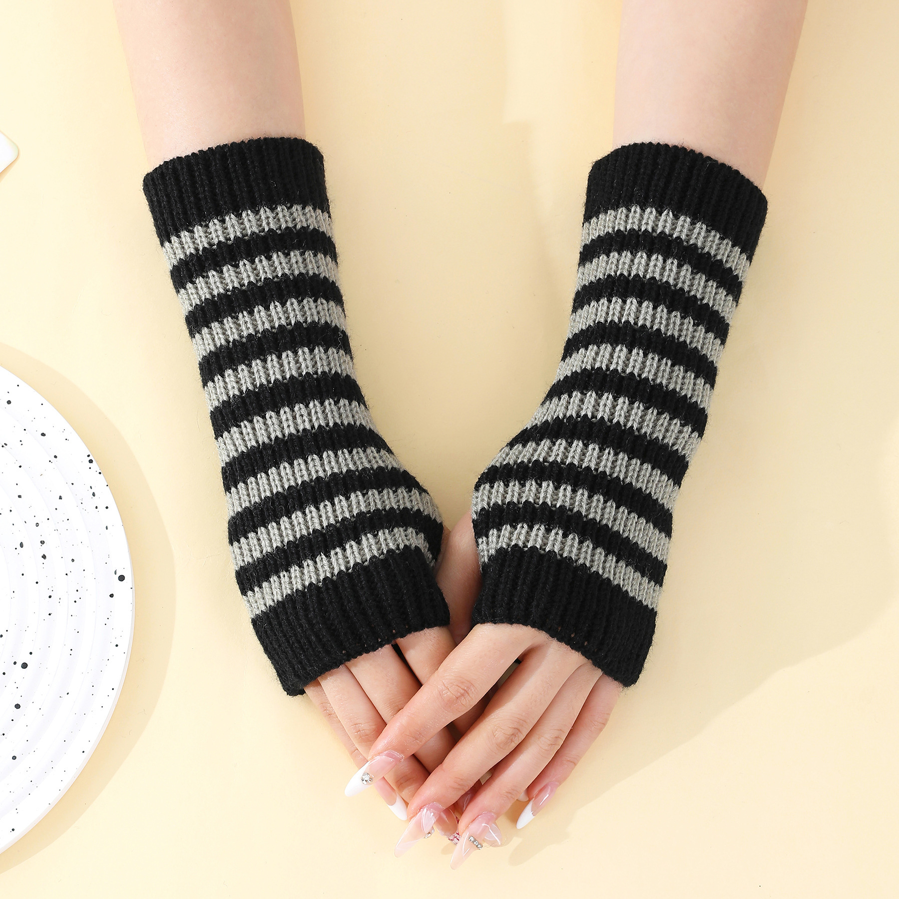 국경 간 가을과 겨울 줄무늬 장갑 여성 손목 따뜻한 감기 방지 귀여운 한국식 학생 Leaky Finger Knitted 장갑 쓰기