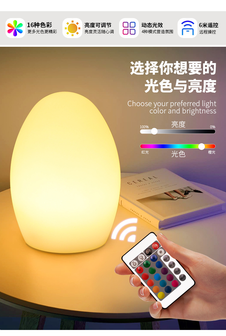 跨境led桌面氛围台灯酒吧简约usb充电遥控小夜灯床头灯氛围灯蛋灯