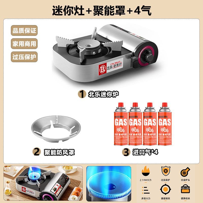 • [방풍 및 저렴한 가격] 미니 스토브 + 에너지 수집 커버 + 가스 4개