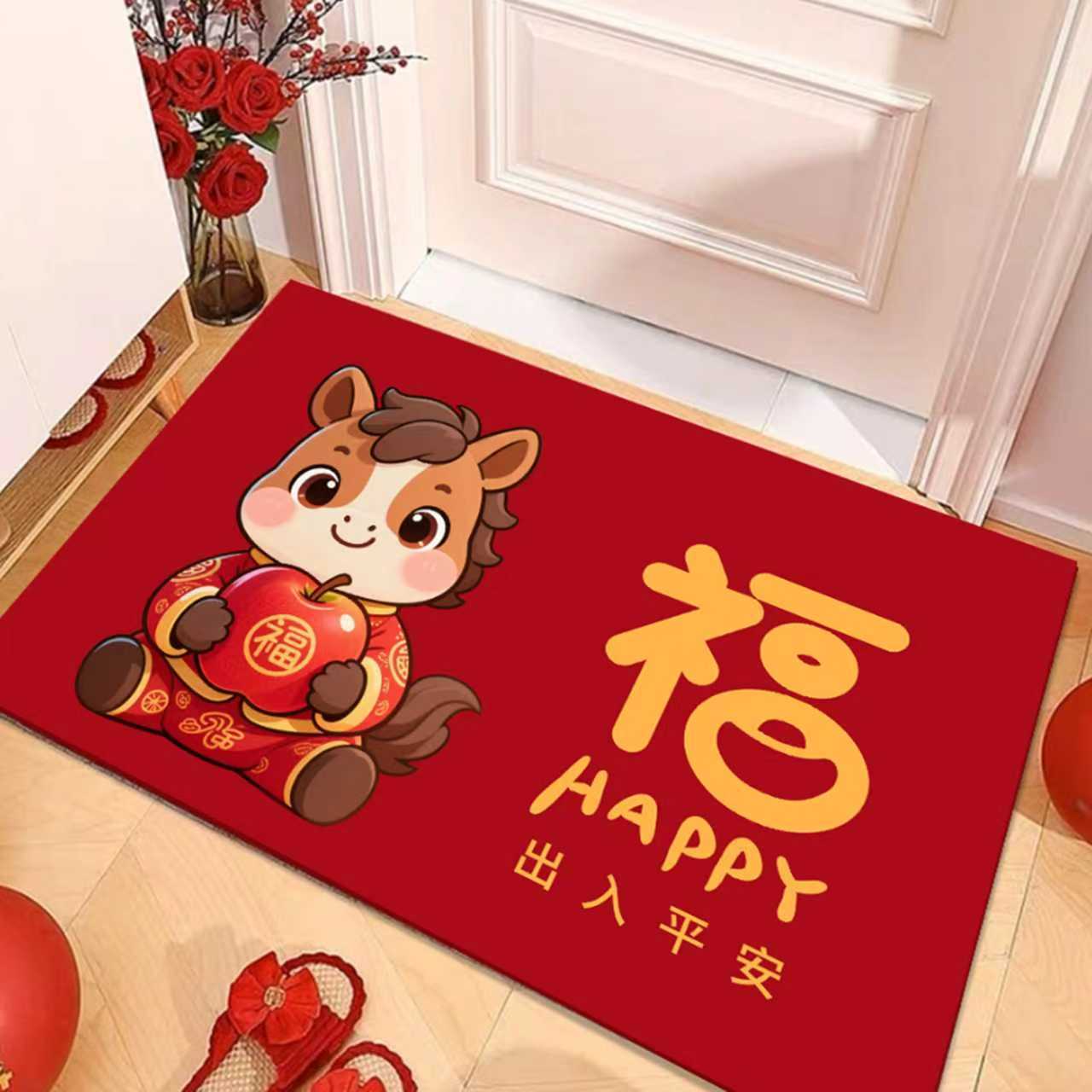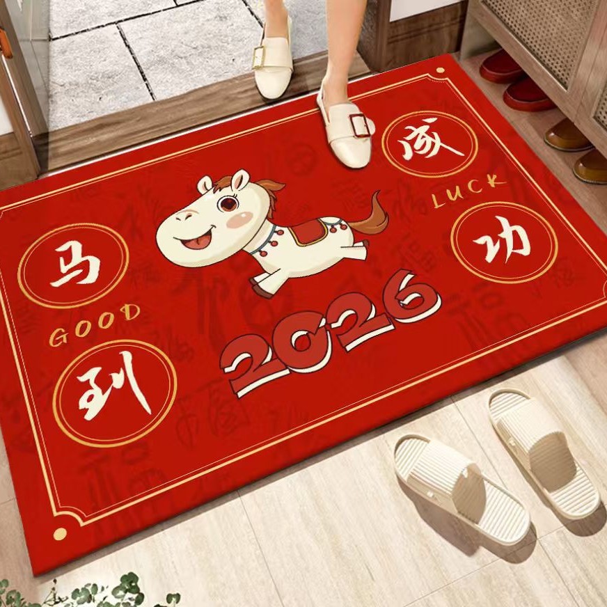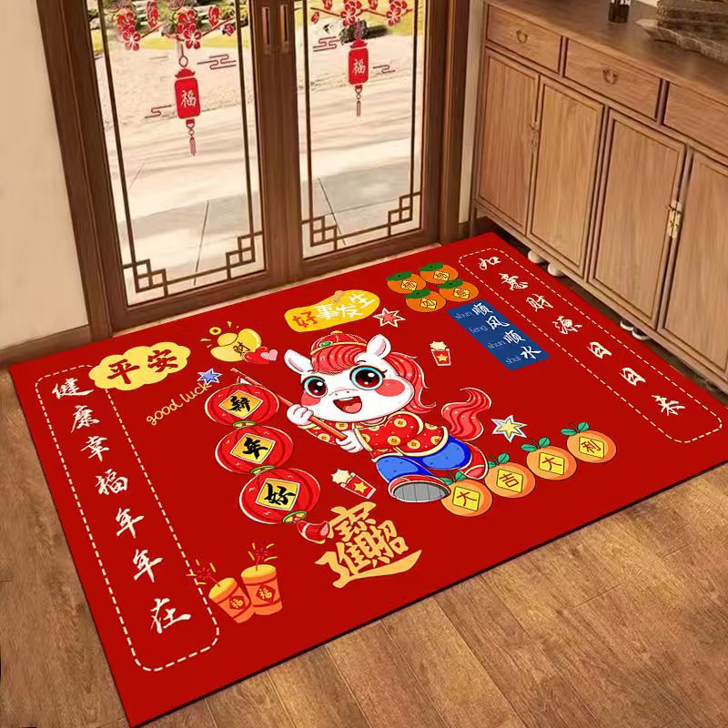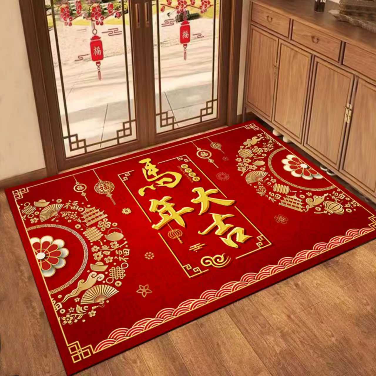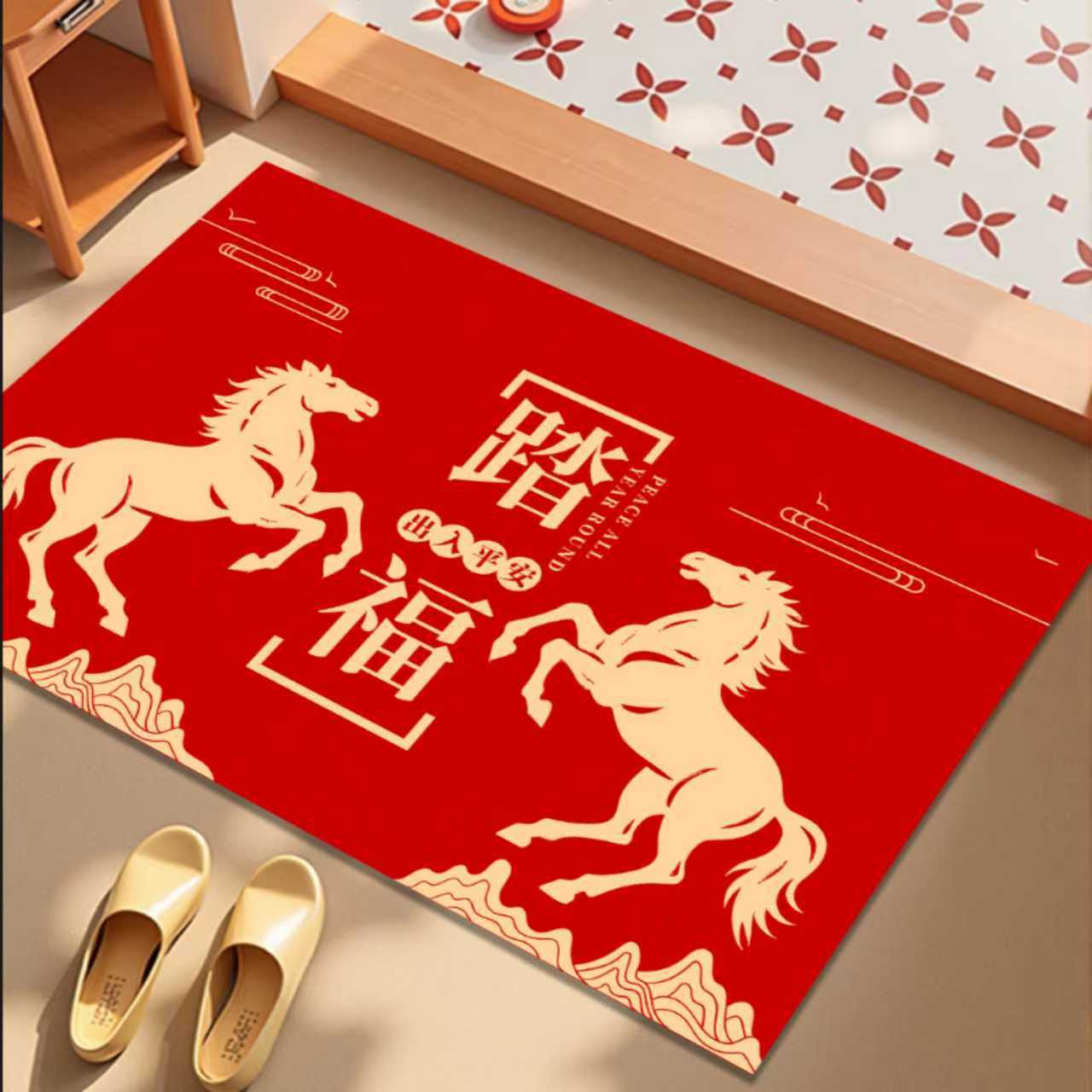 새해 바닥 매트, 빨간색 축제용 현관 매트, 가정용 새해 발매트, 현관 입구 매트