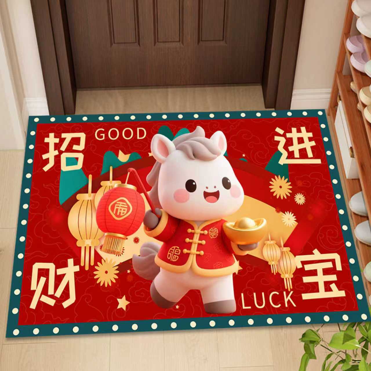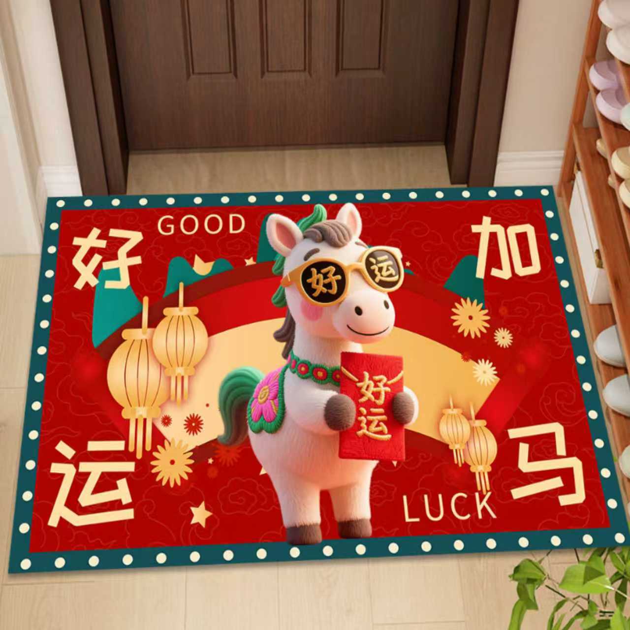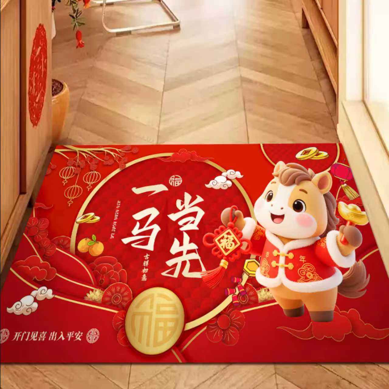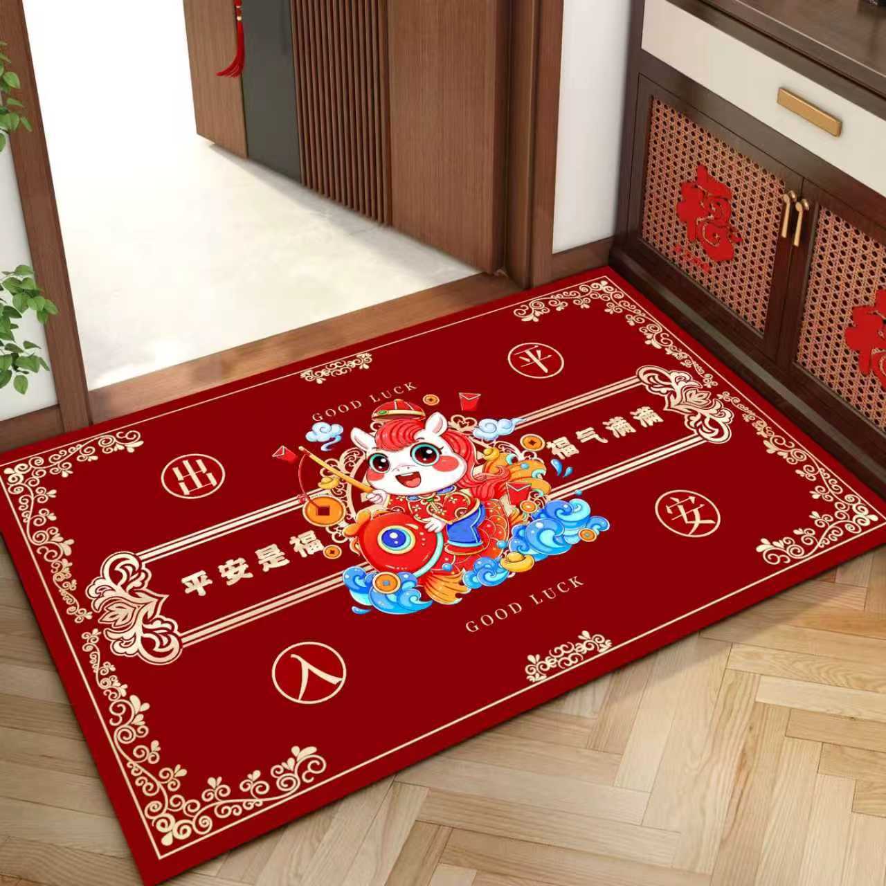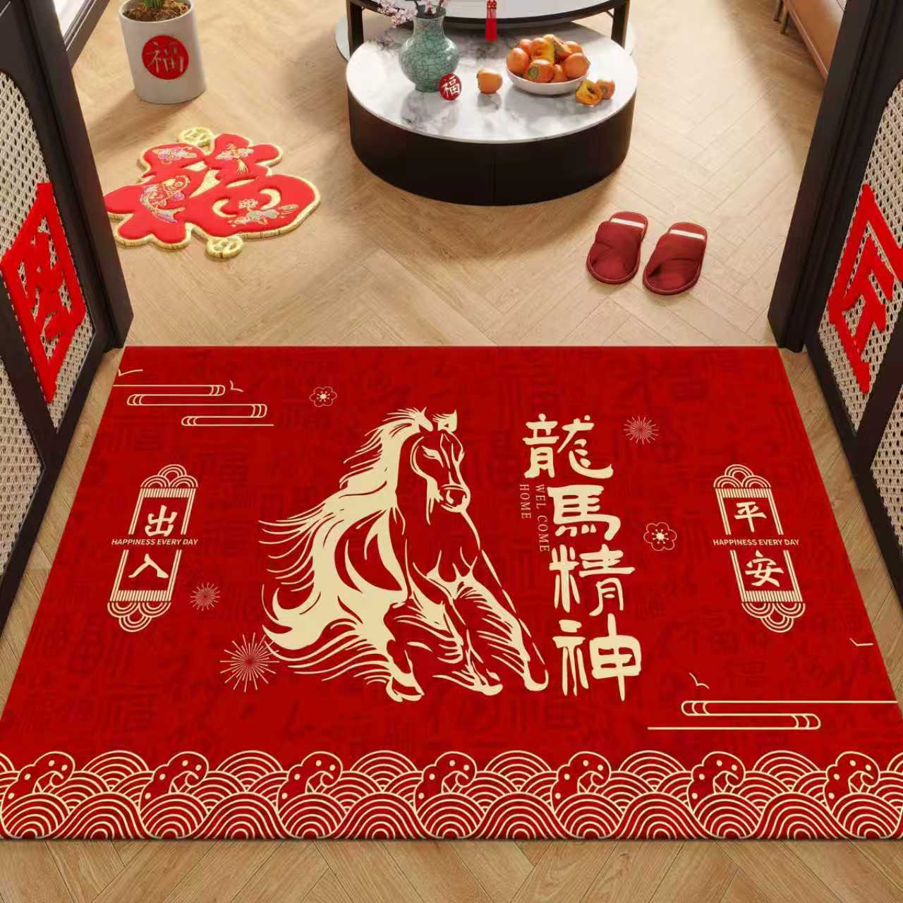 새해 바닥 매트, 빨간색 축제용 현관 매트, 가정용 새해 발매트, 현관 입구 매트