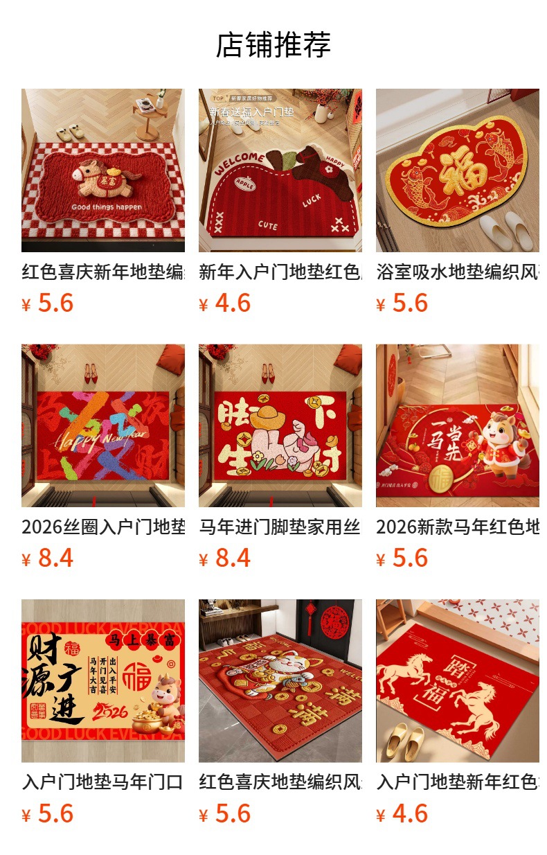 새해 바닥 매트, 빨간색 축제용 현관 매트, 가정용 새해 발매트, 현관 입구 매트스토어 가기