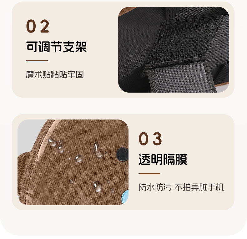 4、背部魔术贴,可自由调节角度