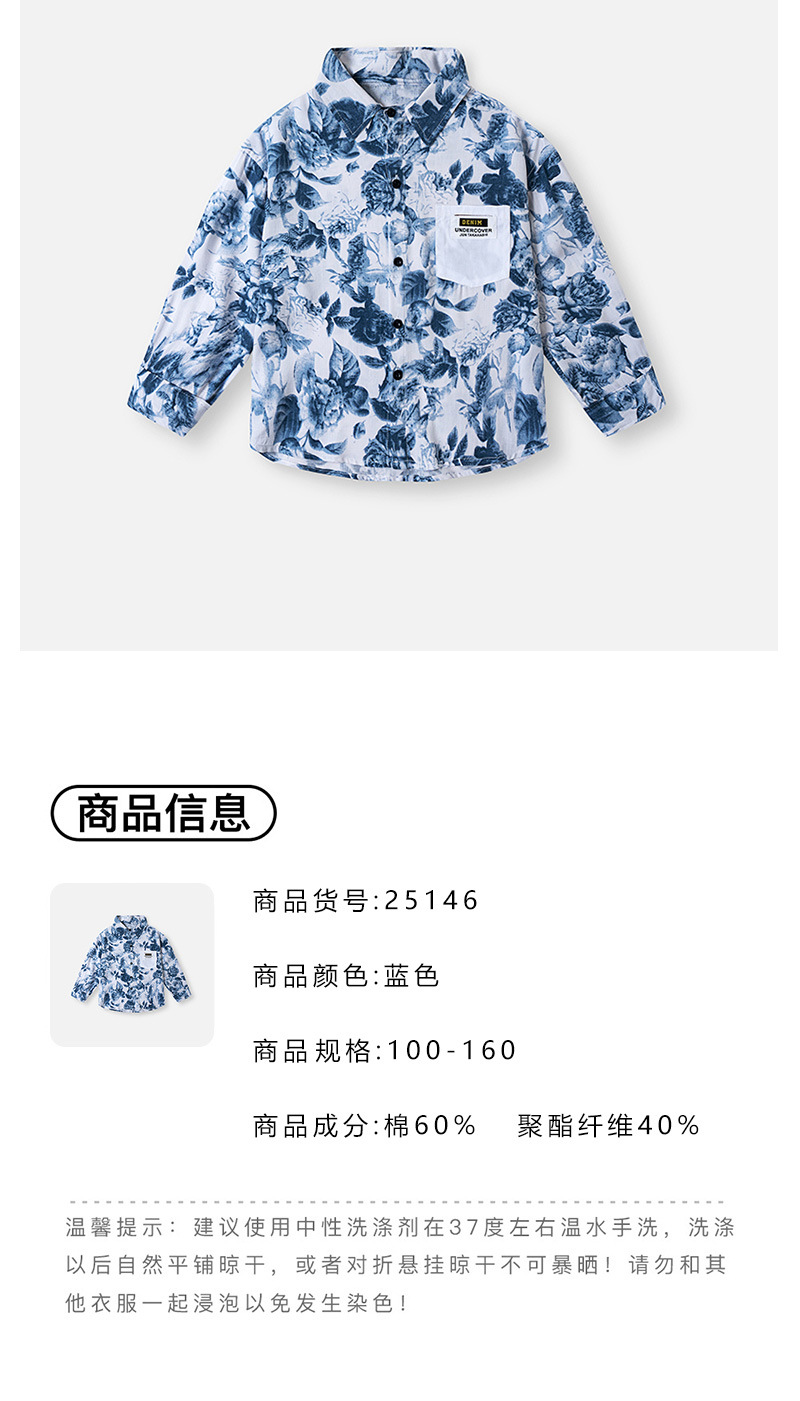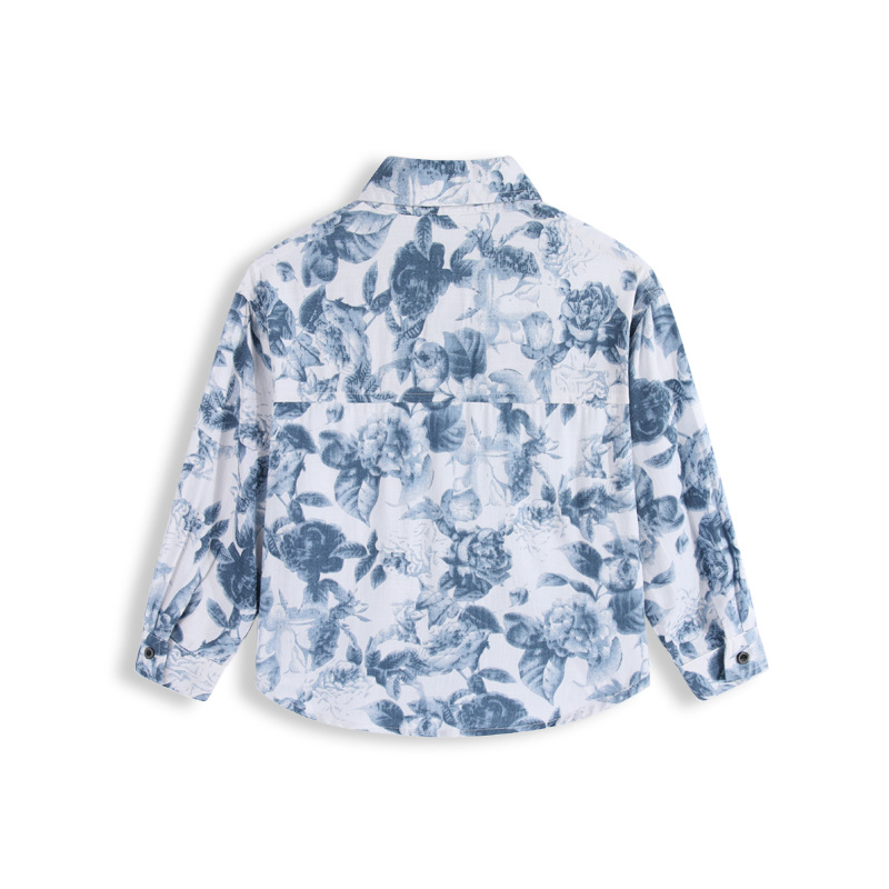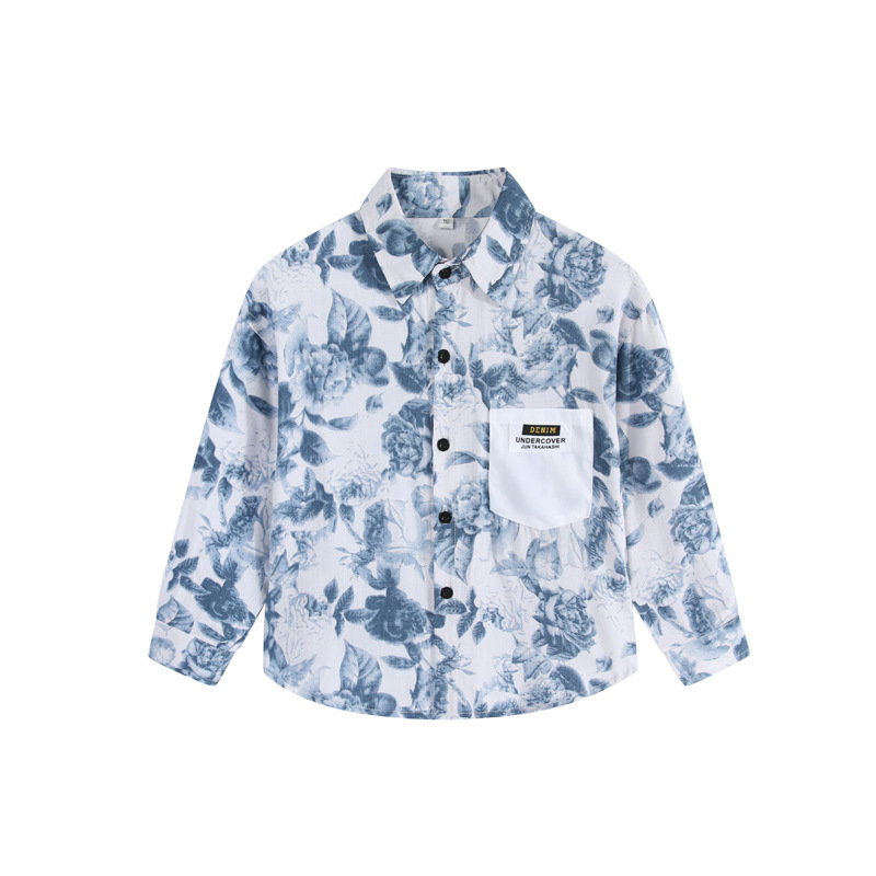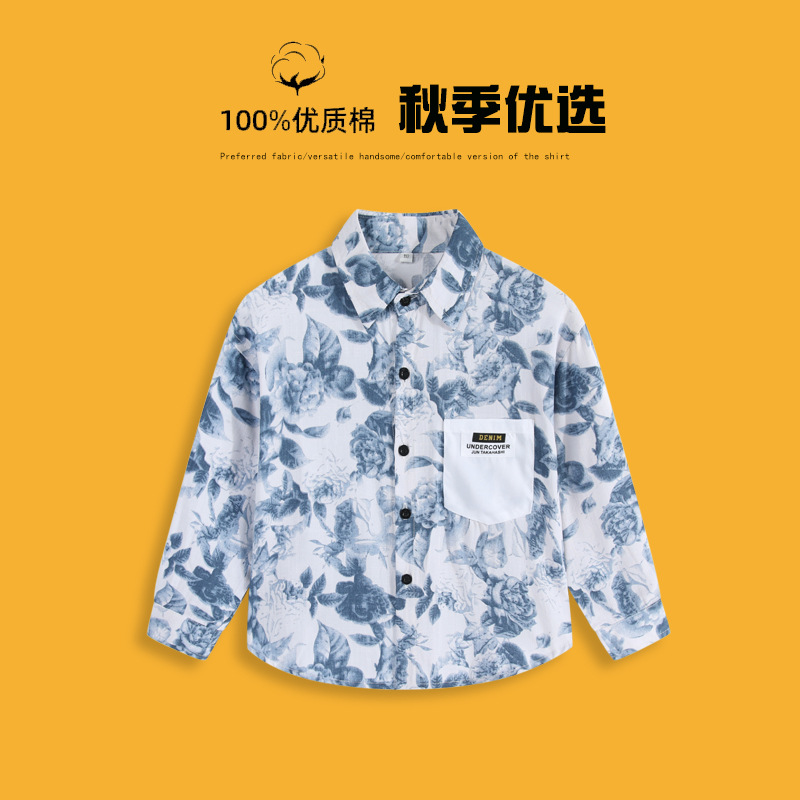 새로운 봄과 가을 긴 소매 셔츠 Guofeng 소년의 셔츠 인쇄 서양식 소녀 옷깃 탑 블루 올 매치 유행 한국 스타일