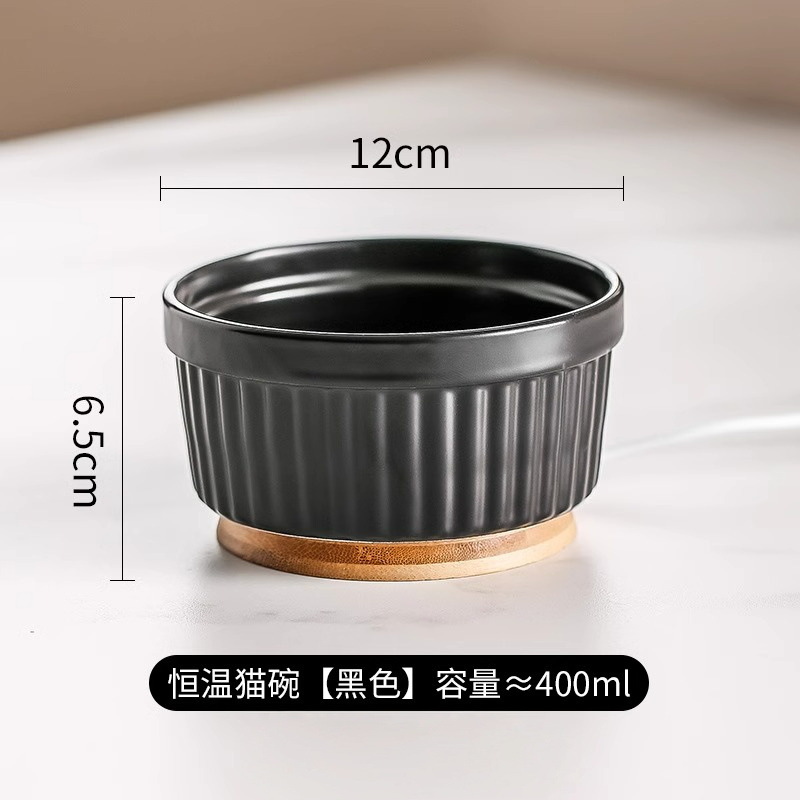 • 400ml [세라믹 블랙] 가열그릇 [푸시스위치+원목베이스+플러그] (품질검사 통과)