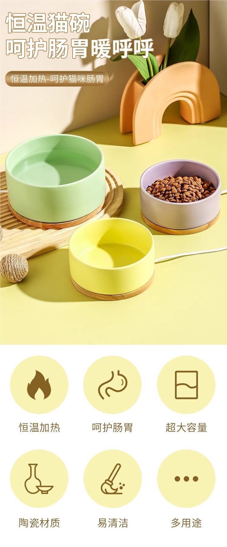 고양이 워터 디스펜서, 항온 온수 그릇, 요구르트 기계, 애완 동물 식수, 사계절 사용 가능, 개 보온 단단한 나무 베이스