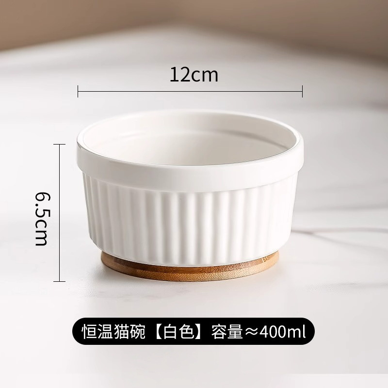 • 400ml [세라믹 화이트] 가열그릇 [푸시스위치 + 원목베이스 + 플러그] (품질검사 통과)