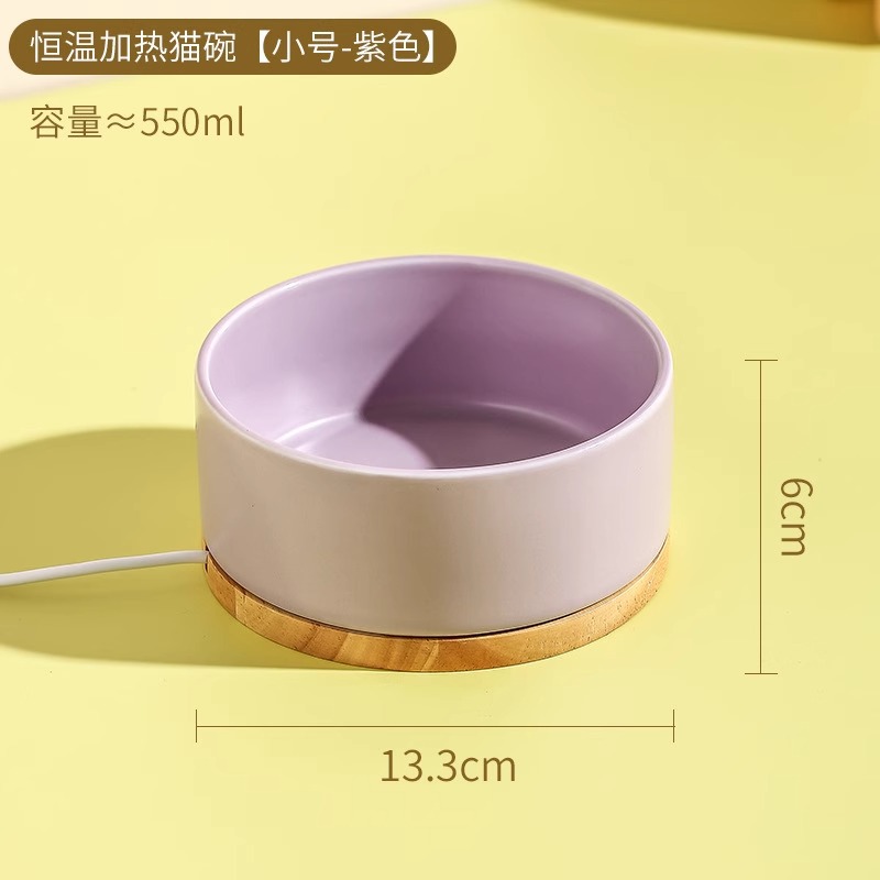 • ⭐ 550ml [세라믹 퍼플] 가열그릇 [푸시스위치 + 원목베이스 + 플러그] (품질검사 통과)