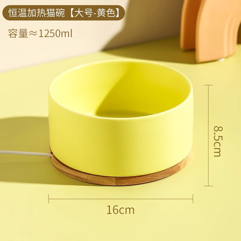 • ⭐ 대용량 1250ml [세라믹 옐로우] 가열그릇 [푸시스위치+원목베이스+플러그] (품질검사 통과)